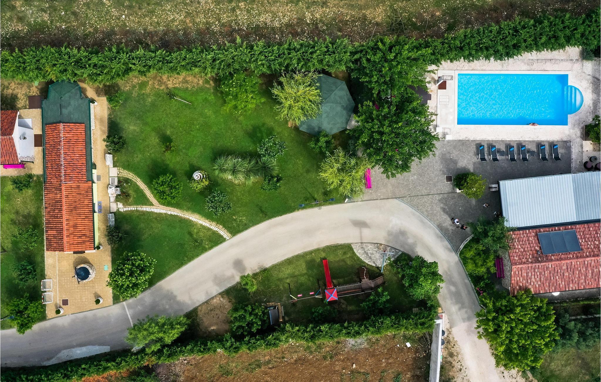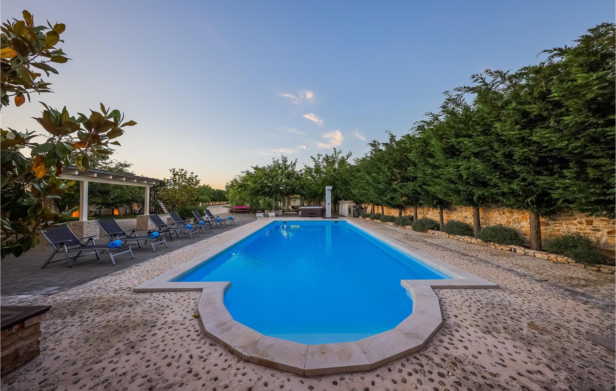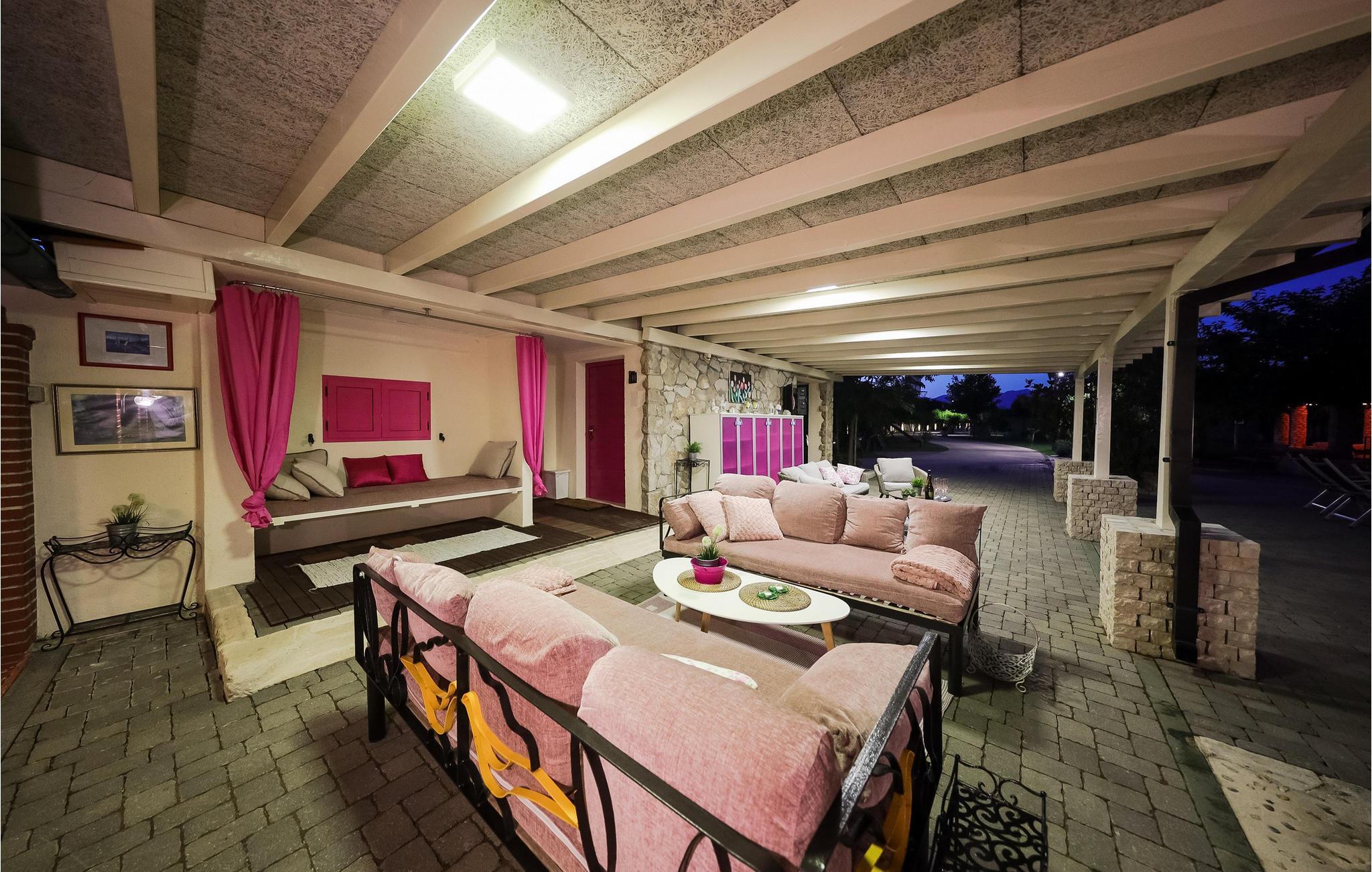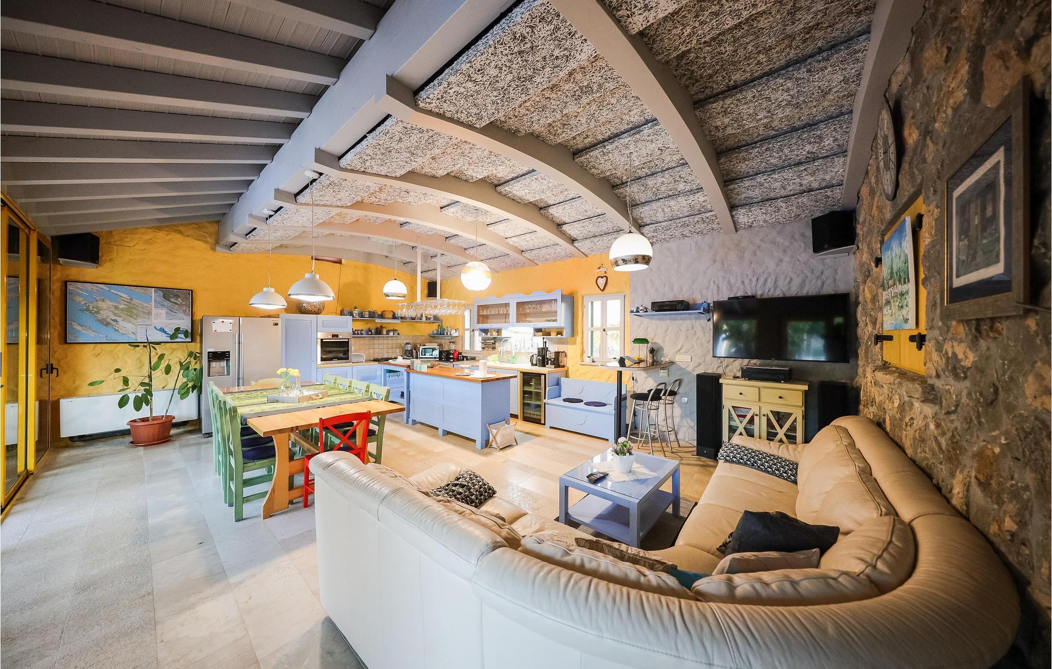 Tilbring en uforglemmelig ferie i dette rummelige feriehus med pool og spabad. Villa Pequena Perla ligger i den magiske dalmatiske landsby Poljica og tilbyder rigelig plads til en hyggelig ferie med venner eller familie. Den rustikke og hyggelige atmosfære skjuler luksuriøse, moderne faciliteter. Fremtryll lækre måltider i det rummelige køkken med venner og nyd dem i en hyggelig atmosfære. Saml jer til harmoniske spilleaftener eller fordyb jer i en spændende bog på jeres yndlingssted. Takket være den rolige beliggenhed væk fra travlheden kan I også nyde absolut privatliv i det atmosfæriske udendørsområde. Tag en afslappende svømmetur i den store pool om morgenen, genoplad batterierne på liggestolen, og lad børnene have det sjovt med de dejlige legeområder. Snak i den hyggelige lounge over en dalmatisk vin fra vinkælderen, slap af i spabadet, og forfin jeres grillretter med friske grøntsager fra haven. Gå gennem de charmerende gamle gader i Nin, besøg verdens mindste katedral, og prøv dalmatiske specialiteter i en traditionel taverna. Svøm på familievenlige sandstrande eller slap af i det berømte helbredende mudder. Bliv fortryllet af Havorglet og "Hilsen til solen" i Zadar, tag en bådtur til Kornatiøerne, vandre gennem spektakulære kløfter i Paklenica Nationalpark eller se vandfaldene i Krka Nationalpark.