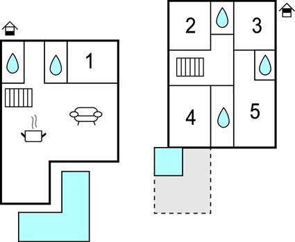 Badeværelse 5m2 (nr. 1) - WC. Varmt og koldt vand. Bruser