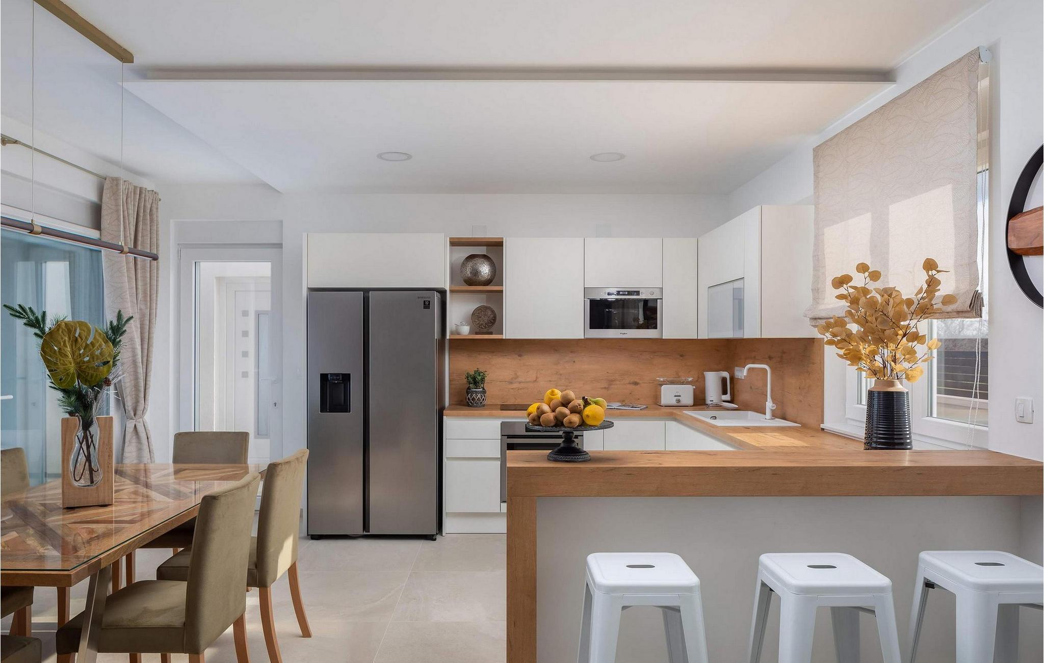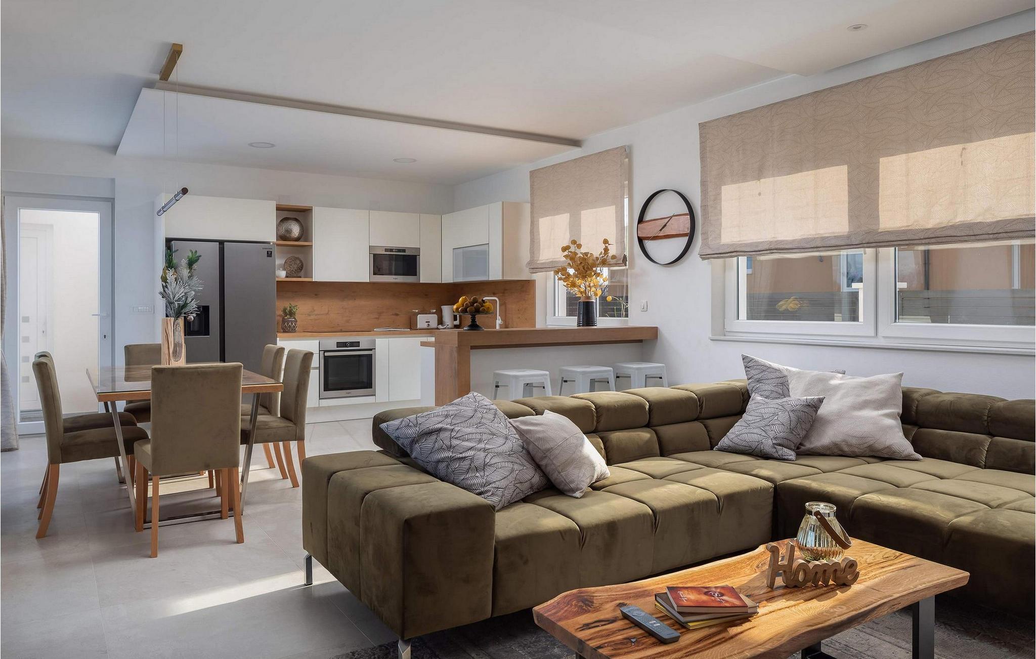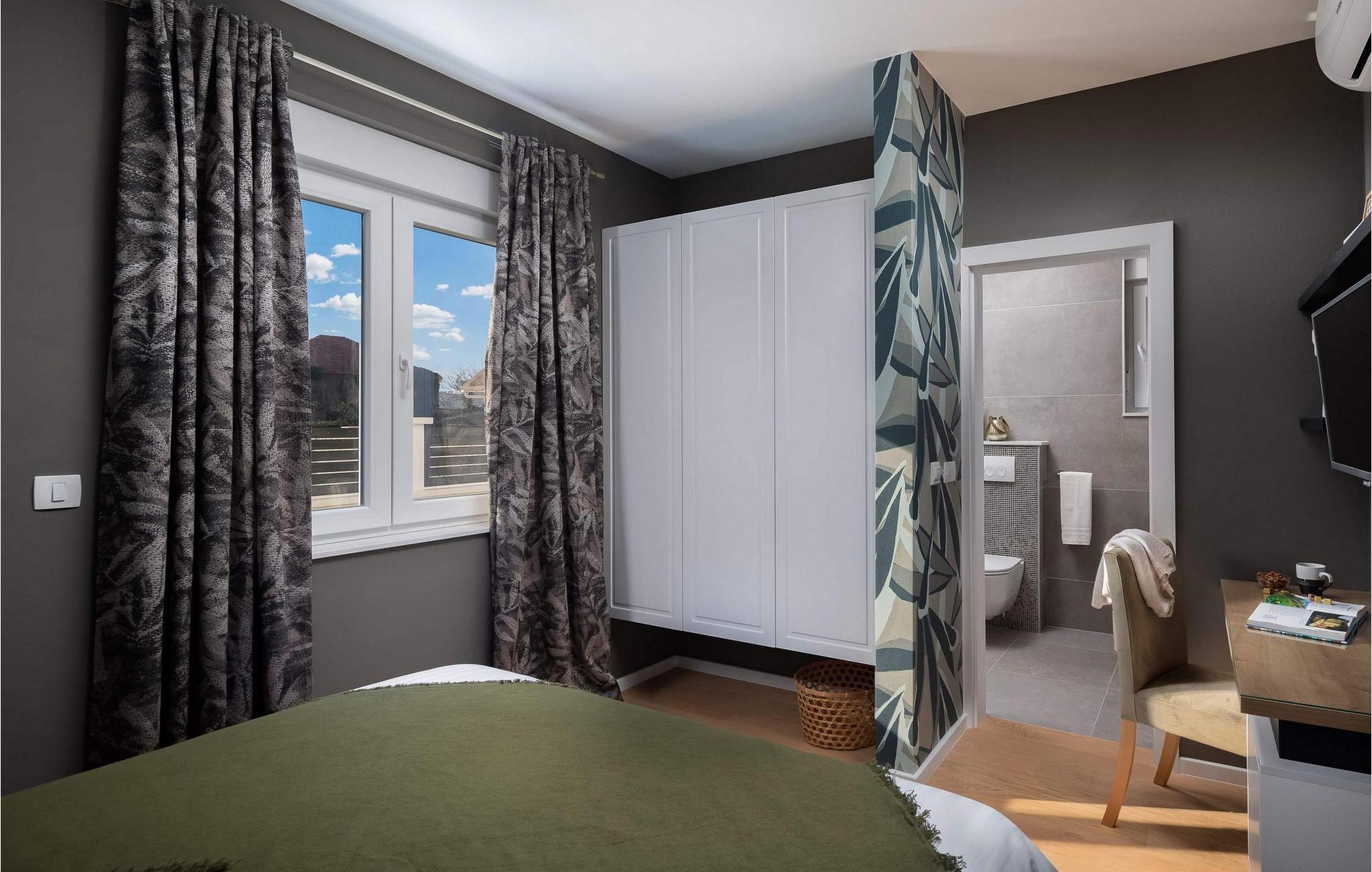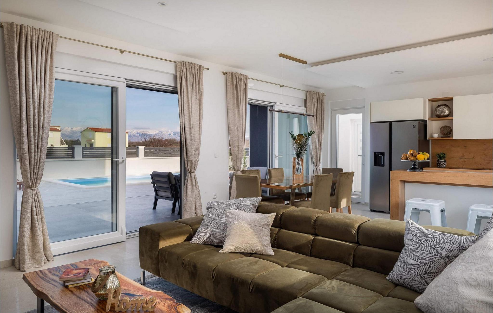 Hvis du leder efter en smuk villa nær Adriaterhavet, er Villa Katarina i Privlaka det perfekte valg for dig! Privlaka ligger på en stor, flad halvø med sandbund. Det ligger 2 km fra Nin og har et mildt middelhavsklima med 2.540 solskinstimer om året. Denne storslåede villa tilbyder 233 kvadratmeter moderne stil og kan rumme op til 8 gæster valgfrit. I villaens stueetage er der et moderne køkken med alt hvad du kan få brug for under dit ophold. Der er også en rummelig stue, badet i sollys, som indbyder til hyggelige sammenkomster med din familie og venner. På samme etage er der soveværelse med badeværelse og separat toilet til alle gæster. Ovenpå er der tre smukke soveværelser, hvoraf to har separate fælles badeværelser og et soveværelse har en-suite badeværelse. Fornøjelse er garanteret i denne villa. Med 612 kvadratmeter kan du slappe af udendørs og hygge dig med resten af din gruppe. Ved den store 35 kvadratmeter store pool kan du slikke solen og tage en forfriskende dukkert. Takket være det udstyrede sommerkøkken med grill, kan du også tilberede de bedste måltider ved poolen. Under dit ophold i denne fuldt indhegnede villa behøver du ikke bekymre dig om dit transportmiddel, da der er to parkeringspladser inde i gården og to udenfor. De sjove faciliteter, som denne villa kan tilbyde dig, inkluderer en rutsjebane, gynger og et legerum til børn, mens voksne gæster kan more sig med bordfodbold. Privlaka er et sted kendt som en oase med sandede bugter og et ideelt feriemål for hele familien. Det er også kendt som et sted med en lang fiskeritradition. Privlaka ligger kun få minutters kørsel fra den ældste kroatiske kongeby Nin, som hvert år besøges af tusindvis af gæster fra hele verden. Der er også cykelstier kun 100 meter fra villaen! Under dit ophold kan du tage dig tid til at besøge nogle af de smukke kroatiske nationalparker såsom Kornati, Krka, Plitvice-søerne og Paklenica.
