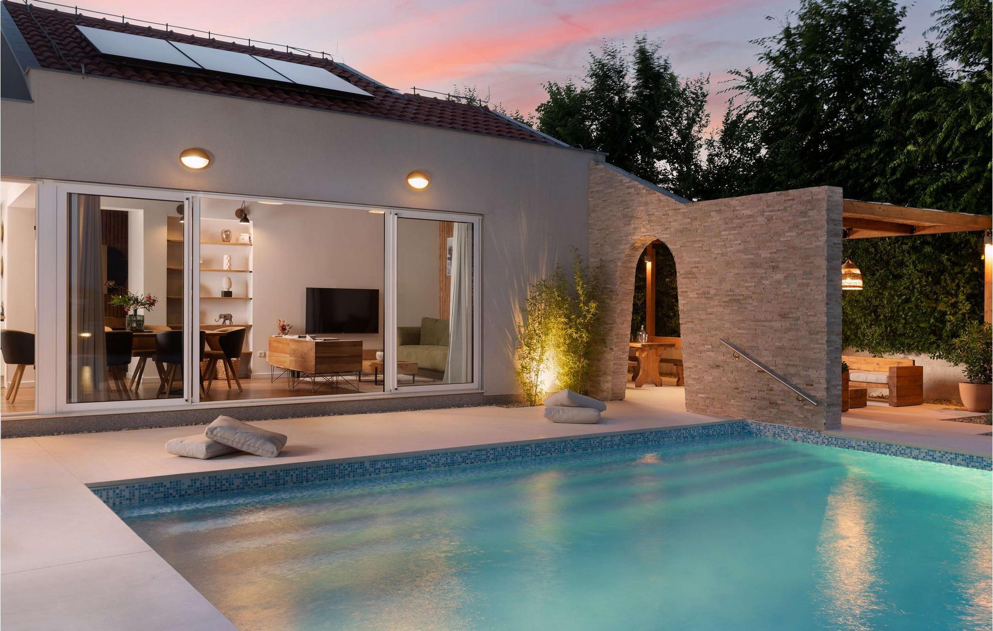 Tilbring jeres drømmeferie i dette charmerende feriehus med pool i rolige omgivelser.