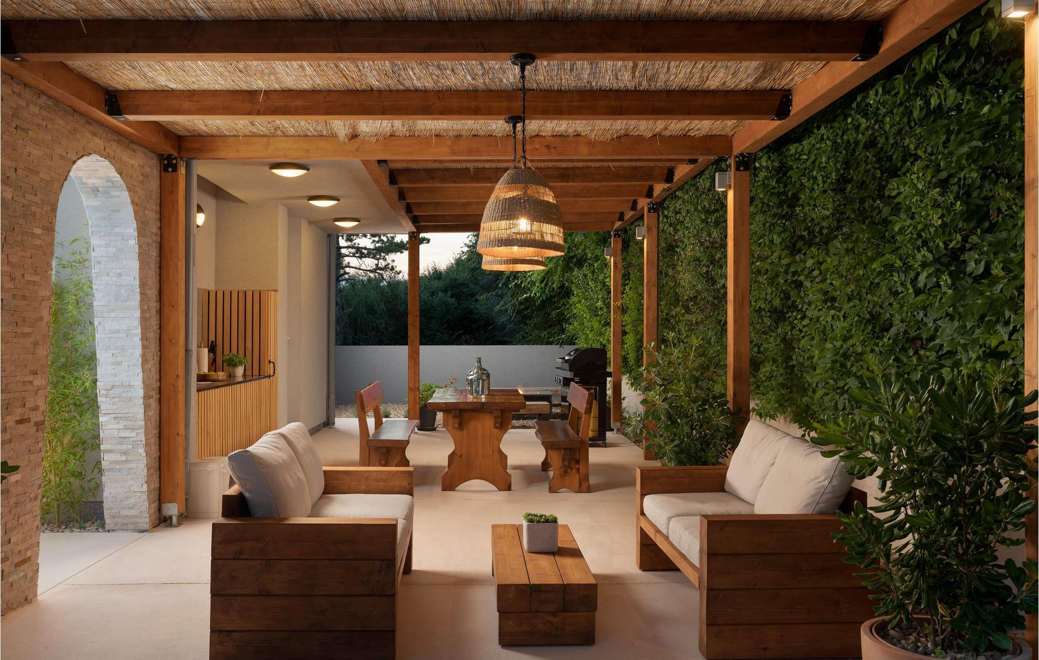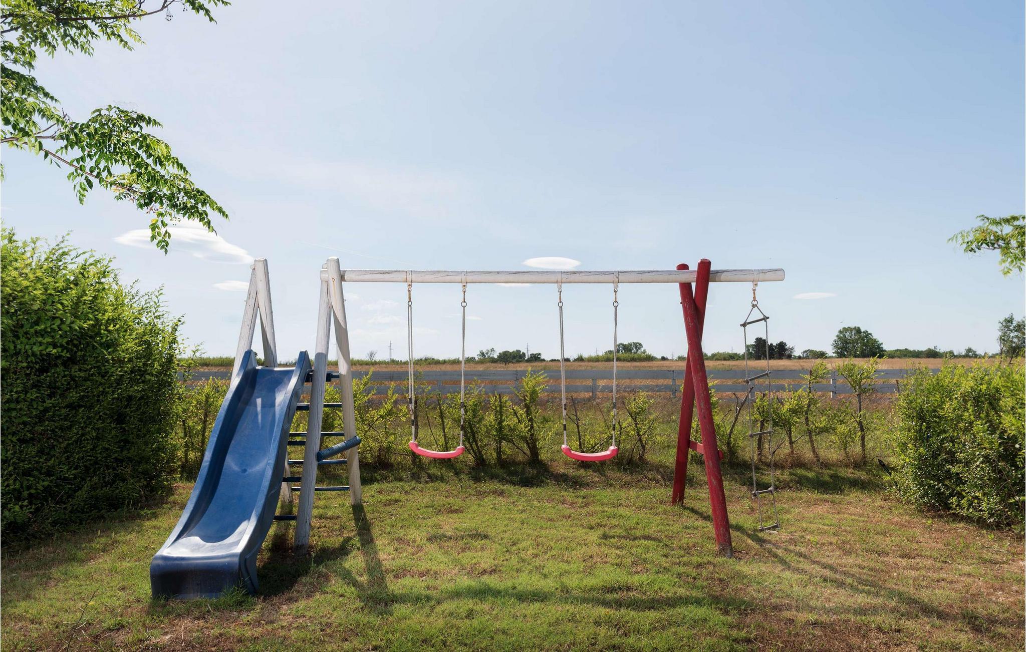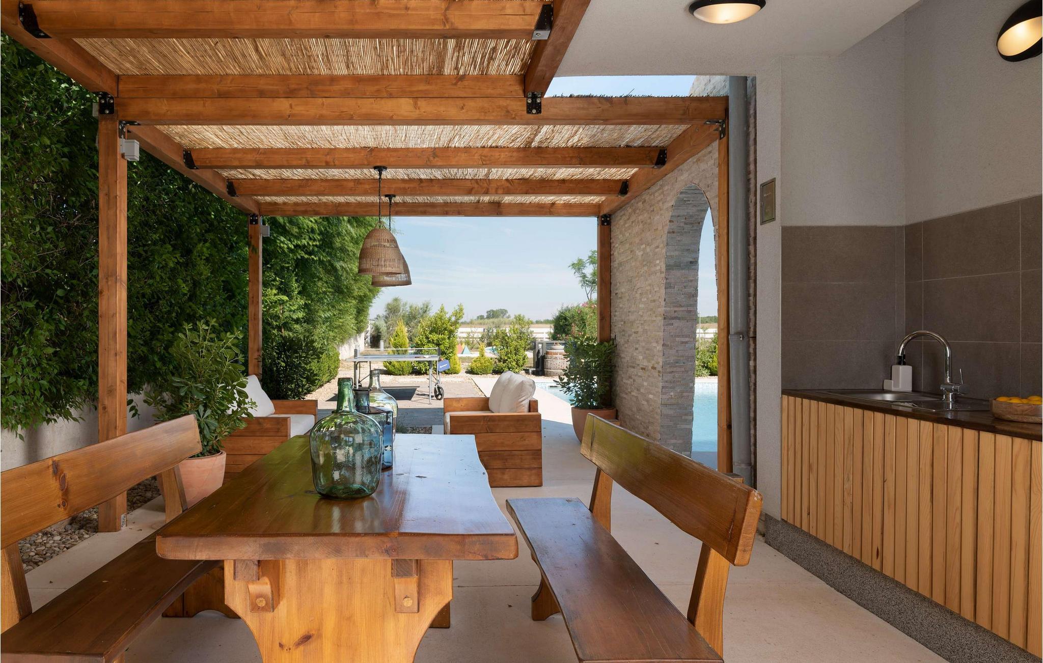 Også det elegante udendørsområde lader intet tilbage at ønske. Her indbyder en smuk pool med komfortable liggestole til mange timers solbadning. Giv jeres børn mulighed for sjov på legepladsen, mens I spiller volleyball, badminton eller minigolf. Tænd op i grillen, og nyd stemningsfulde aftener på terrassen eller ved bålpladsen.