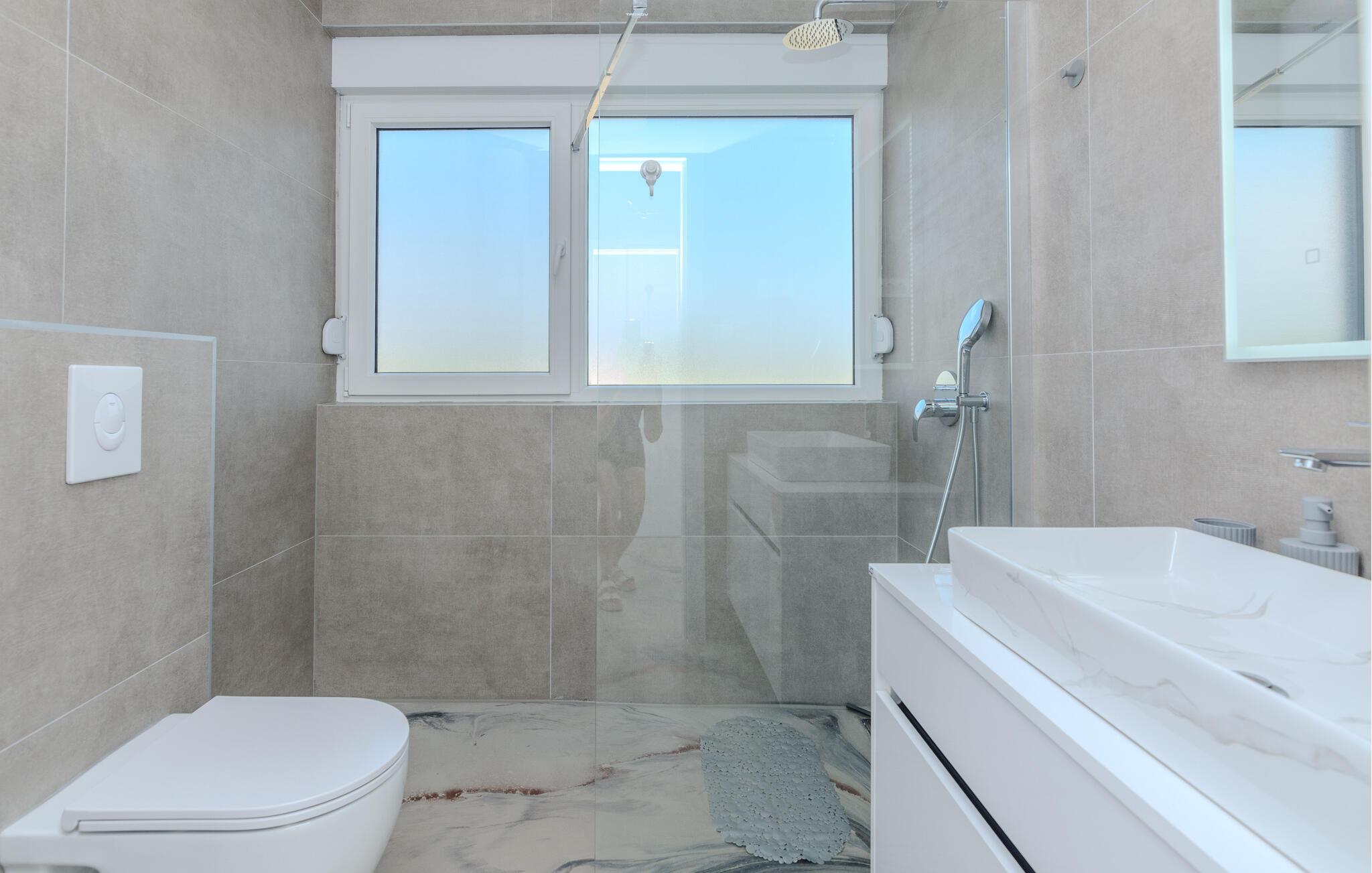 Tilbring afslappende dage i dette charmerende feriehus, kun en kort gåtur fra den nærmeste stenstrand. Begynd jeres morgener med en kop friskbrygget kaffe og en hyggelig morgenmad ved spisebordet eller ved køkkenbaren. Slap derefter af på den komfortable sofa i opholdsstuen, og gør jer klar til dagens eventyr. Alternativt kan I straks hoppe i den indbydende pool og nyde et forfriskende bad. Udendørsområdet med grillpladsen inviterer til hyggelige aftener med hele familien.
