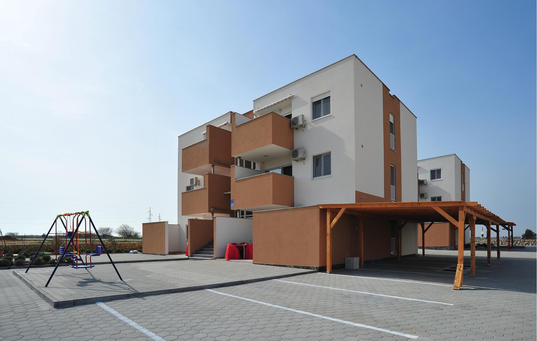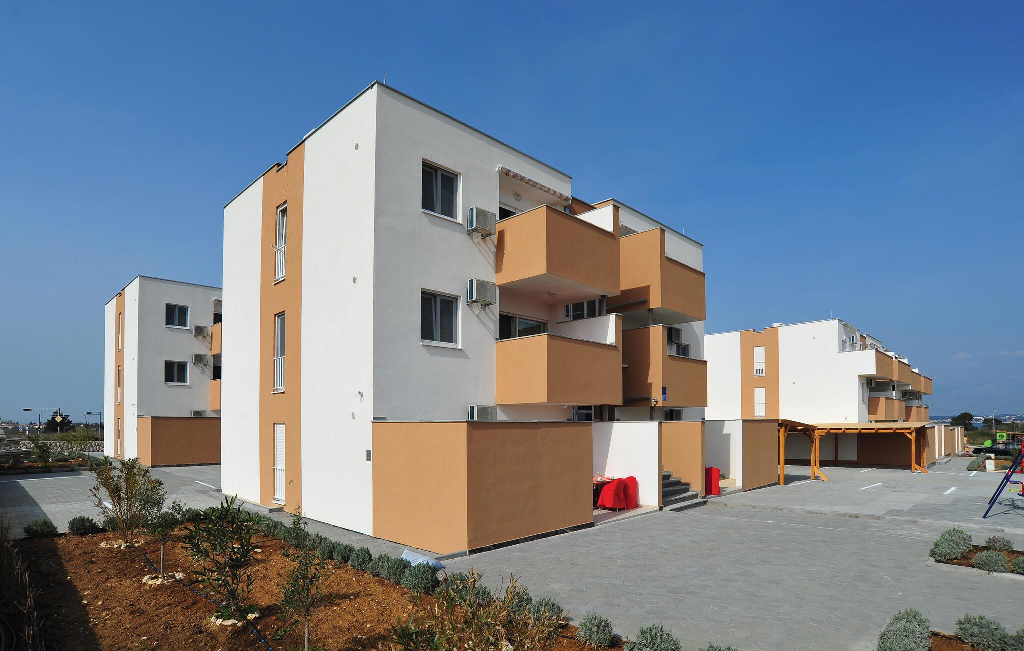 Tilbring en afslappende ferie i denne hyggelige lejlighed nær stranden. Denne lejlighed er perfekt til en forfriskende pause fra hverdagen. Slap af med en kop kaffe i den behagelige sofa, snak i fredfyldt ro, eller lyt til jeres yndlingsmusik. Tilbered lækre måltider i det moderne køkken og server dem med en god kroatisk vin. Nyd morgenmaden i solskinnet på altanen og nyd den friske havbrise. Tag en forfriskende dukkert i den fælles pool og svøm et par afslappende baner. Om eftermiddagen inviterer liggestolene jer til at slappe af med en kølig drink. Og på lune sommeraftener kan I tilberede frisk fisk eller en saftig bøf på den fælles grill. Gå en tur langs stranden og nyd den vidtstrakte sandstrand med det blidt skrånende hav. Gå over til Nin, hvor den charmerende gamle bydel med sine stenhuse og rolige lagunelandskab tilbyder en fredelig kontrast til den åbne kyst. Tag en tur til Zadar og nyd byens pulserende atmosfære midt i lyden af Havorglet, Forum Romanum og aftenens lysspil på vandet.