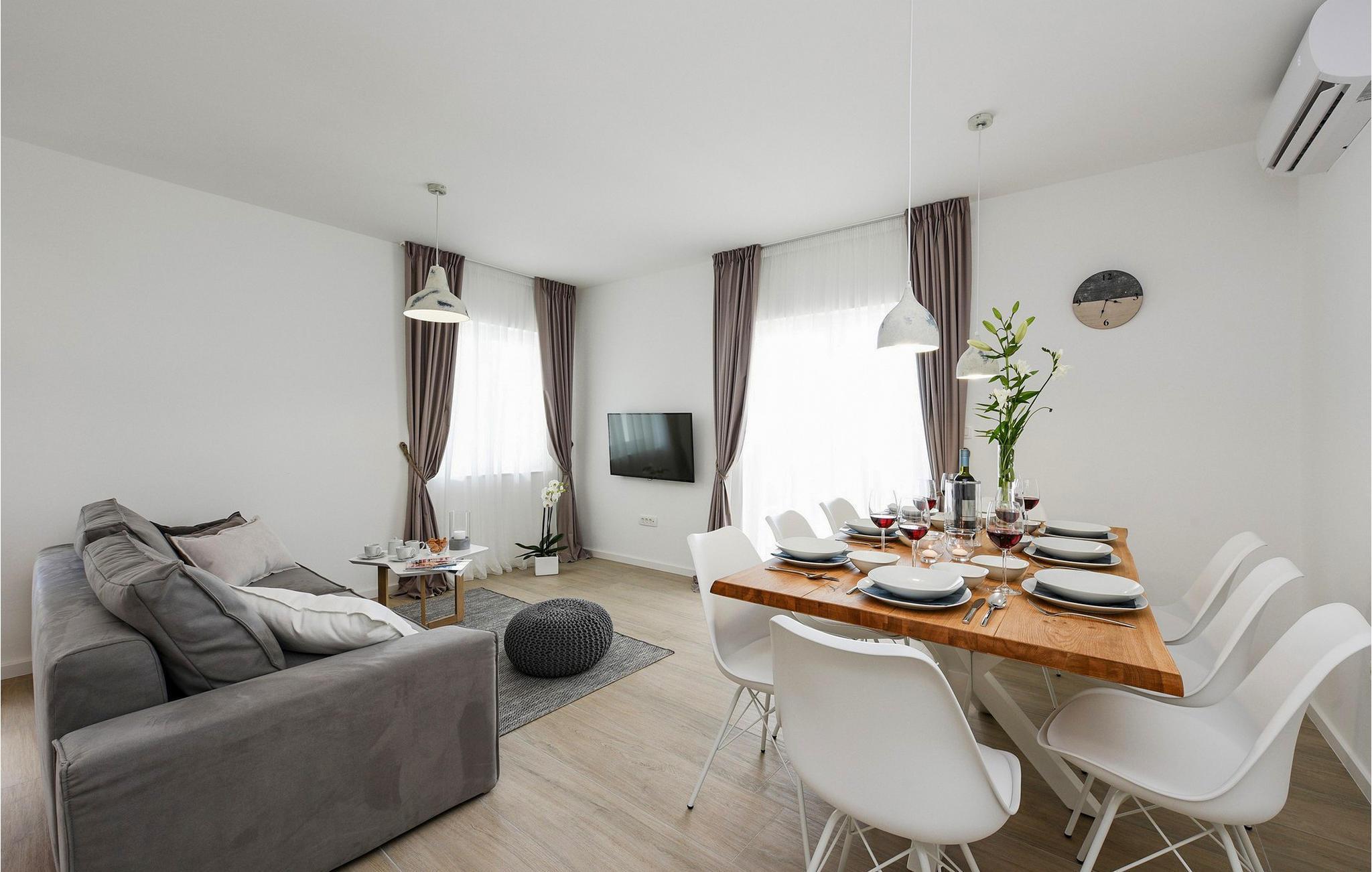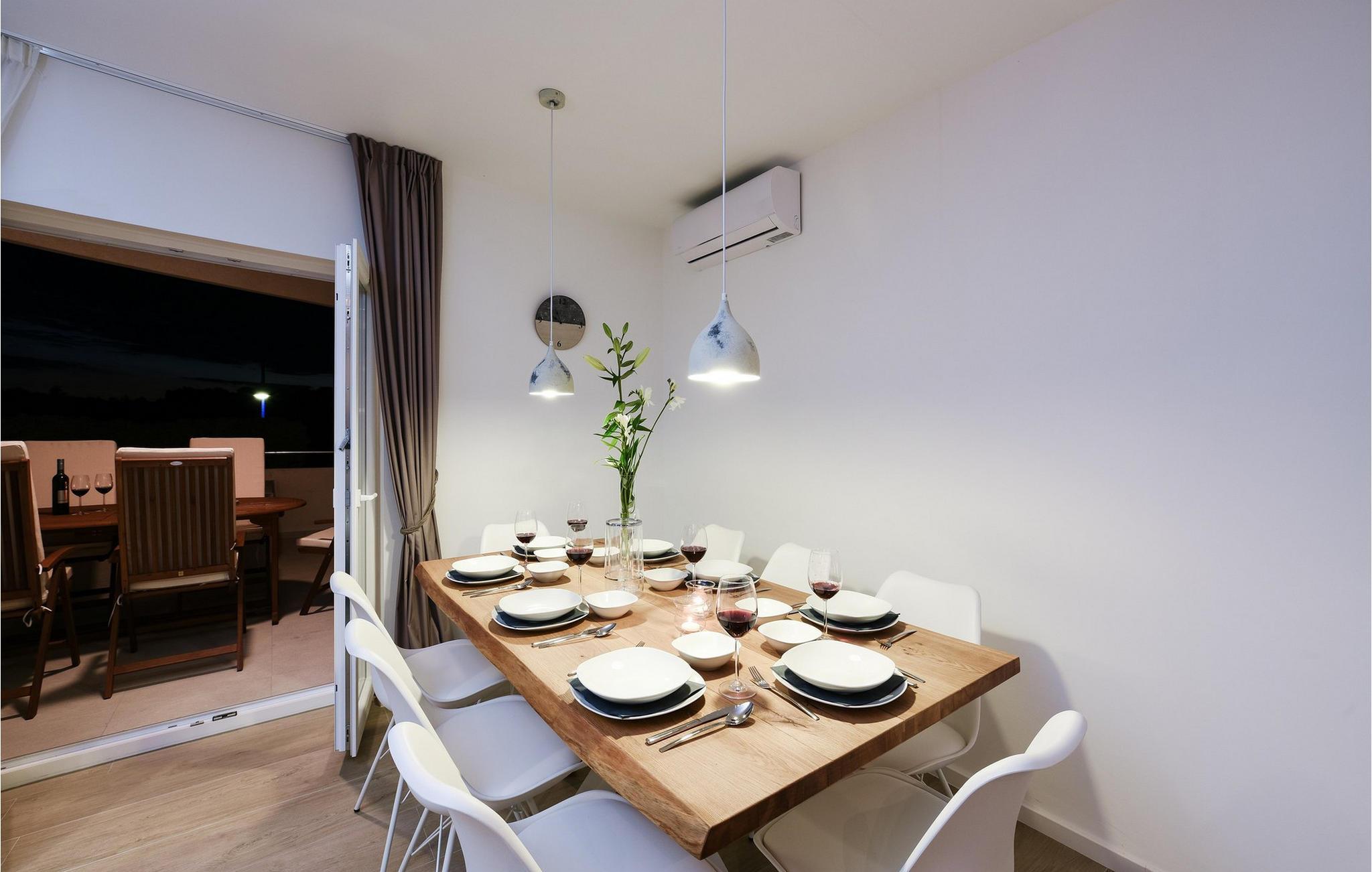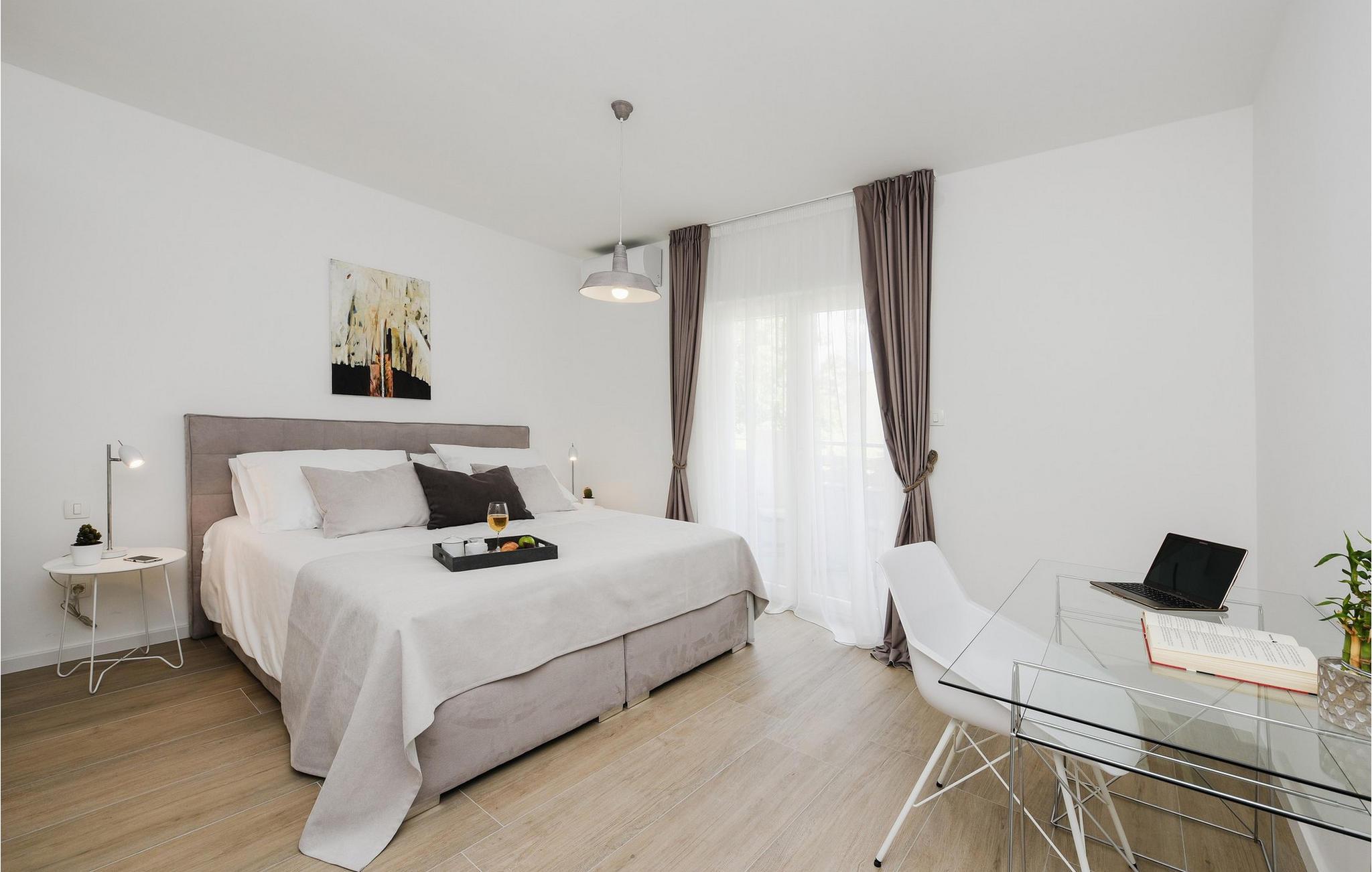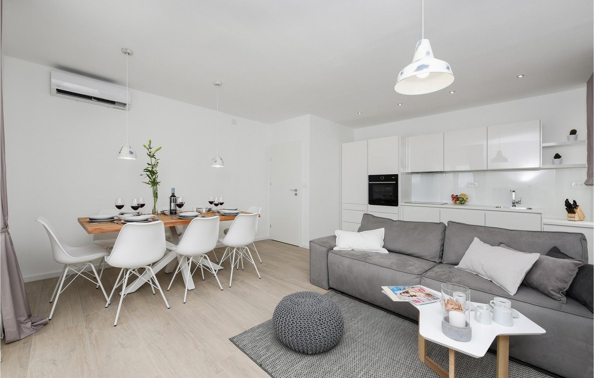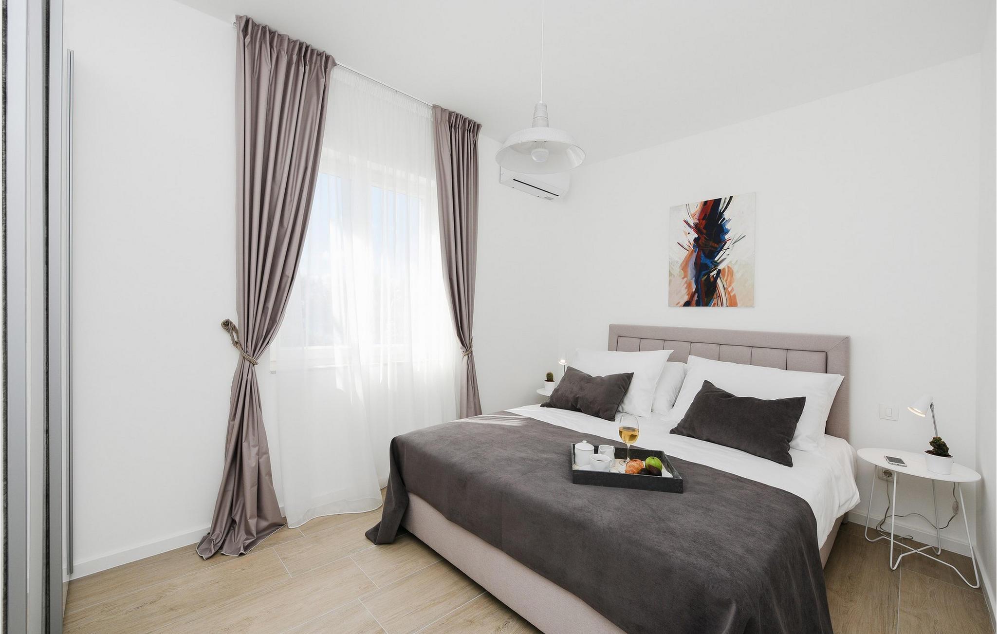 Nyd bølgerne lige uden for døren til denne rummelige og komfortable lejlighed. Denne moderne lejlighed Anica i Nin byder jer velkommen med lyse værelser og stilfulde indretningsløsninger. Det fuldt udstyrede køkken og den hyggelige stue lægger op til at slappe af. Slap af i de komfortable soveværelser og nyd en solid morgenmad på jeres terrasse. Nyd lune aftener i den velholdte have med grillplads og slap af på jeres terrasse. Næste dag kan I starte jeres dag med en dukkert i det krystalklare hav fra jeres private anløbsbro og solbade i haven. Anløbsbroen kan også bruges til at fortøje en båd (efter anmodning). Udforsk den charmerende gamle bydel i Nin med dens rige historie, verdens mindste katedral og den berømte Dronningestrand. De helbredende mudder- og saltsletter tilbyder særlige naturoplevelser. Vandsport, afslappende stranddage og udflugter til Zadar, kun en kort køretur væk, vil gøre jeres ophold uforglemmeligt. Bemærk: Ejendommen accepterer ikke ungdomsgrupper under 23 år eller polterabender. Bookinger fra sådanne grupper vil blive afvist, selv ved ankomst eller under opholdet, uden refusion.