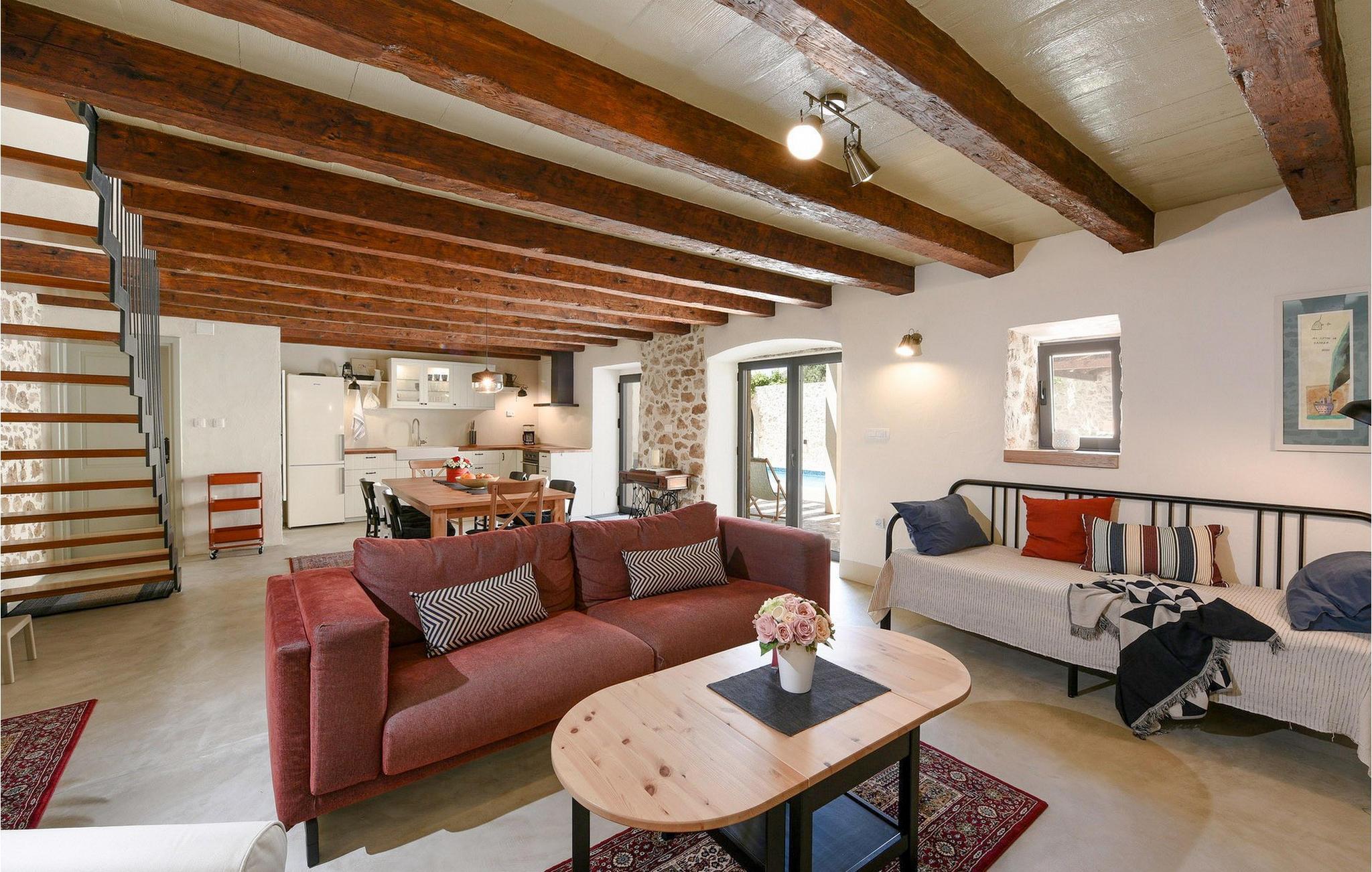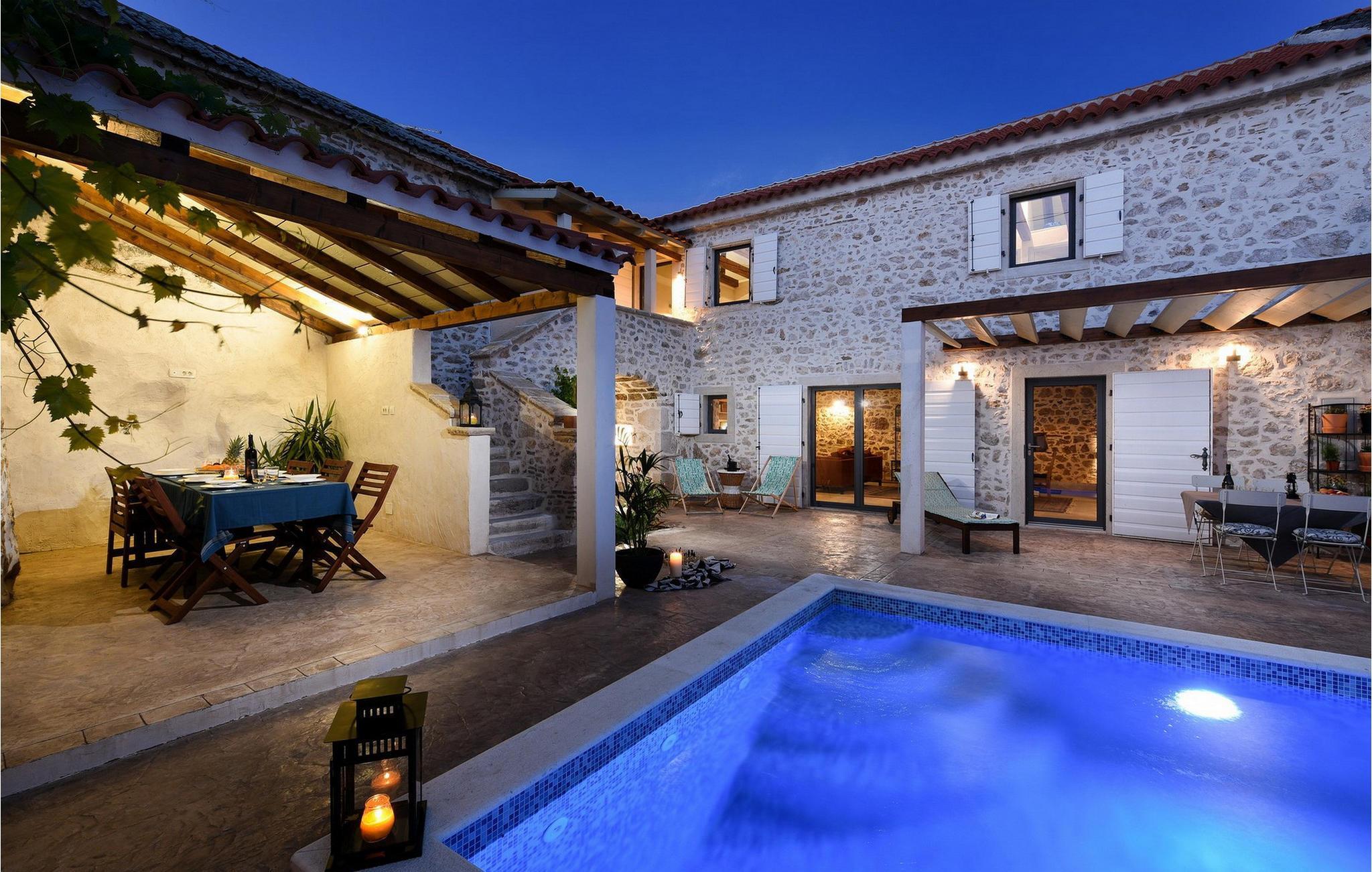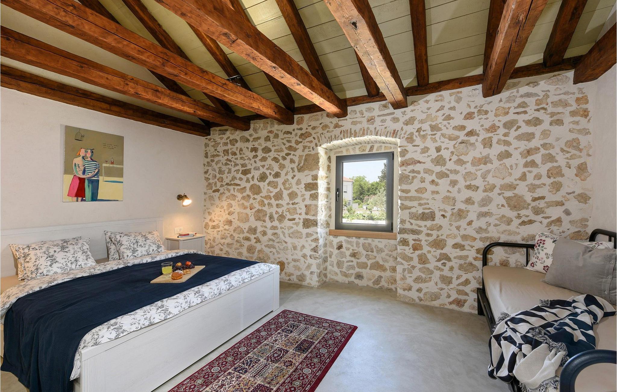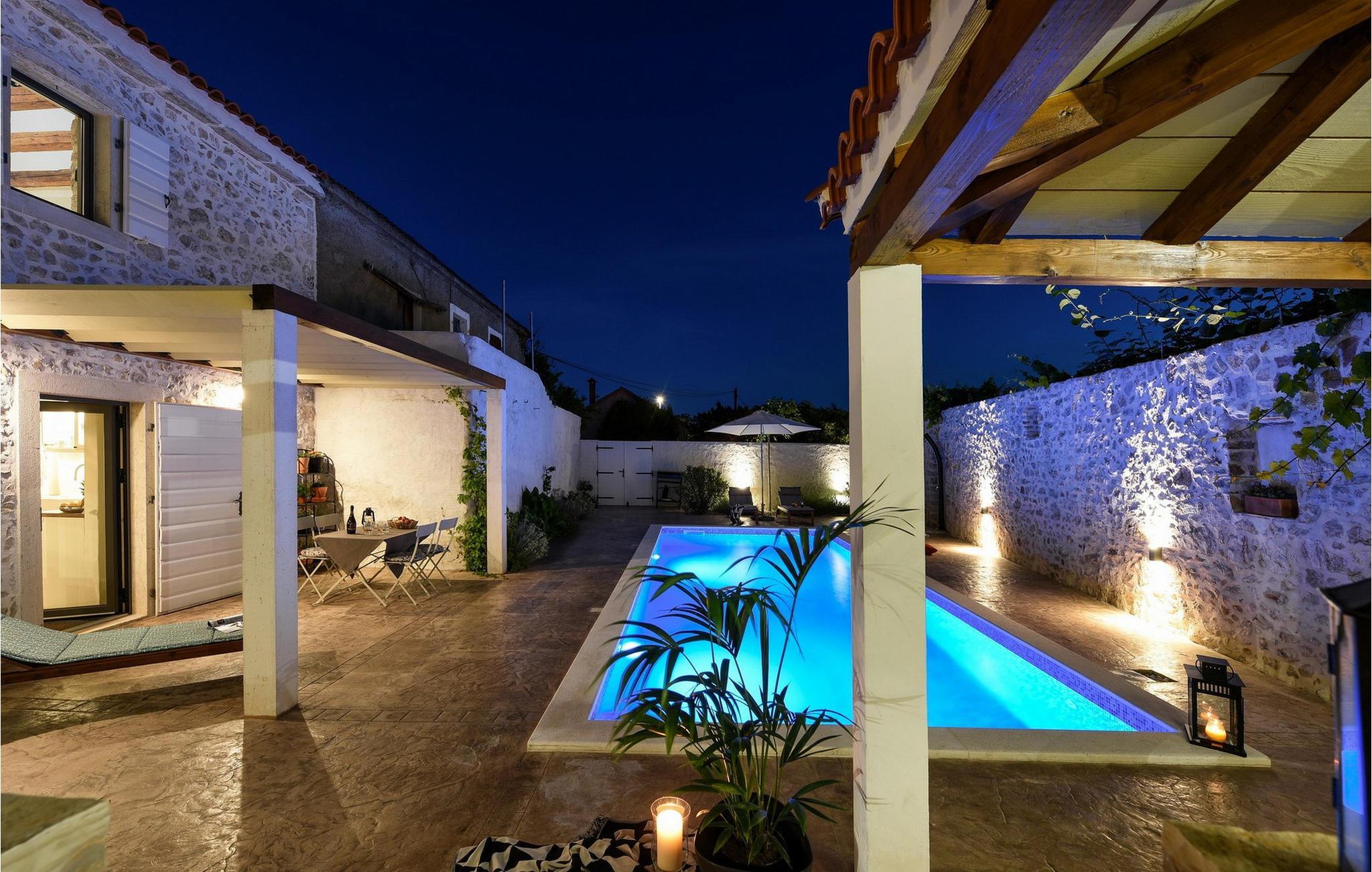 Fordyb jer i historien og afslapningen i denne charmerende villa med privat pool. Villa Dvori, kun en kort gåtur fra Nin centrum, kombinerer historisk charme med moderne komfort. Feriehuset, der oprindeligt blev bygget i 1853, udstråler en hyggelig atmosfære. Indenfor finder I en stilfuld stue, et fuldt udstyret køkken og komfortable soveværelser. Den store terrasse med opvarmet pool lægger op til en forfriskende dukkert. Grillområdet er den ideelle ramme for hyggelige aftener med familie og venner. Oplev Nins kulturelle og naturlige skatte. Den ældste kroatiske kongeby fortryller med sin rige historie og smukke sandstrande, ideelt for familier med børn. Gå en tur til den berømte Dronningestrand eller besøg de traditionelle saltsandsten og Saltmuseet. I den gamle bydel venter charmerende gyder, historiske kirker og hyggelige restauranter, der serverer dalmatiske specialiteter. Nærheden til Zadar giver også mulighed for spændende dagsture til den livlige kystby. Bemærk: Ejendommen accepterer ikke ungdomsgrupper under 30 år eller polterabender. Bookinger fra sådanne grupper vil blive afvist, selv ved ankomst eller under opholdet, uden refusion.