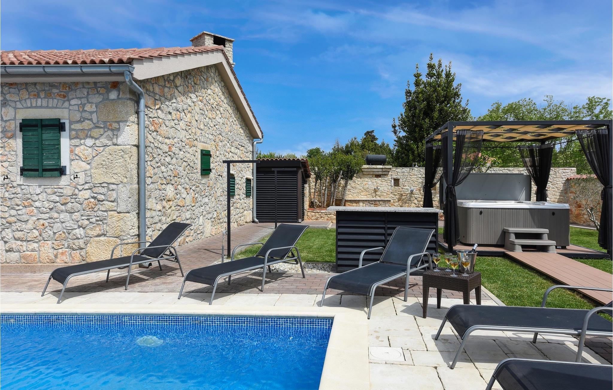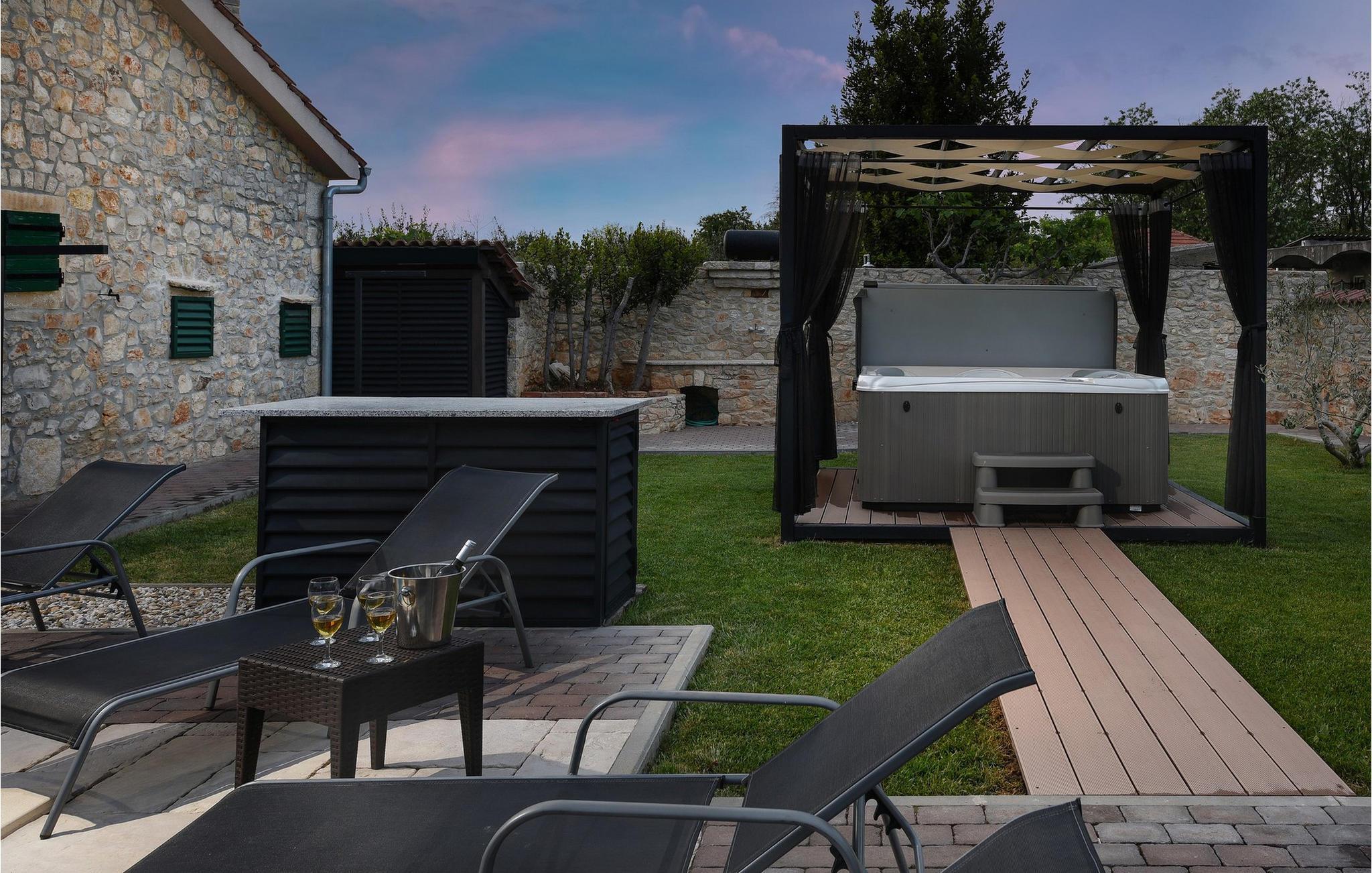 Nyd en dejlig ferie i dette fortryllende feriehus med pool og spabad. Den kærligt designede Villa Adriaticum kombinerer rustik charme med moderne komfort og tilbyder rigelig plads til hyggelige dage med venner eller familie. Fremkald middelhavsretter sammen, spis i den hyggelige atmosfære i spiseområdet, snak om svundne tider under den atmosfæriske belysning, og saml jer til hyggelige spilleaftener efter en lang dag i solen. Det overdækkede udendørsområde er perfekt til fuldt ud at nyde Kroatiens vidunderlige klima på alle tider af dagen. Svøm baner i poolen, så snart I vågner - dens belysning gør selv natsvømning til en uforglemmelig oplevelse. Lad batterierne op på liggestolen, forkæl jer selv med afslappende øjeblikke i spabadet, og skål for jeres tid sammen med et glas vin ved solnedgang. Brug sommerkøkkenet til at tilberede lækre tilbehør til jeres grillmad og oplev atmosfæriske aftener sammen i intimt selskab. Gå gennem den charmerende gamle bydel i Nin, solbad på de lange sandstrande som Queen's Bay og nyd det helende peloid-mudderbad. Tag en tur til det nærliggende Zadar, hvor I kan se Havorglet og "Hilsen til solen". Tag en bådtur til Kornatiøerne, hvor I kan snorkle i afsondrede bugter med krystalklart vand, og afslutte dagen med dalmatiske specialiteter på en taverna ved havet.