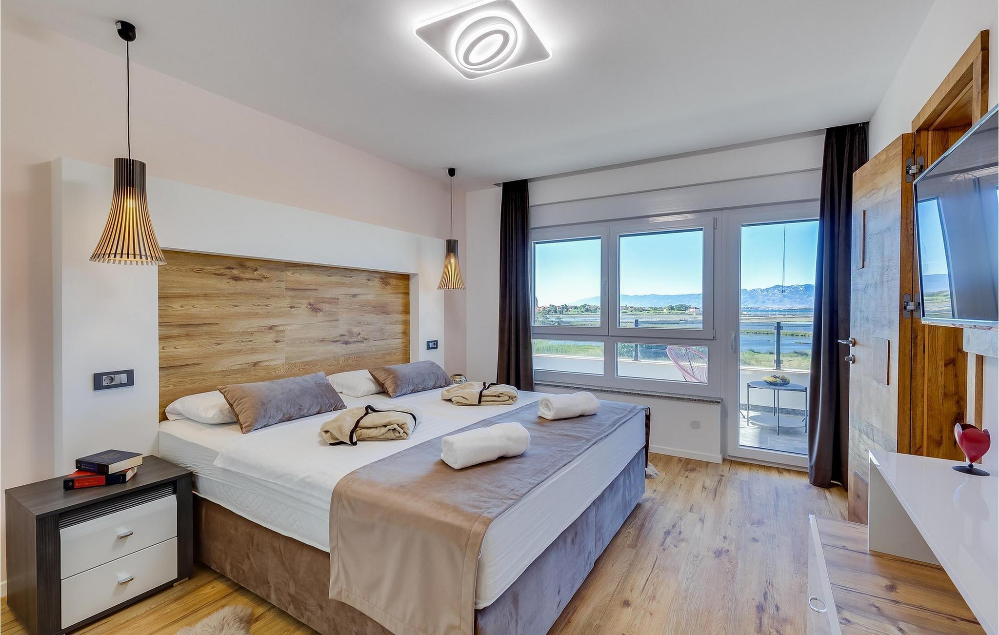 Tilbring en fantastisk ferie i dette komfortable feriehus nær havet med pool og wellness-område. De lyse opholdsrum i Villa Dona kombinerer moderne design med varme træelementer, hvilket skaber en elegant og hyggelig atmosfære. Slap af i de rummelige sofaer, nyd udsigten over terrassen gennem gulv-til-loft-vinduerne eller tilbring en filmaften. Det åbne køkken med kogeø og den stilfulde spiseplads lægger op til at tilberede måltider sammen og nyde dem med venner. Takket være de problemfri overgange mellem inde- og udeområder oplever I en luksuriøs livsstil med en følelse af rummelighed og lethed. Et wellness-rum med sauna og spabad er tilgængeligt for jeres afslapning og et pusterum fra hverdagen. Fra villaens have har I en fantastisk udsigt over Nins maleriske landskab. Nyd jeres måltider ved det stilfulde udendørs spisebord, mens I nyder den middelhavske aftenstemning. En opvarmet pool lægger op til at slappe af, mens komfortable liggestole sikrer afslappende timer i solen. Nyd den storslåede udsigt over det blå Adriaterhav og Zadarøerne fra terrassen. Under jeres ophold kan I udforske den charmerende by Nin, der betragtes som den ældste by i Kroatien og et af fødestederne for kroatisk kultur. Den lavvandede bugt tilbyder ikke kun perfekte badeforhold, men også sund luft og det berømte helbredende mudder ved Queen's Beach. I umiddelbar nærhed af villaen finder I også sand- og stenstranden Ždrijac, som med sin unikke form omkranser den gamle bydel i Nin og lægger op til at tilbringe afslappende dage ved havet. Derudover har I mulighed for at besøge den historiske by Zadar med dens varierede turisttilbud, tage på udflugter til øerne i Zadar-øgruppen eller opdage de imponerende nationalparker Kornati, Krka, Plitvicesøerne og Paklenica.
