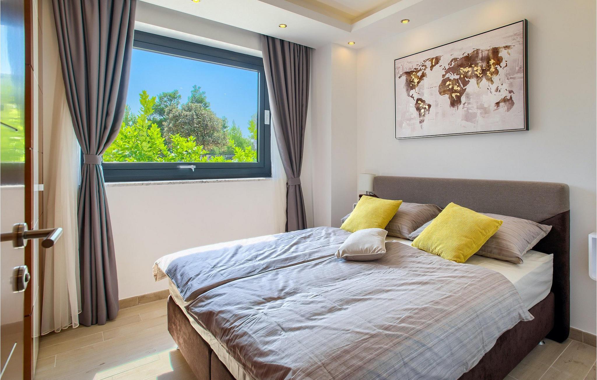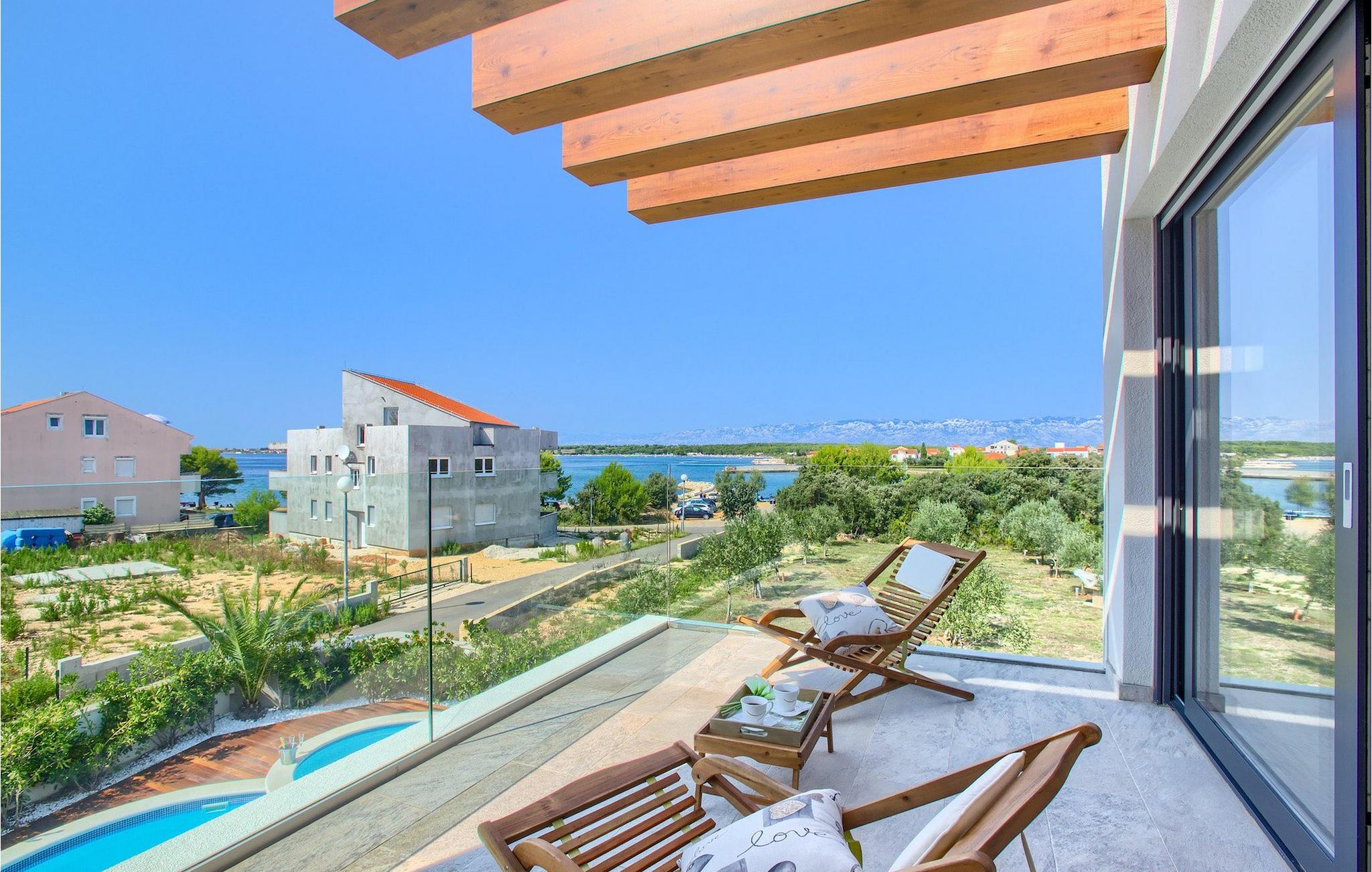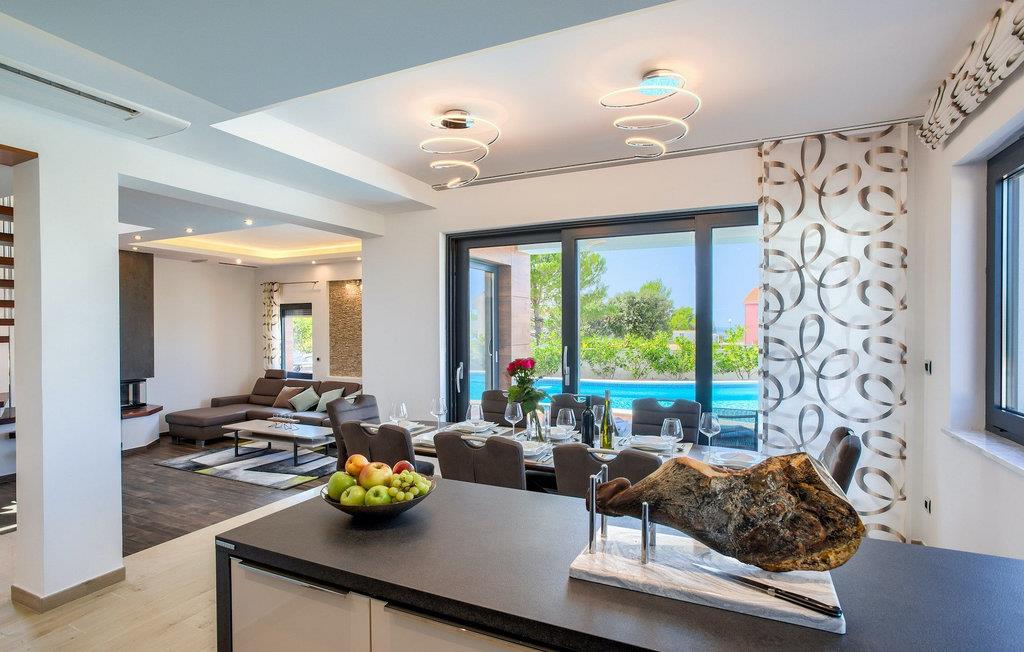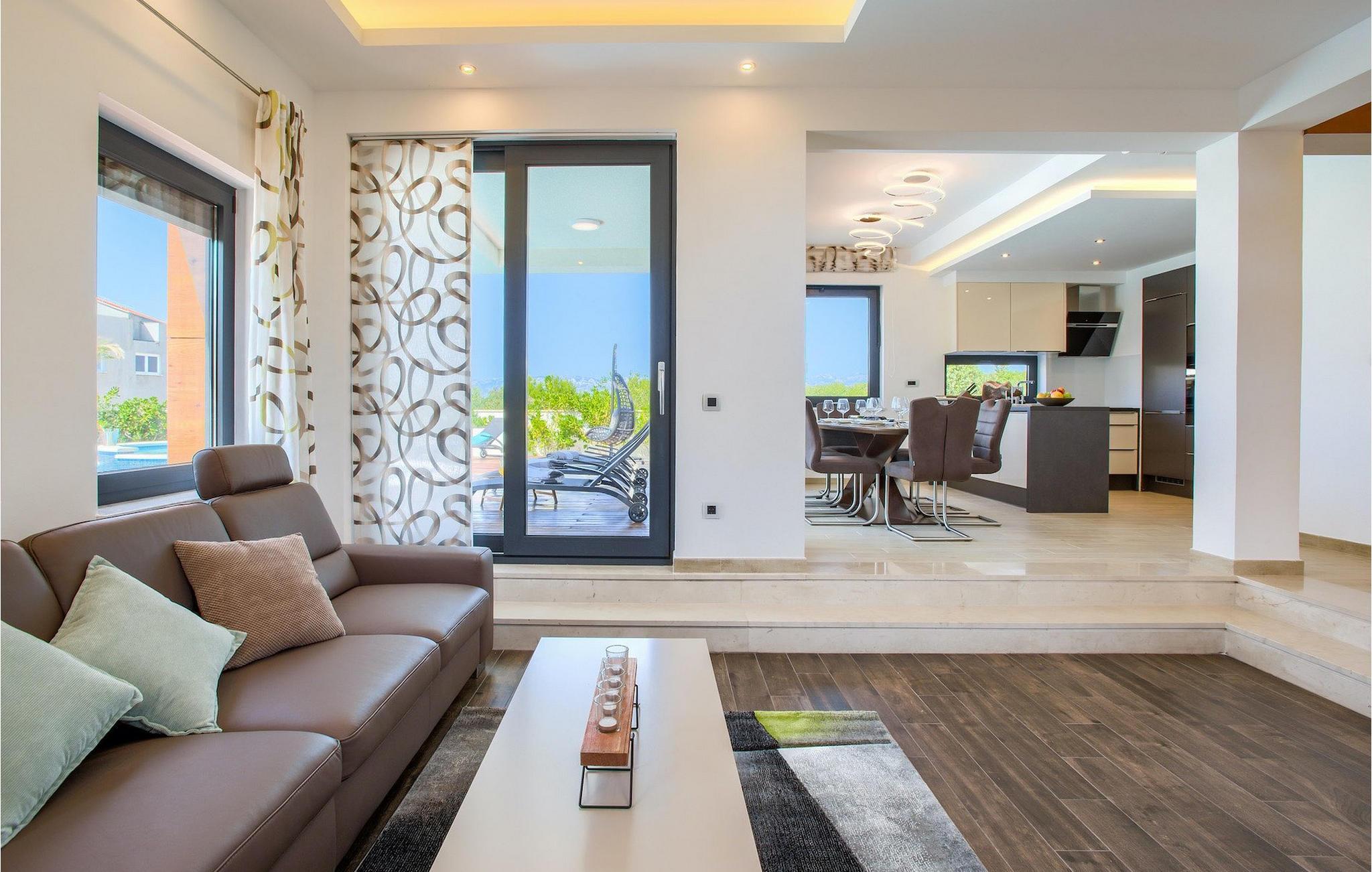 Men højdepunktet i denne vidunderlige villa er nok den fantastiske tagterrasse med et loungeområde med udsigt over havet. Det er det perfekte sted for lette aftensamtaler, se solen gå ned og havet endelig falde til ro efter en udmattende dag ved poolen eller stranden. :)Zaton er en lille turistby beliggende mellem to historiske byer - Nin (2 km) og Zadar (12 km). Den smukke dalmatiske arkitektur, det behagelige middelhavsklima, smukke landskaber og en livlig turistatmosfære samt en række forskellige strande gør dette sted perfekt til en behagelig familieferie. Med Zaton forbinder du ordene fred, krystalklart hav og drømmende solnedgange. Gode vejforbindelser og den tætte nærhed af Zadar lufthavn gør køreturen til villaen nem og behagelig. 2 km fra Zaton finder du Nin - en lille by beliggende på en ø i en lavvandet lagune og forbundet med fastlandet med to stenbroer. Nin er kendt som den ældste kongelige vugge i Kroatien med den mindste katedral i verden. Byen har en lang historie og smukke naturskatte og er et fremragende sted for sundhedsturisme, som det fremgår af det helbredelige havmudder, der siges at helbrede mange sygdomme. Zadar, centrum af det centrale Dalmatien er heller ikke langt (12 km). Det er en gammel by med rig kulturel og historisk arv, der går helt tilbage til oldtiden, middelalderen og renæssancen. Besøg romerpladsen, kirken St. Donat, katedralen i St. Anastasia eller tag et kig på den gamle forsvarsmur. Men udover kulturelle og historiske skønheder tilbyder Dalmatien en unik gastrooplevelse, kendt for hjemmelavet dalmatisk prosciutto (pršut) og middelhavsblåmuslinger. Zadar er også berømt for lysinstallationen "Pozdrav Suncu" (hilsen til solen) og symfonien om Havorgelet. Zadar fuldender sit tilbud med forskellige strande, restauranter, barer og caféer. Som en af mulighederne for en dagstur vil vi klart anbefale national- og naturparkerne såsom Krka-vandfaldene, Kornati-øerne, Plitvice-søerne, Vransko jezero, Telascica og Paklenica, som uden tvivl vil efterlade dig forpustet.