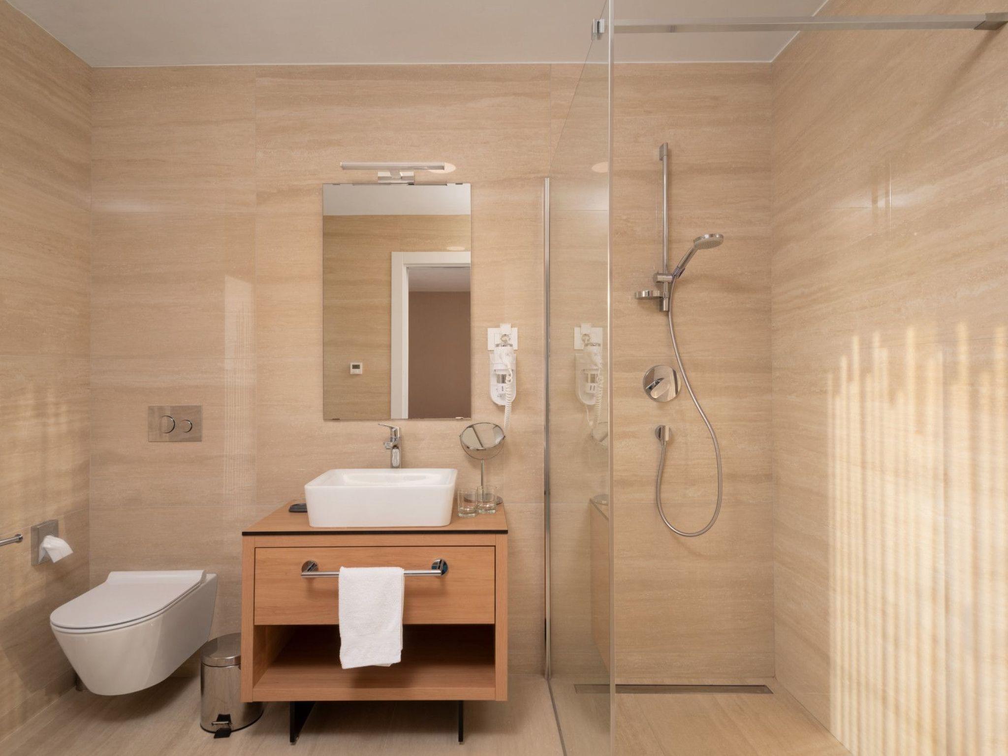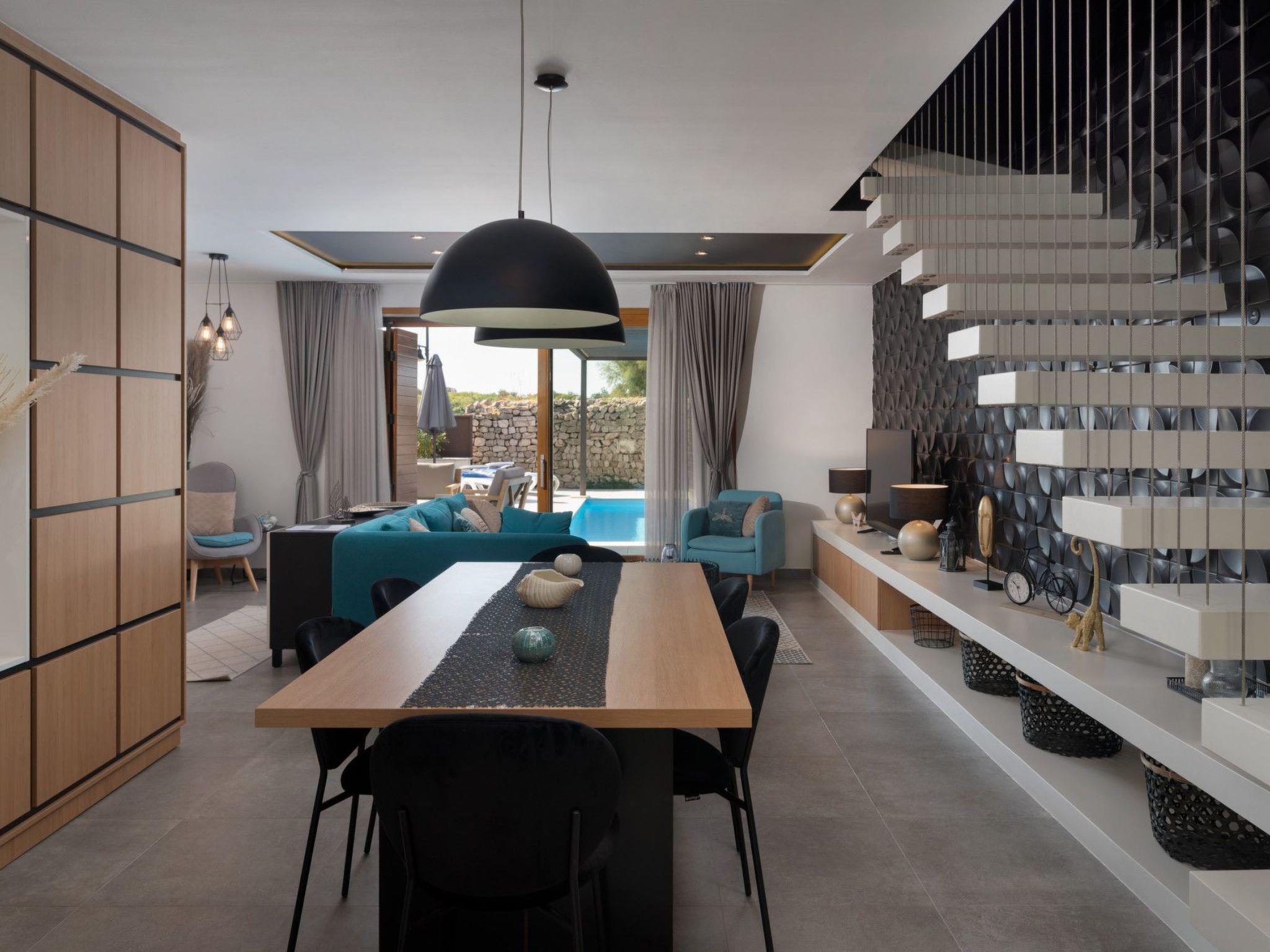 Inside, the villa boasts underfloor heating throughout, creating a cozy environment no matter the season. Each of the two double bedrooms is complemented by its own en-suite bathroom, offering privacy and ease for all guests. The living arrangements are rounded out with a sofa bed for additional guests. Practical amenities like a washing machine, coffee machine, dishwasher, and electric kettle enhance the living experience, allowing guests to feel fully at home.