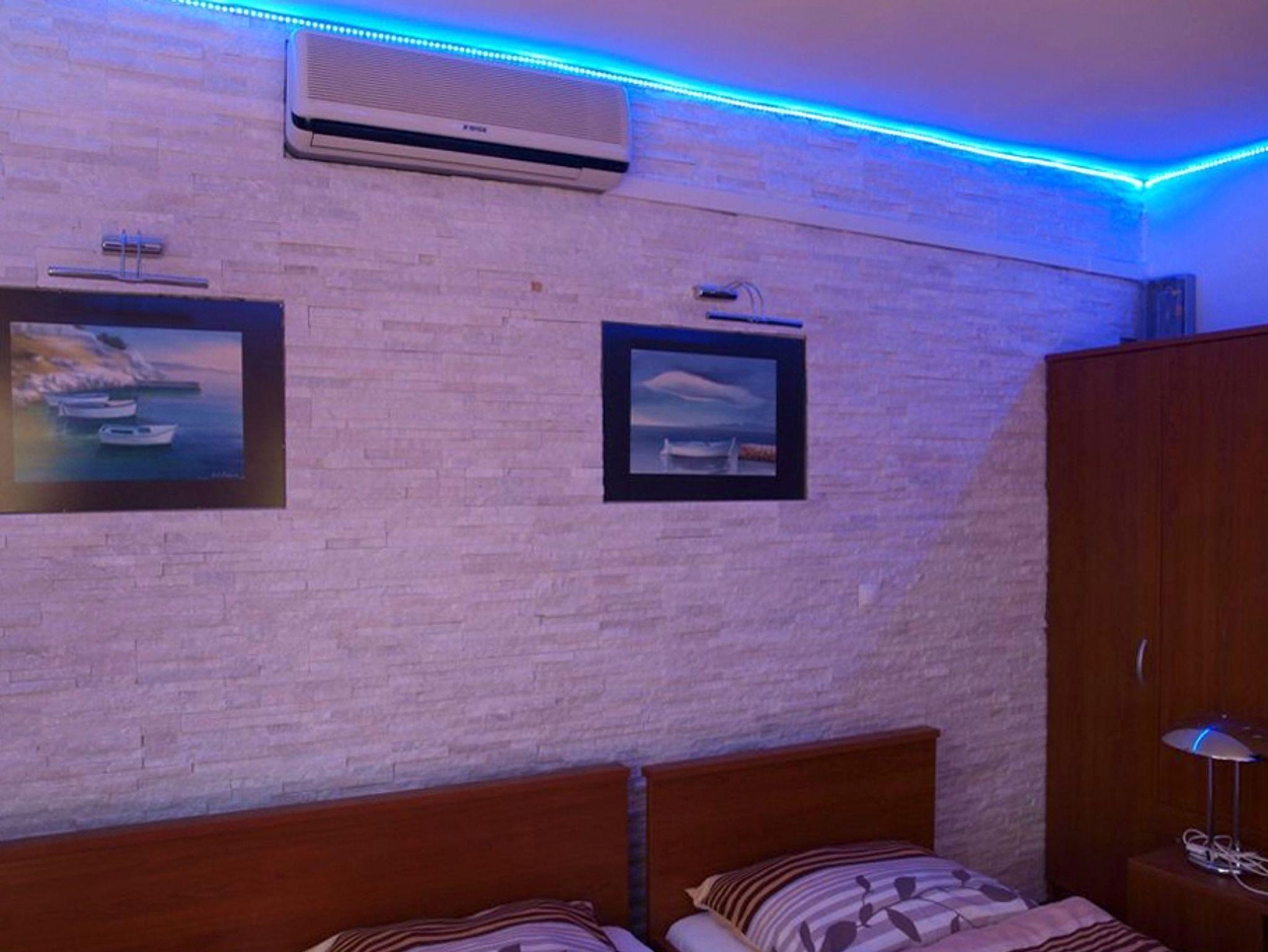 Ferienwohnung bietet Platz für 3 Gäste. Die Betten sind in Schlafzimmern, die es 1 gibt, innerhalb einer Gesamtfläche von 27m2, angeordnet. Die Gäste haben einen eigenen Balkon zur Verfügung, auf der sie in warmen Sommernächten genießen können. Es ist erlaubt, Speisen auf dem Gemeinschafts-Grill vorzubereiten. In der Unterkunftseinheit besteht die Möglichkeit des Mitbringens von Haustieren gegen Aufpreis. IM PREIS INBEGRIFFEN: Kurtaxe, Endreinigung, Klimatisierung, Parkplatz, Internet, Fahrrad, Kinderbett, Bügeleisen, Föhn, Sonnenschirm, Liegestühle. VERBINDLICHE ZUSÄTZLICHE KOSTEN: Aufzahlung für Kurzaufenthalte (prozentualer Zuschlag pro Nächtigungsanzahl: 30% - 1, 20% - 2, 10% - 3). UNVERBINDLICHE ZUSÄTZLICHE KOSTEN: Wäschewaschen (15,00 € Waschen), Boot (100,00 € pro Nacht), Bootsanlegeplatz (30,00 € pro Nacht), Haustiere (5,00 € pro Nacht). Die Verfügbarkeit zusätzlicher Dienstleistungen in Ihrem reservierten Termin und die Preise derselben (falls nicht aufgeführt) müssen im Voraus überprüft werden. Zusätzliche Dienstleistungen die in der Zahlungsaufforderung nicht aufgeführt sind werden direkt beim Vermieter bezahlt, angenommen der Gast nutzt auch diese. Ermäßigung auf den Grundpreis: Gratistag 14=13 (bei einem Aufenthalt von 14 Tagen oder mehr erhalten Sie einen Gratistag für den Aufenthalt bis 31.12.26).