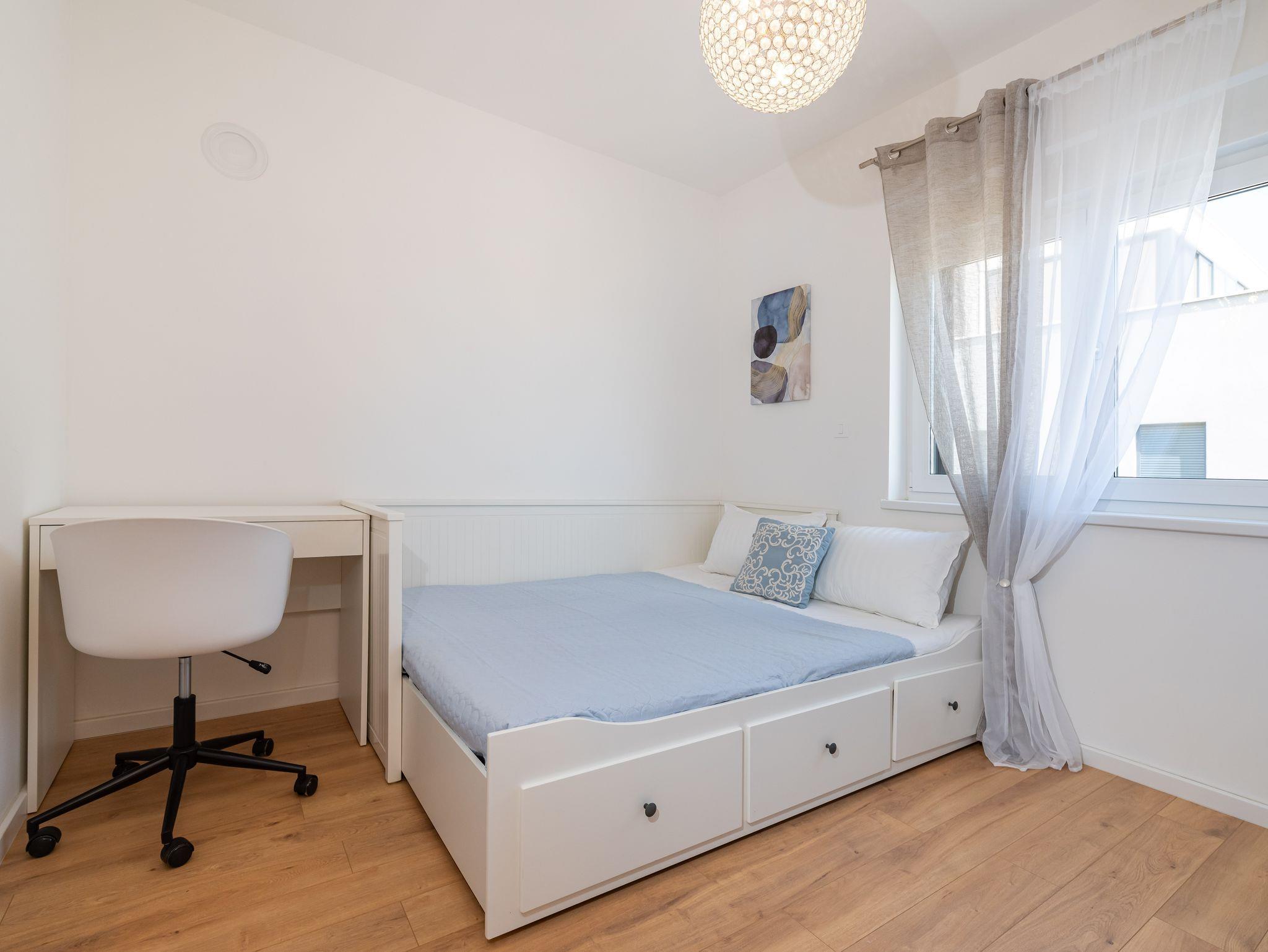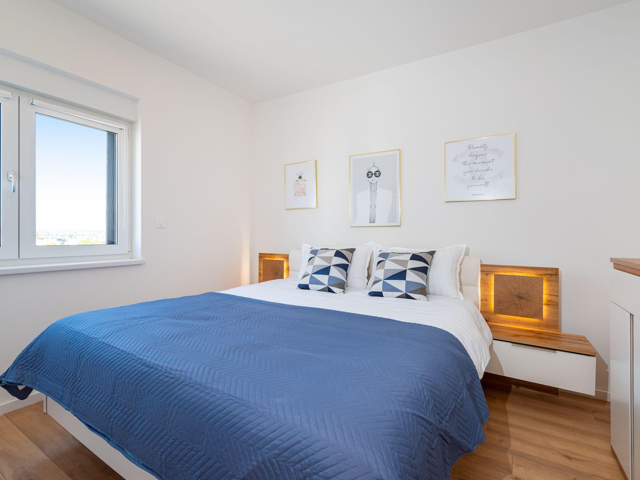 Ferienwohnung bietet Platz für 4 Gäste. Die Betten sind in Schlafzimmern, die es 2 gibt, innerhalb einer Gesamtfläche von 56m2, angeordnet. Die Gäste haben eine eigene Terrasse zur Verfügung, auf der sie in warmen Sommernächten genießen können. Das Apartment bietet Meerblick. Für vollen Genuss und Entspannung gibt es einen privaten Grill für Gäste dieser Unterkunft. IM PREIS INBEGRIFFEN: Kurtaxe, Endreinigung, Klimatisierung, Parkplatz, Internet, Fahrrad, Kinderbett, Bügeleisen, Bügelbrett, Föhn. VERBINDLICHE ZUSÄTZLICHE KOSTEN: Aufzahlung für Kurzaufenthalte (prozentualer Zuschlag pro Nächtigungsanzahl: 30% - 1, 20% - 2, 10% - 3). Die Verfügbarkeit zusätzlicher Dienstleistungen in Ihrem reservierten Termin und die Preise derselben (falls nicht aufgeführt) müssen im Voraus überprüft werden. Zusätzliche Dienstleistungen die in der Zahlungsaufforderung nicht aufgeführt sind werden direkt beim Vermieter bezahlt, angenommen der Gast nutzt auch diese.