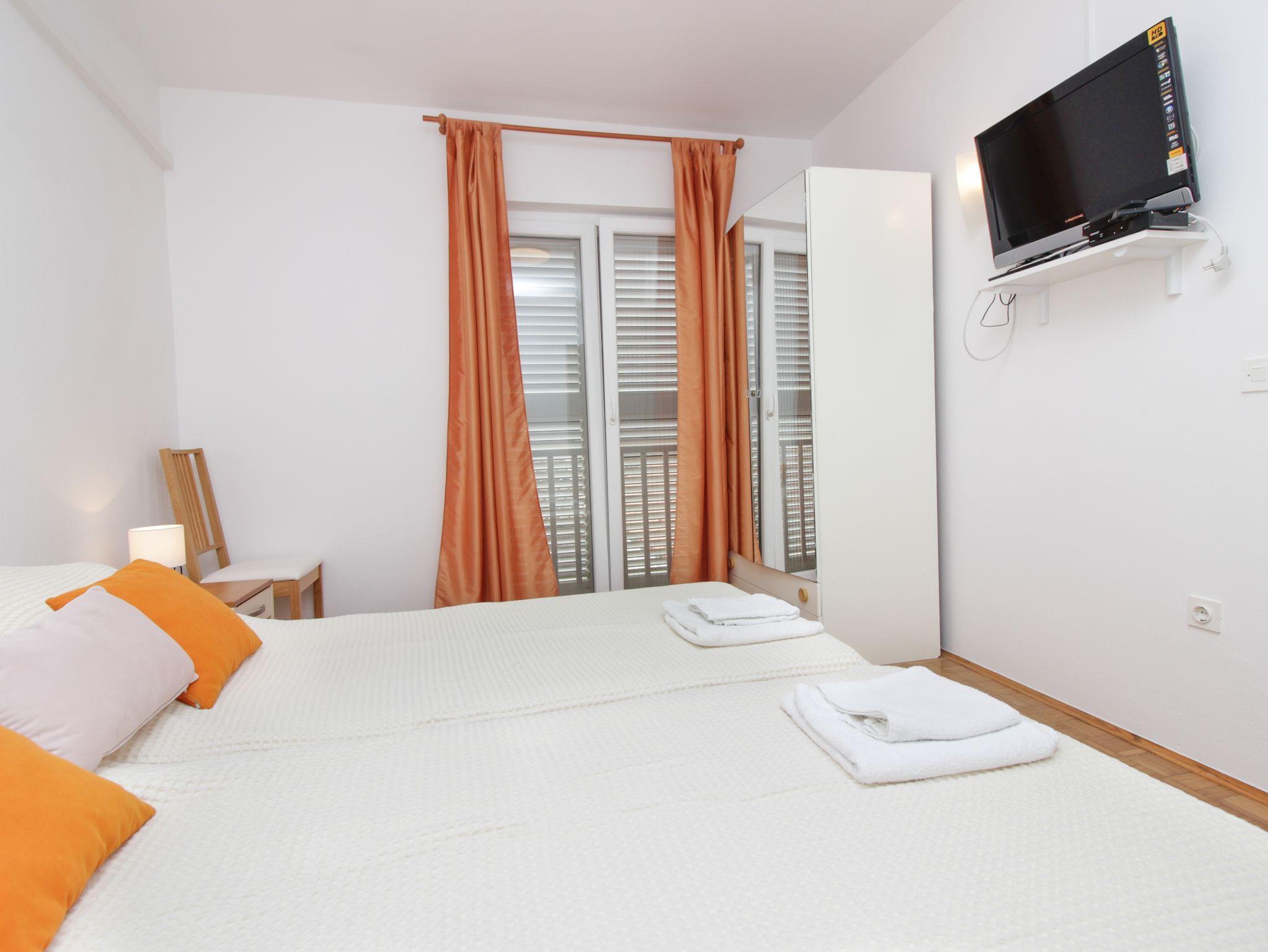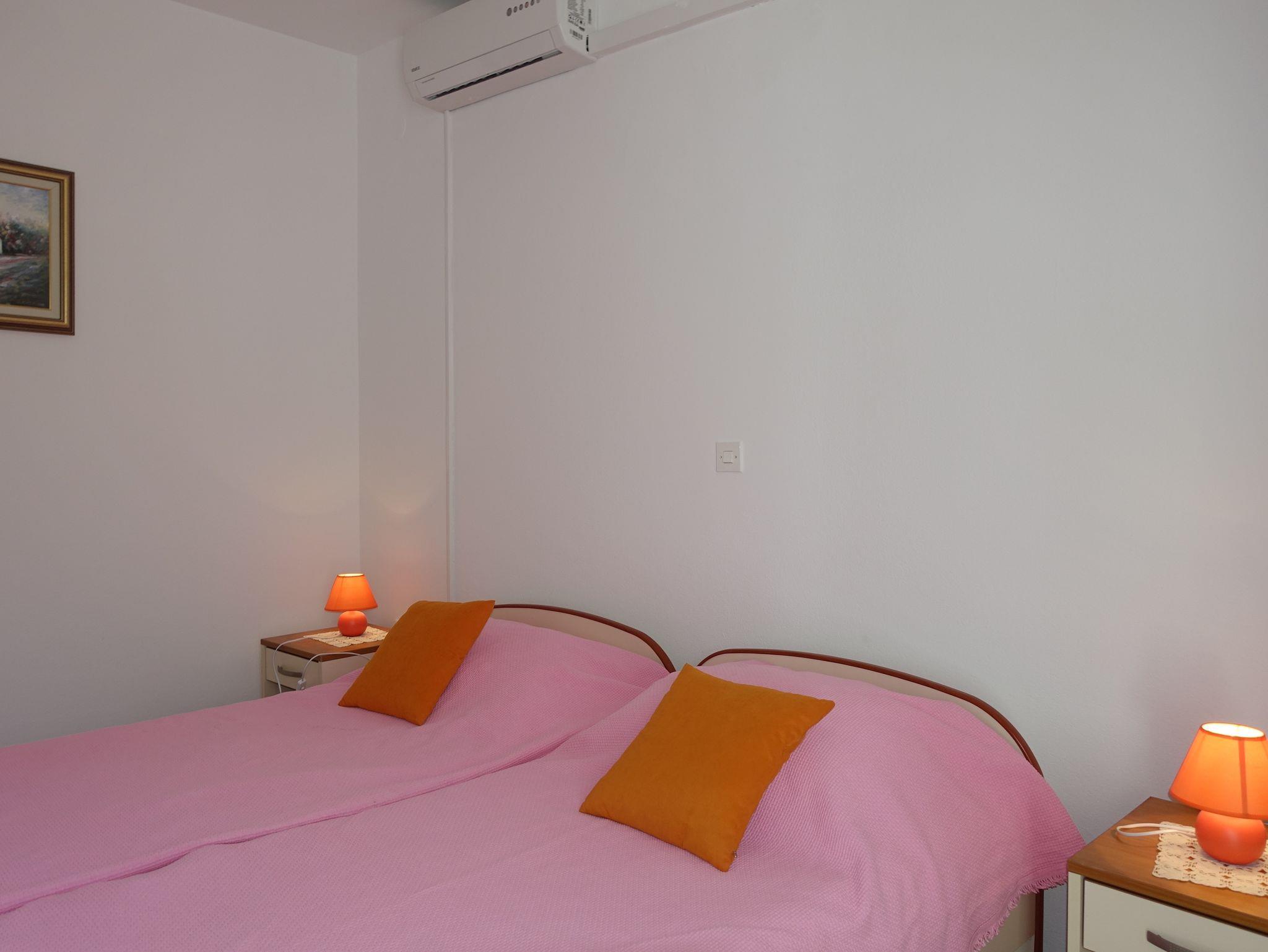 Ferienwohnung bietet Platz für 4 Gäste. Die Betten sind in Schlafzimmern, die es 1 gibt, und in Wohnzimmer, innerhalb einer Gesamtfläche von 30m2, angeordnet. Die Gäste haben eine eigene Terrasse zur Verfügung, auf der sie in warmen Sommernächten genießen können. Das Apartment bietet Meerblick. Es ist erlaubt, Speisen auf dem Gemeinschafts-Grill vorzubereiten. IM PREIS INBEGRIFFEN: Kurtaxe, Endreinigung, Klimatisierung, Parkplatz, Internet, Bootsanlegeplatz, Bügeleisen, Bügelbrett, Föhn. VERBINDLICHE ZUSÄTZLICHE KOSTEN: Aufzahlung für Kurzaufenthalte (prozentualer Zuschlag pro Nächtigungsanzahl: 30% - 1, 20% - 2, 10% - 3). UNVERBINDLICHE ZUSÄTZLICHE KOSTEN: Zusatzbett (5,00 € pro Nacht). Die Verfügbarkeit zusätzlicher Dienstleistungen in Ihrem reservierten Termin und die Preise derselben (falls nicht aufgeführt) müssen im Voraus überprüft werden. Zusätzliche Dienstleistungen die in der Zahlungsaufforderung nicht aufgeführt sind werden direkt beim Vermieter bezahlt, angenommen der Gast nutzt auch diese.