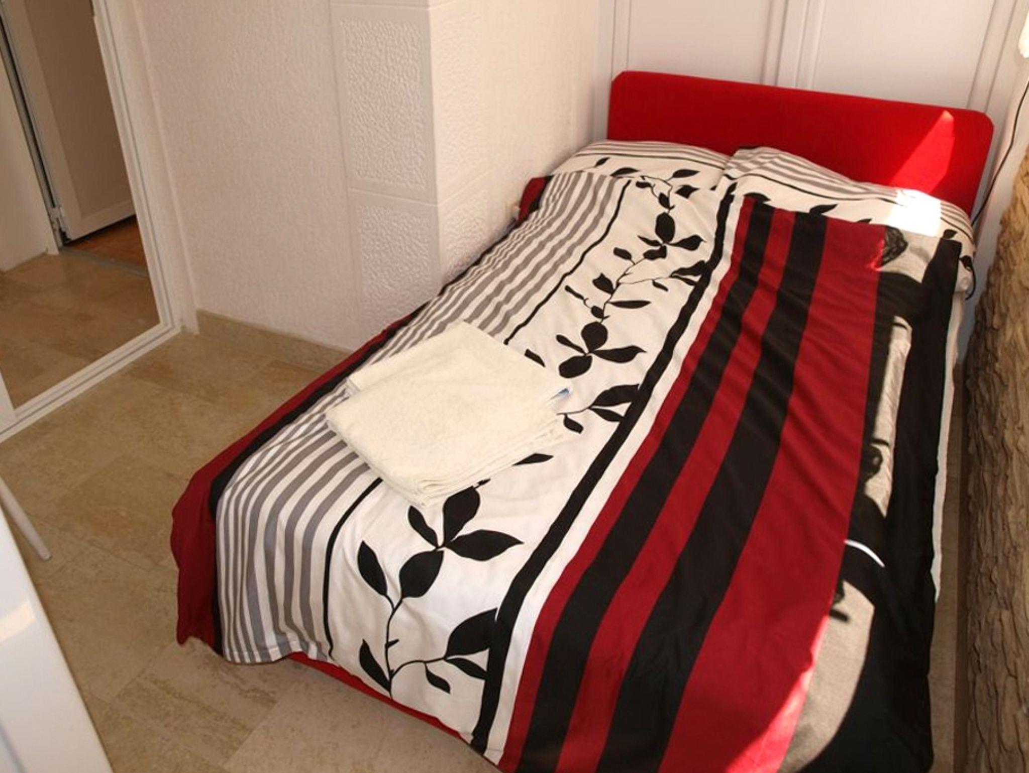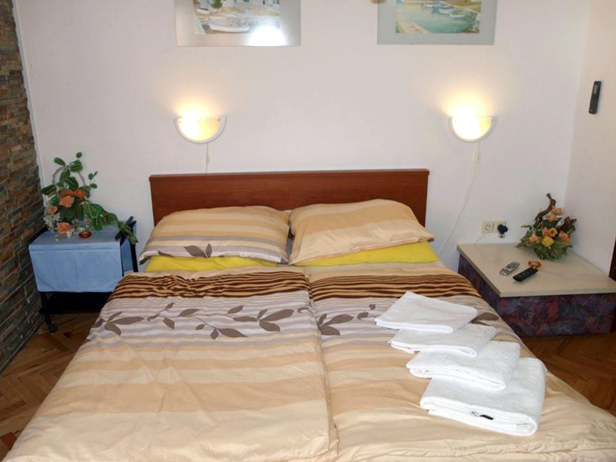 Ferienwohnung bietet Platz für 5 Gäste. Die Betten sind in Schlafzimmern, die es 2 gibt, und in Wohnzimmer, innerhalb einer Gesamtfläche von 43m2, angeordnet. Die Gäste haben einen eigenen Balkon zur Verfügung, auf der sie in warmen Sommernächten genießen können. Das Apartment bietet Meerblick. Es ist erlaubt, Speisen auf dem Gemeinschafts-Grill vorzubereiten. In der Unterkunftseinheit besteht die Möglichkeit des Mitbringens von Haustieren gegen Aufpreis. IM PREIS INBEGRIFFEN: Kurtaxe, Endreinigung, Klimatisierung, Parkplatz, Internet, Fahrrad, Kinderbett, Bügeleisen, Föhn, Sonnenschirm, Liegestühle. VERBINDLICHE ZUSÄTZLICHE KOSTEN: Aufzahlung für Kurzaufenthalte (prozentualer Zuschlag pro Nächtigungsanzahl: 30% - 1, 20% - 2, 10% - 3). UNVERBINDLICHE ZUSÄTZLICHE KOSTEN: Wäschewaschen (15,00 € Waschen), Boot (100,00 € pro Nacht), Bootsanlegeplatz (30,00 € pro Nacht), Haustiere (5,00 € pro Nacht). Die Verfügbarkeit zusätzlicher Dienstleistungen in Ihrem reservierten Termin und die Preise derselben (falls nicht aufgeführt) müssen im Voraus überprüft werden. Zusätzliche Dienstleistungen die in der Zahlungsaufforderung nicht aufgeführt sind werden direkt beim Vermieter bezahlt, angenommen der Gast nutzt auch diese. Ermäßigung auf den Grundpreis: Gratistag 14=13 (bei einem Aufenthalt von 14 Tagen oder mehr erhalten Sie einen Gratistag für den Aufenthalt bis 31.12.26).