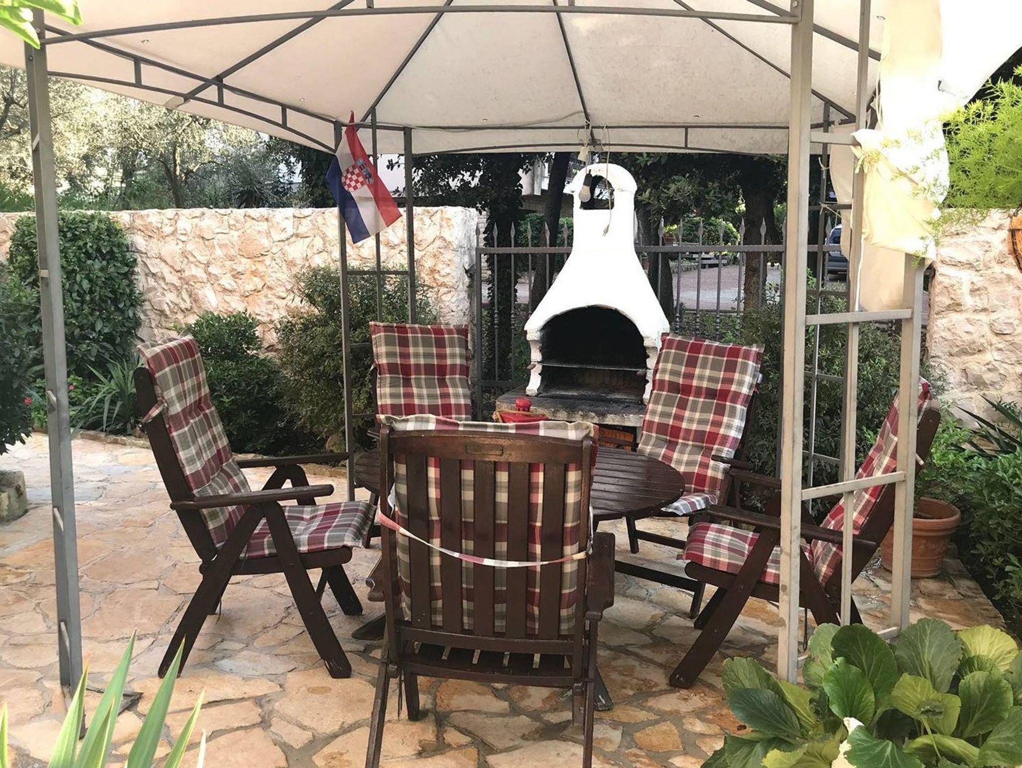 Umgebung des Objekts (Eingerichtet), Hof (350m2, Sitzbereich), Grill: gemeinsam, WiFi Internet, Wäschewaschen, Bootsanlegeplatz (Entfernung vom Objekt: 100 m, Bootsanlegeplatztyp: an der Küste), Föhn, Bügeleisen, Bügelbrett, Kinderbett