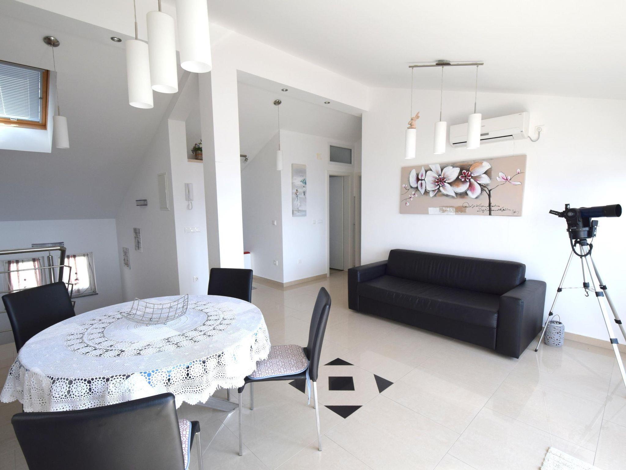Ferienwohnung bietet Platz für 4 Gäste. Die Betten sind in Schlafzimmern, die es 2 gibt, innerhalb einer Gesamtfläche von 75m2, angeordnet. Die Gäste haben eine eigene Terrasse zur Verfügung, auf der sie in warmen Sommernächten genießen können. Das Apartment bietet Meerblick. Für vollen Genuss und Entspannung gibt es einen privaten Grill für Gäste dieser Unterkunft. IM PREIS INBEGRIFFEN: Kurtaxe, Endreinigung, Klimatisierung, Parkplatz, Internet. VERBINDLICHE ZUSÄTZLICHE KOSTEN: Aufzahlung für Kurzaufenthalte (prozentualer Zuschlag pro Nächtigungsanzahl: 30% - 1, 20% - 2, 10% - 3). Die Verfügbarkeit zusätzlicher Dienstleistungen in Ihrem reservierten Termin und die Preise derselben (falls nicht aufgeführt) müssen im Voraus überprüft werden. Zusätzliche Dienstleistungen die in der Zahlungsaufforderung nicht aufgeführt sind werden direkt beim Vermieter bezahlt, angenommen der Gast nutzt auch diese.