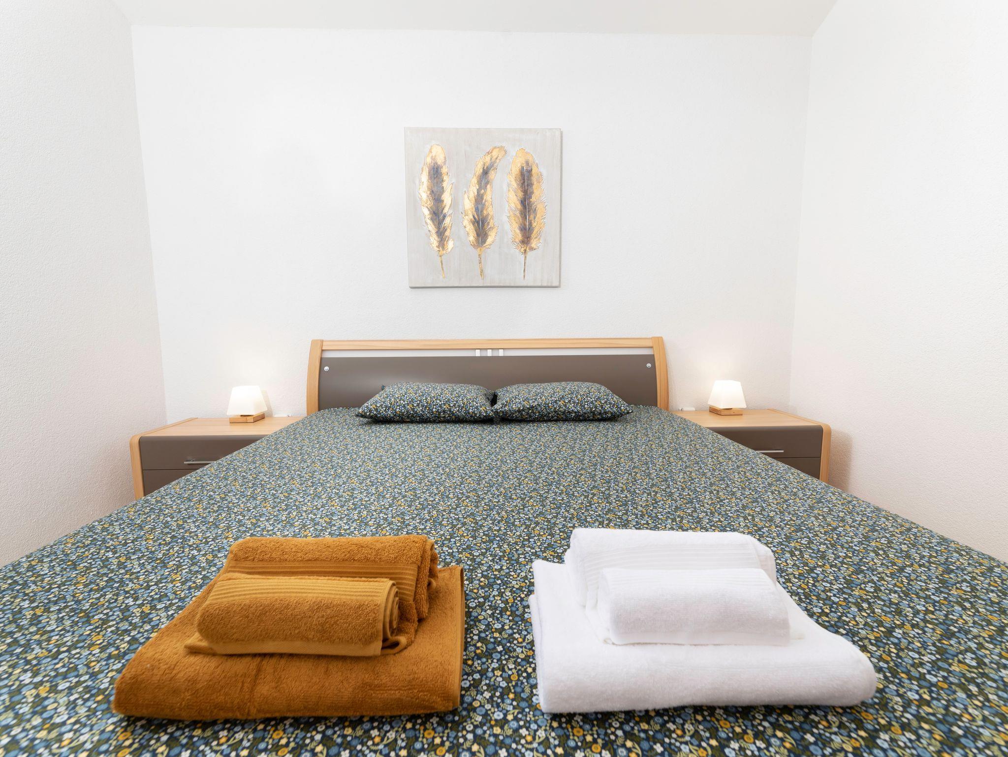 Ferienwohnung bietet Platz für 4 Gäste. Die Betten sind in Schlafzimmern, die es 2 gibt, innerhalb einer Gesamtfläche von 80m2, angeordnet. Die Gäste haben eine eigene Terrasse zur Verfügung, auf der sie in warmen Sommernächten genießen können. IM PREIS INBEGRIFFEN: Kurtaxe, Endreinigung, Klimatisierung, Parkplatz, Internet. Die Verfügbarkeit zusätzlicher Dienstleistungen in Ihrem reservierten Termin und die Preise derselben (falls nicht aufgeführt) müssen im Voraus überprüft werden. Zusätzliche Dienstleistungen die in der Zahlungsaufforderung nicht aufgeführt sind werden direkt beim Vermieter bezahlt, angenommen der Gast nutzt auch diese.