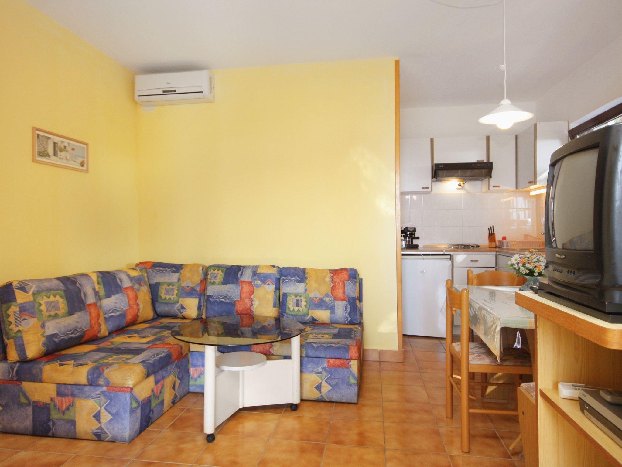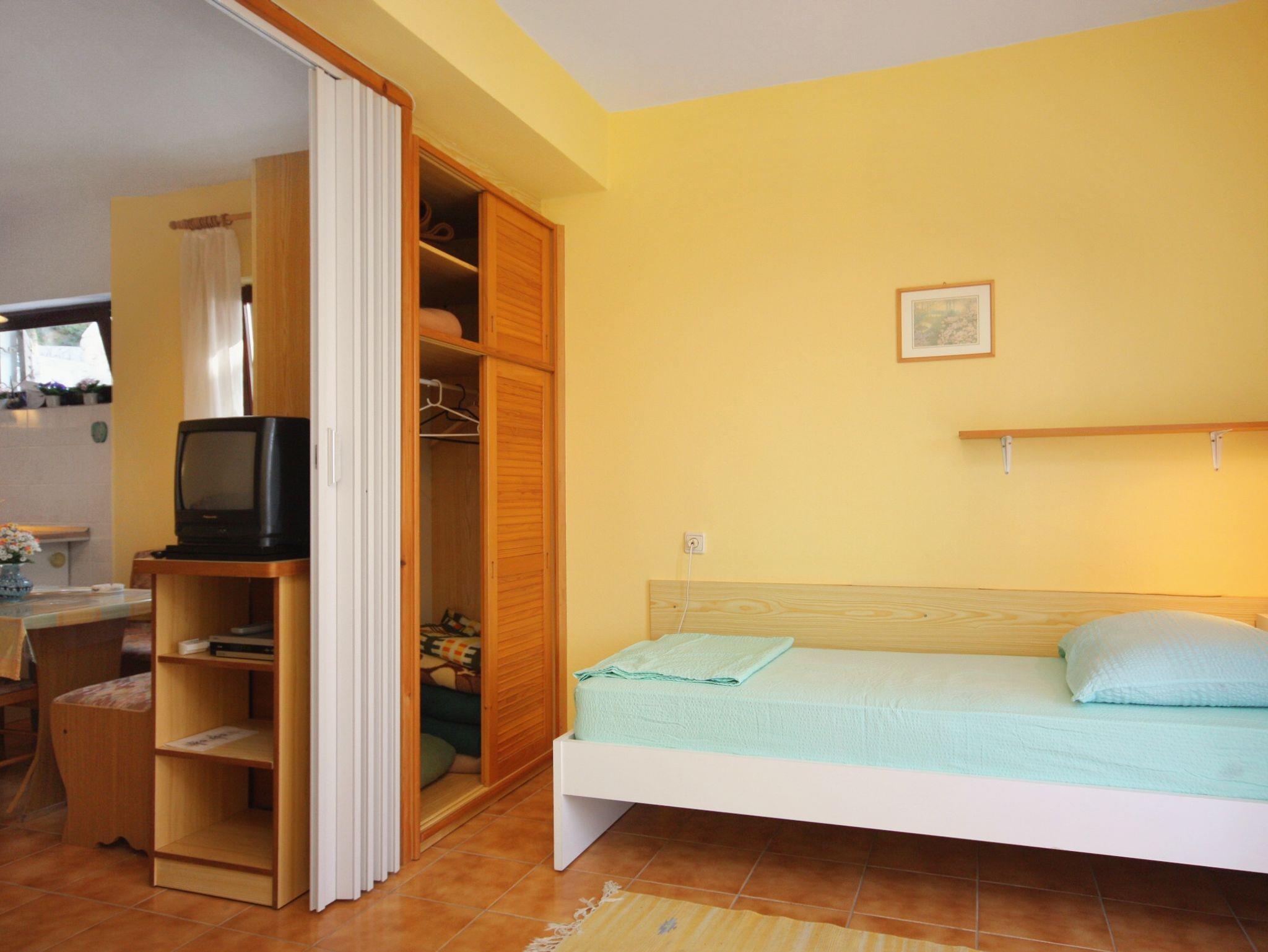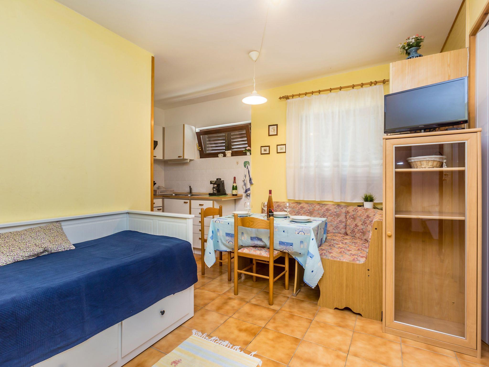 Studio bietet Platz für 4 Gäste. Die Betten sind in Schlafzimmern, die es 1 gibt, und in Wohnzimmer, innerhalb einer Gesamtfläche von 28m2, angeordnet. Die Gäste haben eine eigene Terrasse zur Verfügung, auf der sie in warmen Sommernächten genießen können. Das Studio-Apartment bietet Meerblick. Es ist erlaubt, Speisen auf dem Gemeinschafts-Grill vorzubereiten. In der Unterkunftseinheit besteht die Möglichkeit des Mitbringens von Haustieren gegen Aufpreis. IM PREIS INBEGRIFFEN: Kurtaxe, Endreinigung, Klimatisierung, Parkplatz, Internet, Wäschewaschen, Kinderbett, Zusatzbett, Bügeleisen, Bügelbrett, Föhn, Sonnenschirm, Liegestühle. VERBINDLICHE ZUSÄTZLICHE KOSTEN: Aufzahlung für Kurzaufenthalte (prozentualer Zuschlag pro Nächtigungsanzahl: 30% - 1, 20% - 2, 10% - 3). UNVERBINDLICHE ZUSÄTZLICHE KOSTEN: Haustiere (5,00 € pro Nacht), Fahrrad (12,00 € täglich (pro Stück)). Die Verfügbarkeit zusätzlicher Dienstleistungen in Ihrem reservierten Termin und die Preise derselben (falls nicht aufgeführt) müssen im Voraus überprüft werden. Zusätzliche Dienstleistungen die in der Zahlungsaufforderung nicht aufgeführt sind werden direkt beim Vermieter bezahlt, angenommen der Gast nutzt auch diese. Ermäßigung auf den Grundpreis: Gratistag 21=19 (bei einem Aufenthalt von 21 Tagen oder mehr erhalten Sie 2 Gratistage für den Aufenthalt bis 31.12.26).