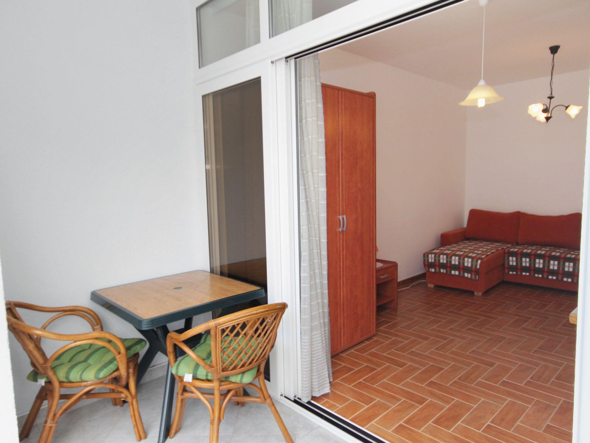 Studio bietet Platz für 2 Gäste. Die Betten sind in Wohnzimmer, innerhalb einer Gesamtfläche von 19m2, angeordnet. Die Gäste haben eine eigene Terrasse zur Verfügung, auf der sie in warmen Sommernächten genießen können. Das Studio-Apartment bietet Meerblick. Es ist erlaubt, Speisen auf dem Gemeinschafts-Grill vorzubereiten. IM PREIS INBEGRIFFEN: Kurtaxe, Endreinigung, Klimatisierung, Parkplatz, Internet. VERBINDLICHE ZUSÄTZLICHE KOSTEN: Aufzahlung für Kurzaufenthalte (prozentualer Zuschlag pro Nächtigungsanzahl: 30% - 1, 20% - 2, 10% - 3). UNVERBINDLICHE ZUSÄTZLICHE KOSTEN: Zusatzbett (5,00 € pro Nacht). Die Verfügbarkeit zusätzlicher Dienstleistungen in Ihrem reservierten Termin und die Preise derselben (falls nicht aufgeführt) müssen im Voraus überprüft werden. Zusätzliche Dienstleistungen die in der Zahlungsaufforderung nicht aufgeführt sind werden direkt beim Vermieter bezahlt, angenommen der Gast nutzt auch diese.