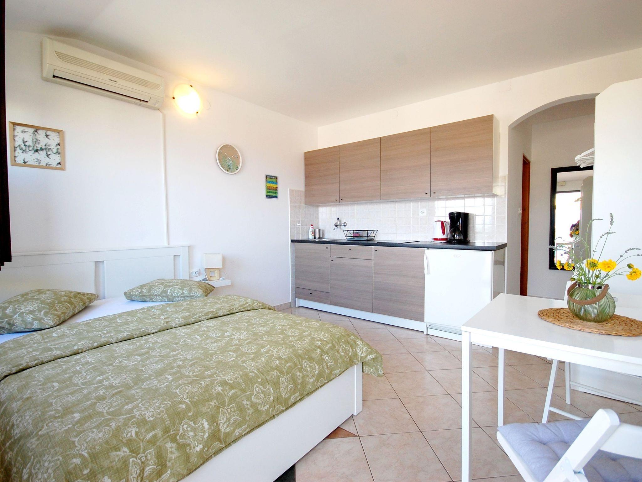 Studio bietet Platz für 2 Gäste. Die Betten sind in Schlafzimmern, die es 1 gibt, innerhalb einer Gesamtfläche von 23m2, angeordnet. Die Gäste haben einen eigenen Balkon zur Verfügung, auf der sie in warmen Sommernächten genießen können. Das Studio-Apartment bietet Meerblick. Es ist erlaubt, Speisen auf dem Gemeinschafts-Grill vorzubereiten. IM PREIS INBEGRIFFEN: Kurtaxe, Endreinigung, Klimatisierung, Parkplatz, Internet. Die Verfügbarkeit zusätzlicher Dienstleistungen in Ihrem reservierten Termin und die Preise derselben (falls nicht aufgeführt) müssen im Voraus überprüft werden. Zusätzliche Dienstleistungen die in der Zahlungsaufforderung nicht aufgeführt sind werden direkt beim Vermieter bezahlt, angenommen der Gast nutzt auch diese.