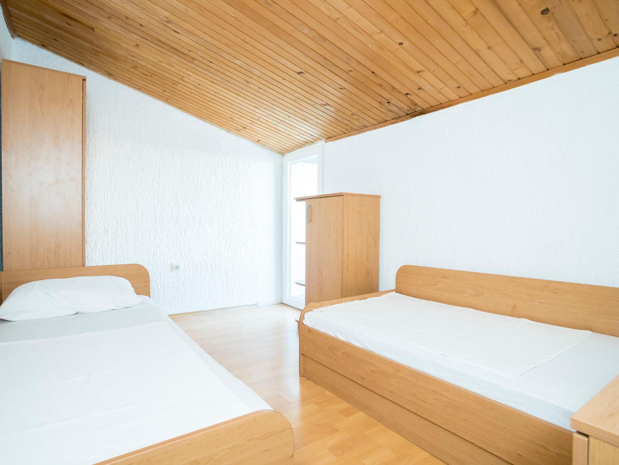 Ferienwohnung bietet Platz für 5 Gäste. Die Betten sind in Schlafzimmern, die es 2 gibt, und in Wohnzimmer, innerhalb einer Gesamtfläche von 45m2, angeordnet. Die Gäste haben einen eigenen Balkon zur Verfügung, auf der sie in warmen Sommernächten genießen können. Das Apartment bietet Meerblick. Es ist erlaubt, Speisen auf dem Gemeinschafts-Grill vorzubereiten. In der Unterkunftseinheit besteht die Möglichkeit des Mitbringens von Haustieren gegen Aufpreis. IM PREIS INBEGRIFFEN: Kurtaxe, Endreinigung, Klimatisierung, Parkplatz, Internet. VERBINDLICHE ZUSÄTZLICHE KOSTEN: Aufzahlung für Kurzaufenthalte (prozentualer Zuschlag pro Nächtigungsanzahl: 30% - 1, 20% - 2, 10% - 3). UNVERBINDLICHE ZUSÄTZLICHE KOSTEN: Haustiere (10,00 € pro Nacht). Die Verfügbarkeit zusätzlicher Dienstleistungen in Ihrem reservierten Termin und die Preise derselben (falls nicht aufgeführt) müssen im Voraus überprüft werden. Zusätzliche Dienstleistungen die in der Zahlungsaufforderung nicht aufgeführt sind werden direkt beim Vermieter bezahlt, angenommen der Gast nutzt auch diese.