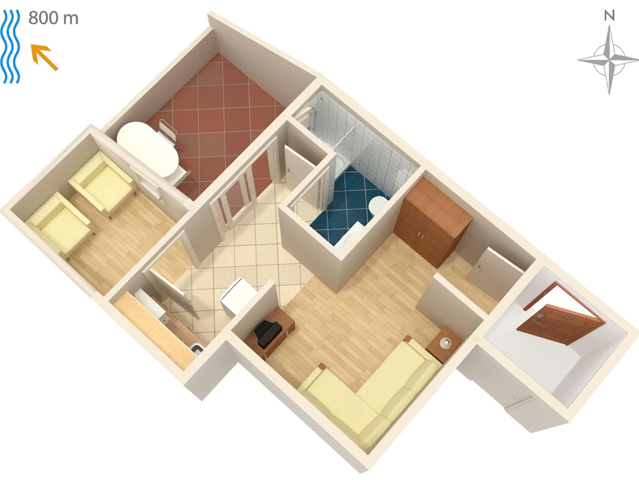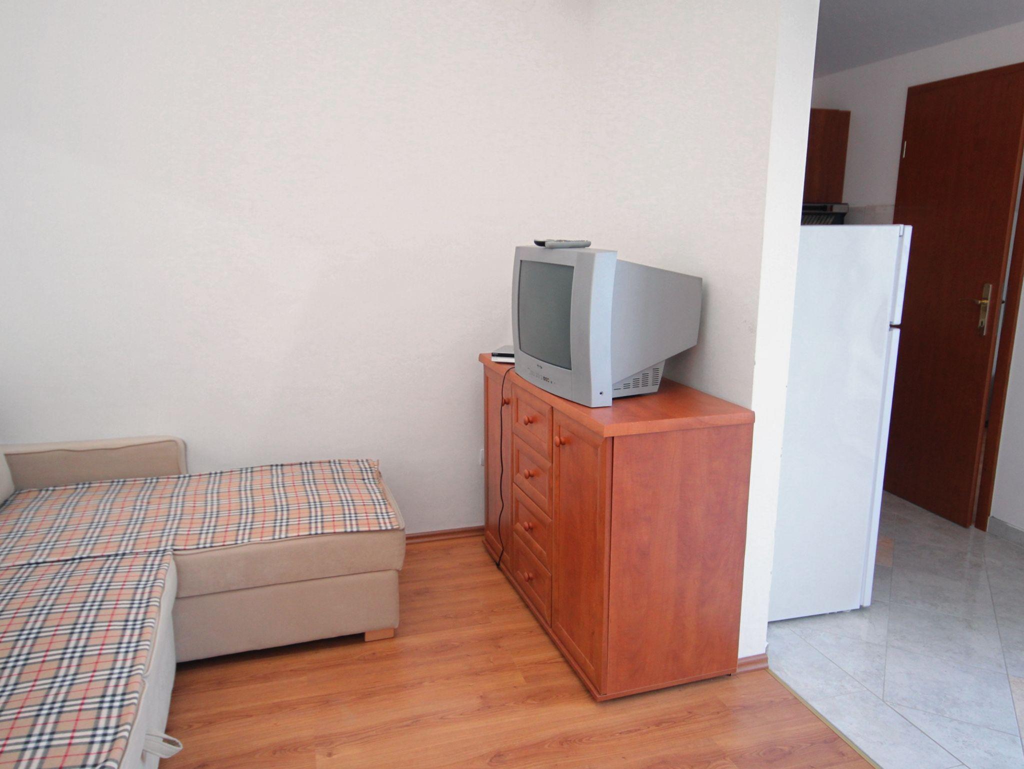 Ferienwohnung bietet Platz für 2 Gäste. Die Betten sind in Schlafzimmern, die es 1 gibt, und in Wohnzimmer, innerhalb einer Gesamtfläche von 23m2, angeordnet. Die Gäste haben eine eigene Terrasse zur Verfügung, auf der sie in warmen Sommernächten genießen können. Das Apartment bietet Meerblick. Es ist erlaubt, Speisen auf dem Gemeinschafts-Grill vorzubereiten. IM PREIS INBEGRIFFEN: Kurtaxe, Endreinigung, Klimatisierung, Parkplatz, Internet. VERBINDLICHE ZUSÄTZLICHE KOSTEN: Aufzahlung für Kurzaufenthalte (prozentualer Zuschlag pro Nächtigungsanzahl: 30% - 1, 20% - 2, 10% - 3). UNVERBINDLICHE ZUSÄTZLICHE KOSTEN: Zusatzbett (5,00 € pro Nacht). Die Verfügbarkeit zusätzlicher Dienstleistungen in Ihrem reservierten Termin und die Preise derselben (falls nicht aufgeführt) müssen im Voraus überprüft werden. Zusätzliche Dienstleistungen die in der Zahlungsaufforderung nicht aufgeführt sind werden direkt beim Vermieter bezahlt, angenommen der Gast nutzt auch diese.