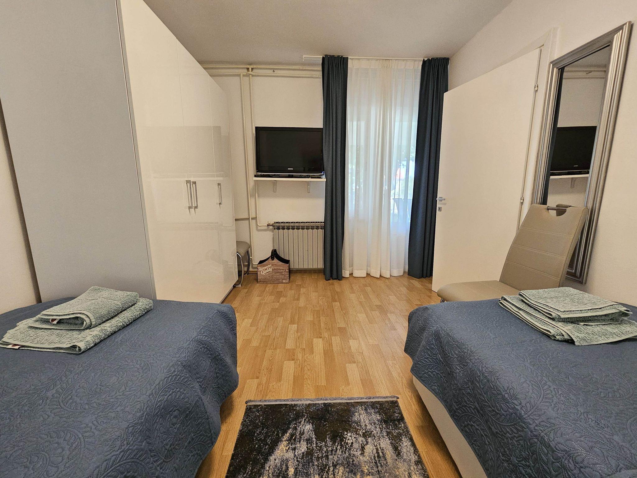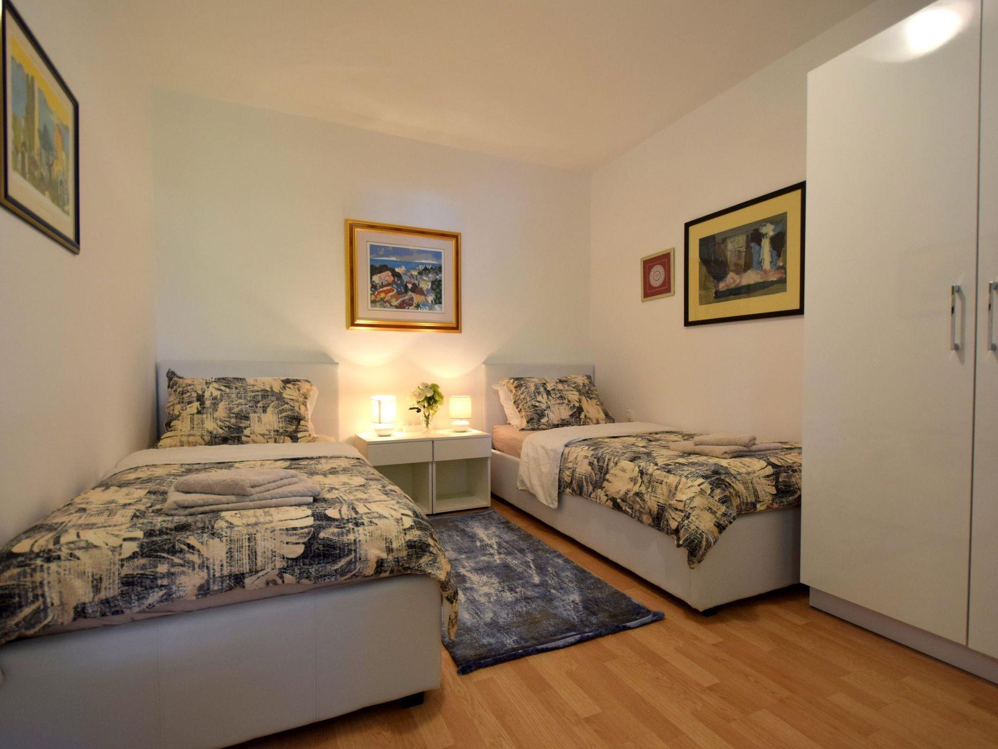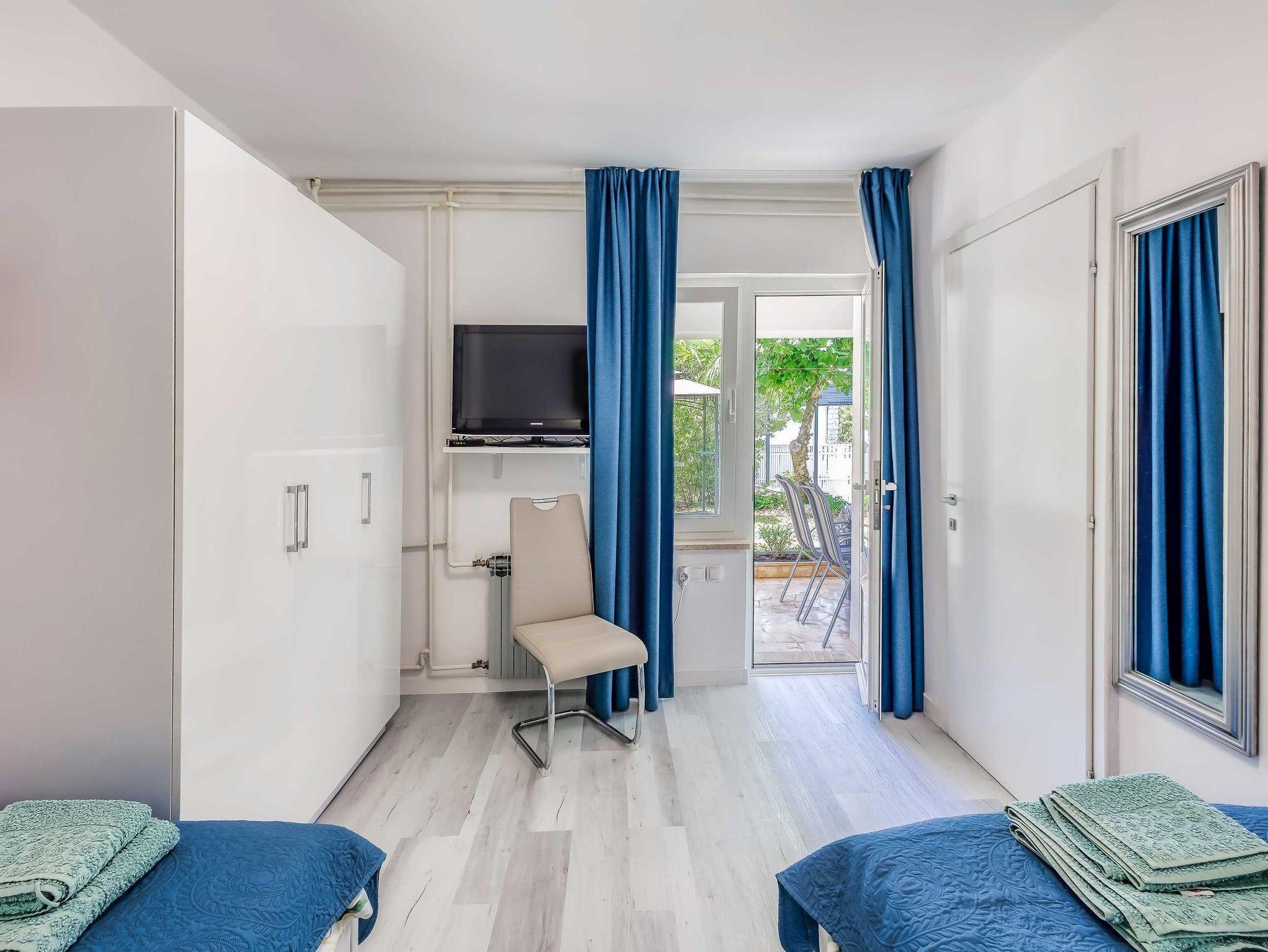 Ferienwohnung bietet Platz für 4 Gäste. Die Betten sind in Schlafzimmern, die es 2 gibt, innerhalb einer Gesamtfläche von 47m2, angeordnet. Die Gäste haben eine eigene Terrasse zur Verfügung, auf der sie in warmen Sommernächten genießen können. Es ist erlaubt, Speisen auf dem Gemeinschafts-Grill vorzubereiten. In der Unterkunftseinheit besteht die Möglichkeit des Mitbringens von Haustieren gegen Aufpreis. IM PREIS INBEGRIFFEN: Kurtaxe, Endreinigung, Klimatisierung, Zentralheizung, Parkplatz, Internet, tragbarer Grill. VERBINDLICHE ZUSÄTZLICHE KOSTEN: Aufzahlung für Kurzaufenthalte (prozentualer Zuschlag pro Nächtigungsanzahl: 30% - 1, 20% - 2, 10% - 3). UNVERBINDLICHE ZUSÄTZLICHE KOSTEN: Haustiere (10,00 € pro Nacht). Die Verfügbarkeit zusätzlicher Dienstleistungen in Ihrem reservierten Termin und die Preise derselben (falls nicht aufgeführt) müssen im Voraus überprüft werden. Zusätzliche Dienstleistungen die in der Zahlungsaufforderung nicht aufgeführt sind werden direkt beim Vermieter bezahlt, angenommen der Gast nutzt auch diese.
