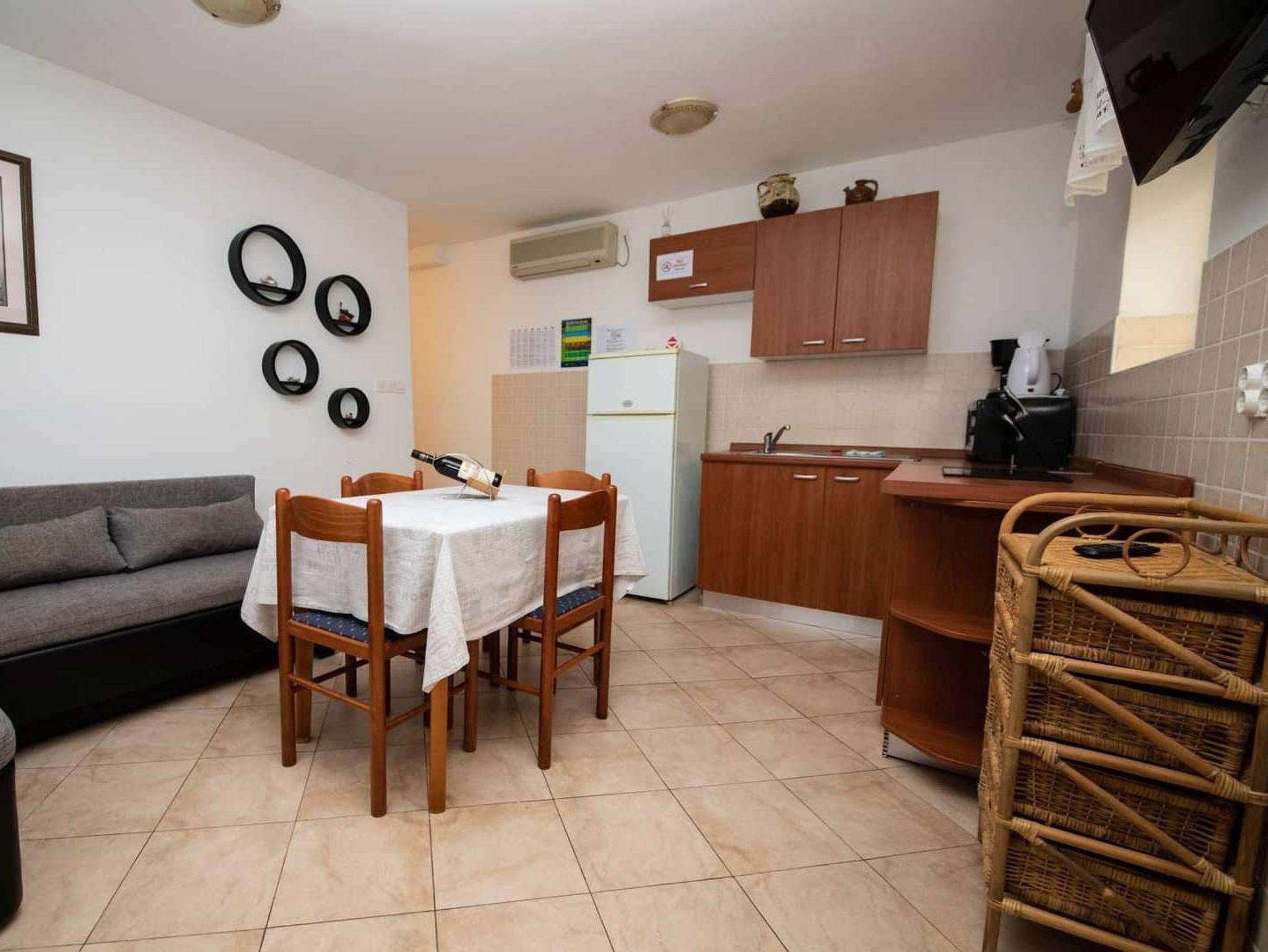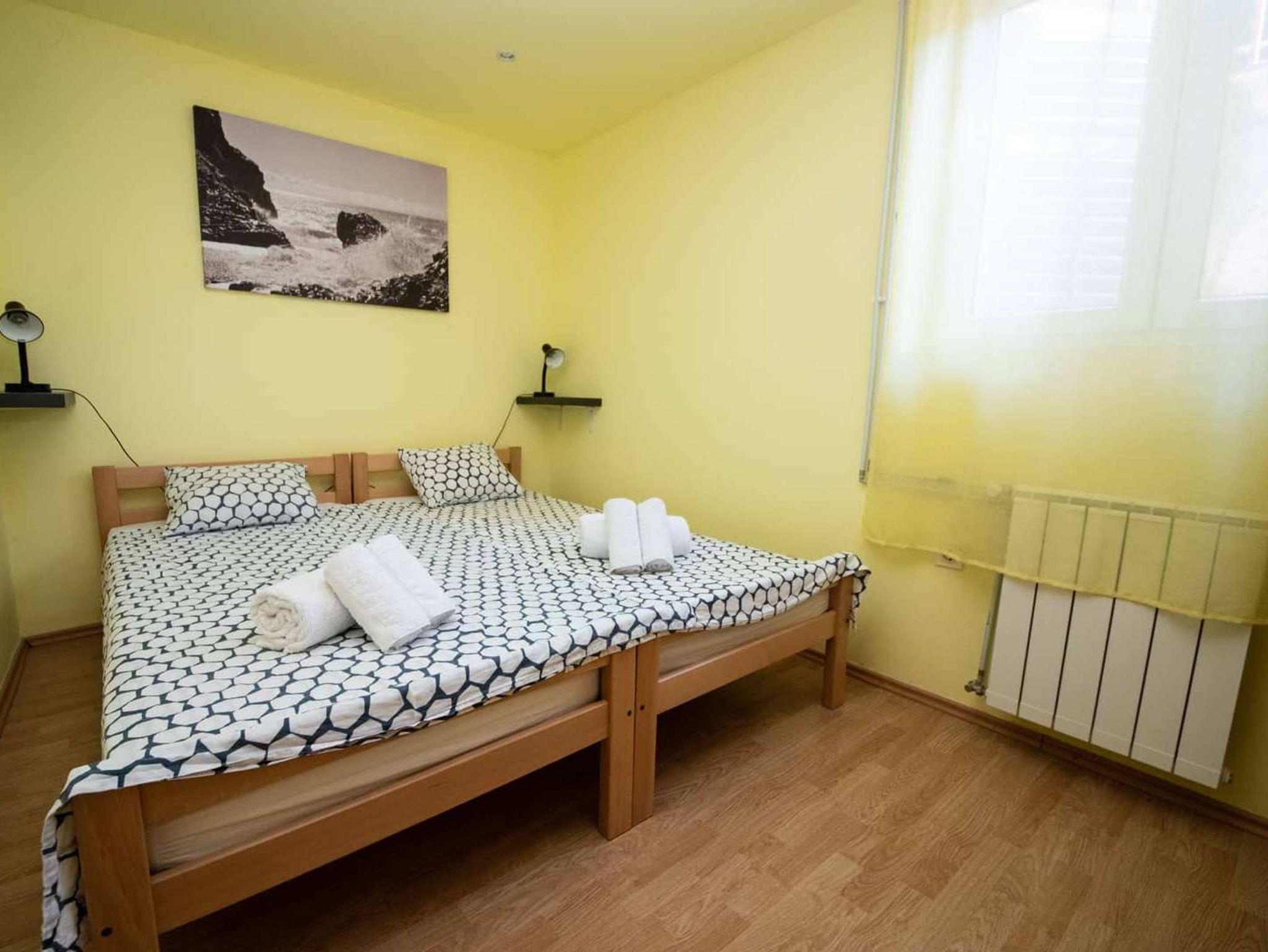 Ferienwohnung bietet Platz für 6 Gäste. Die Betten sind in Schlafzimmern, die es 2 gibt, und in Wohnzimmer, innerhalb einer Gesamtfläche von 47m2, angeordnet. Die Gäste haben einen eigenen Balkon zur Verfügung, auf der sie in warmen Sommernächten genießen können. Das Apartment bietet Meerblick. Für vollen Genuss und Entspannung gibt es einen privaten Grill für Gäste dieser Unterkunft. Während ihres Aufenthalts können Gäste das gemeinsam zur Nutzung stehende Schwimmbad benutzen. IM PREIS INBEGRIFFEN: Kurtaxe, Endreinigung, Klimatisierung, Pool, Parkplatz, Internet. Die Verfügbarkeit zusätzlicher Dienstleistungen in Ihrem reservierten Termin und die Preise derselben (falls nicht aufgeführt) müssen im Voraus überprüft werden. Zusätzliche Dienstleistungen die in der Zahlungsaufforderung nicht aufgeführt sind werden direkt beim Vermieter bezahlt, angenommen der Gast nutzt auch diese.