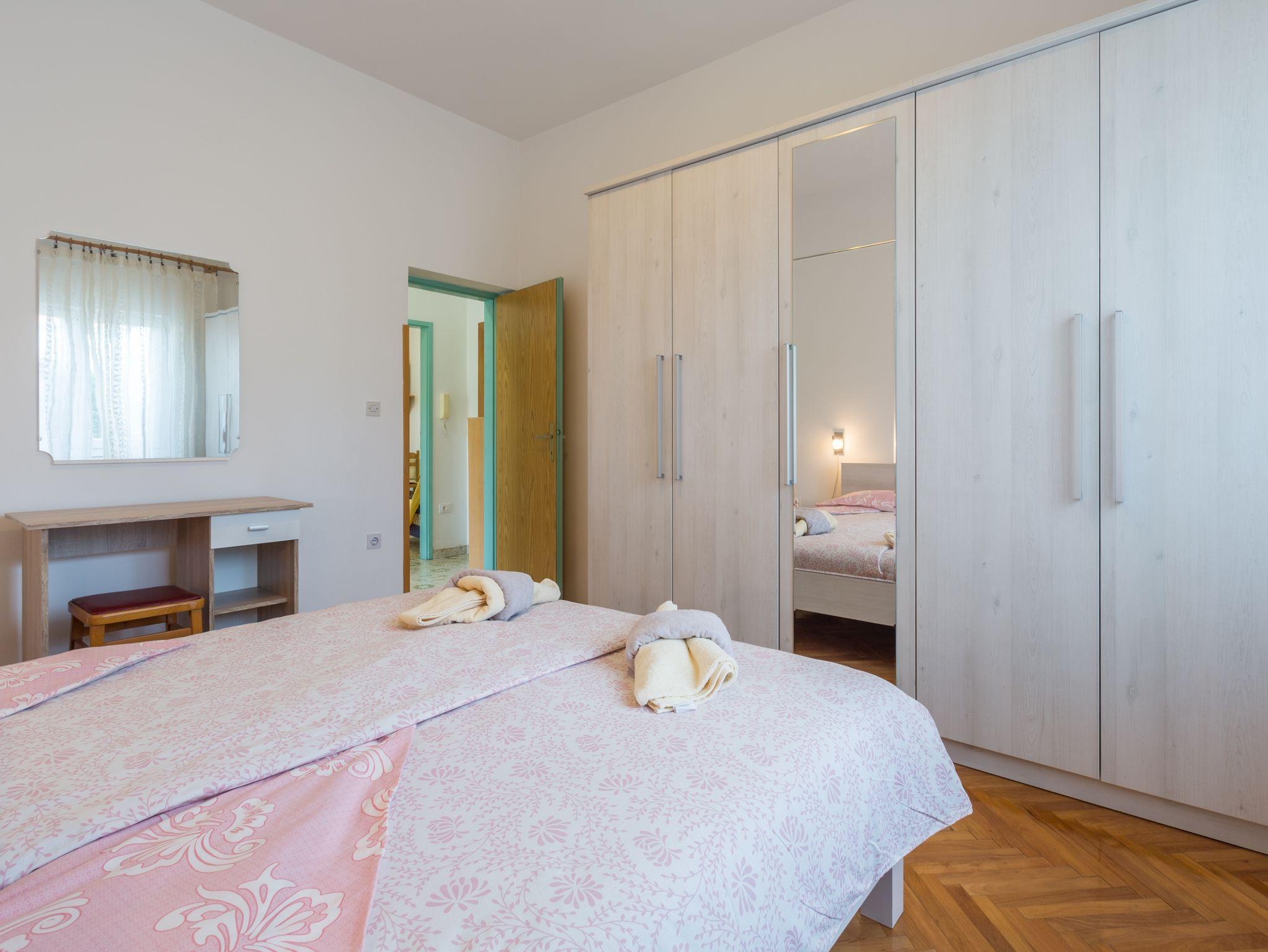 Ferienwohnung bietet Platz für 2 Gäste. Die Betten sind in Schlafzimmern, die es 1 gibt, innerhalb einer Gesamtfläche von 36m2, angeordnet. Die Gäste haben eine eigene Terrasse zur Verfügung, auf der sie in warmen Sommernächten genießen können. Es ist erlaubt, Speisen auf dem Gemeinschafts-Grill vorzubereiten. In der Unterkunftseinheit besteht die Möglichkeit des Mitbringens von Haustieren gegen Aufpreis. IM PREIS INBEGRIFFEN: Kurtaxe, Endreinigung, Klimatisierung, Parkplatz, Internet, Wäschewaschen, Kinderbett, Bügeleisen, Bügelbrett, Föhn. VERBINDLICHE ZUSÄTZLICHE KOSTEN: Aufzahlung für Kurzaufenthalte (prozentualer Zuschlag pro Nächtigungsanzahl: 30% - 1, 20% - 2, 10% - 3). UNVERBINDLICHE ZUSÄTZLICHE KOSTEN: Haustiere (8,00 € pro Nacht). Die Verfügbarkeit zusätzlicher Dienstleistungen in Ihrem reservierten Termin und die Preise derselben (falls nicht aufgeführt) müssen im Voraus überprüft werden. Zusätzliche Dienstleistungen die in der Zahlungsaufforderung nicht aufgeführt sind werden direkt beim Vermieter bezahlt, angenommen der Gast nutzt auch diese.