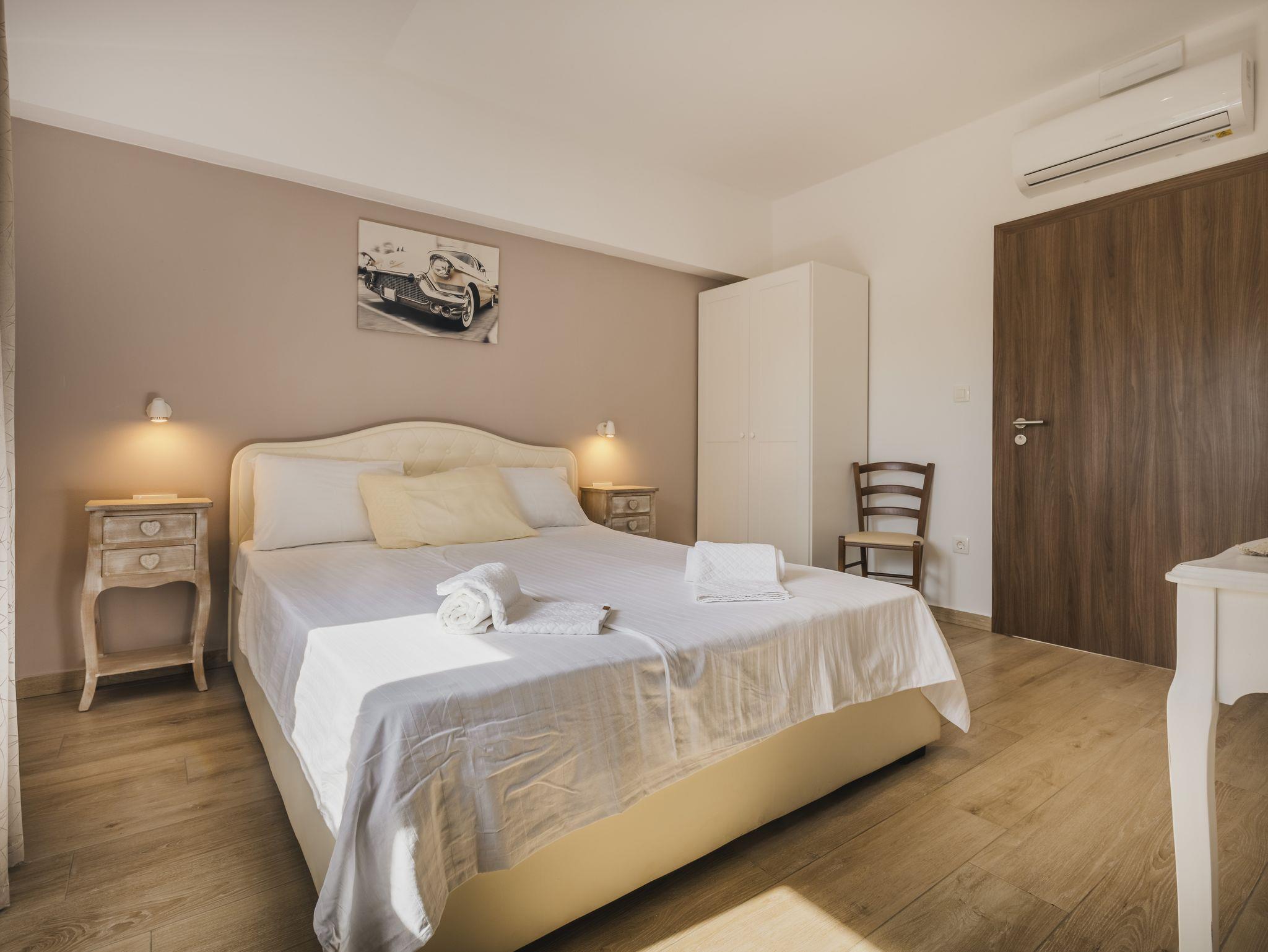 Zimmer bietet Platz für 2 Gäste. Die Betten sind in Schlafzimmern, die es 1 gibt, innerhalb einer Gesamtfläche von 22m2, angeordnet. In der Unterkunftseinheit besteht die Möglichkeit des Mitbringens von Haustieren gegen Aufpreis. Die reservierte Unterkunftseinheit hat keinen Balkon und keine Terrasse. Die reservierte Unterkunftseinheit ist ein Zimmer mit eigenem Badezimmer ohne die Möglichkeit der Nutzung einer Küche. IM PREIS INBEGRIFFEN: Kurtaxe, Endreinigung, Klimatisierung, Parkplatz, Internet, Kinderbett, Föhn. UNVERBINDLICHE ZUSÄTZLICHE KOSTEN: Frühstück (10,00 €, 50% Nachlass für Kinder zwischen 4 und 12 Jahren, Kinder bis 4 Jahre sind frei.), Haustiere (15,00 € pro Nacht), Zusatzbett (15,00 € pro Nacht). Die Verfügbarkeit zusätzlicher Dienstleistungen in Ihrem reservierten Termin und die Preise derselben (falls nicht aufgeführt) müssen im Voraus überprüft werden. Zusätzliche Dienstleistungen die in der Zahlungsaufforderung nicht aufgeführt sind werden direkt beim Vermieter bezahlt, angenommen der Gast nutzt auch diese.