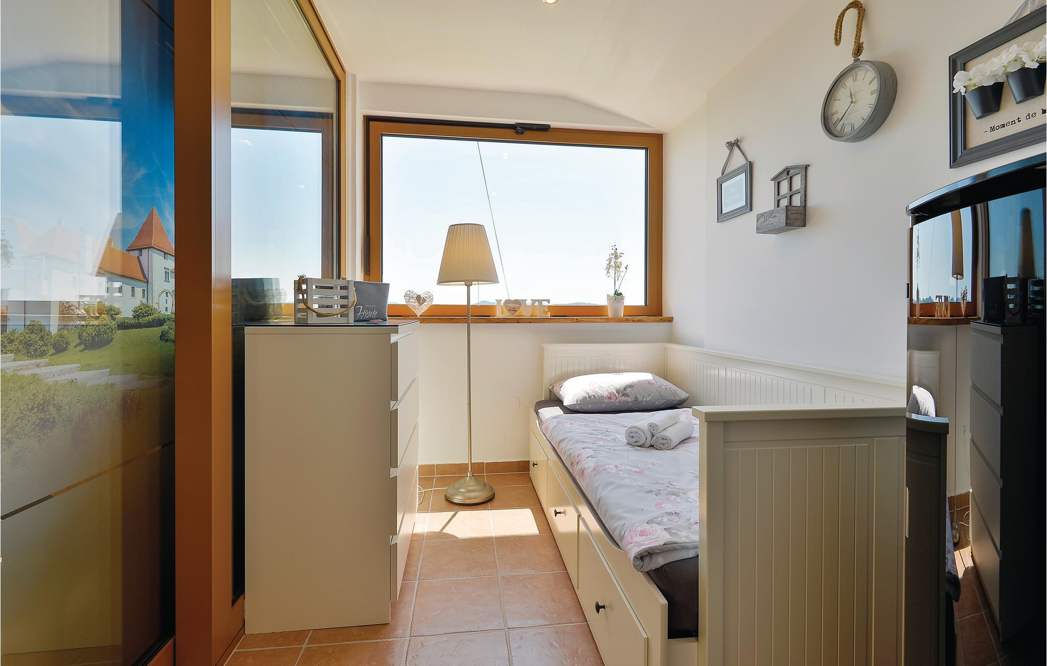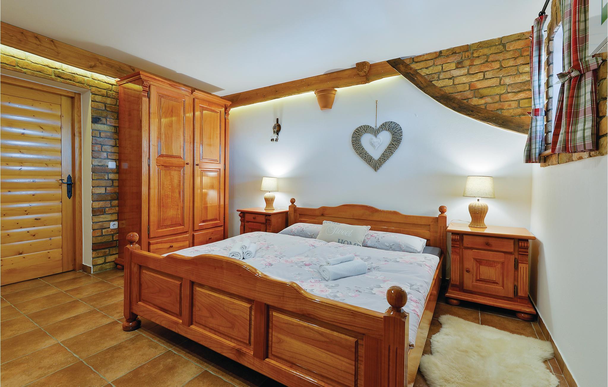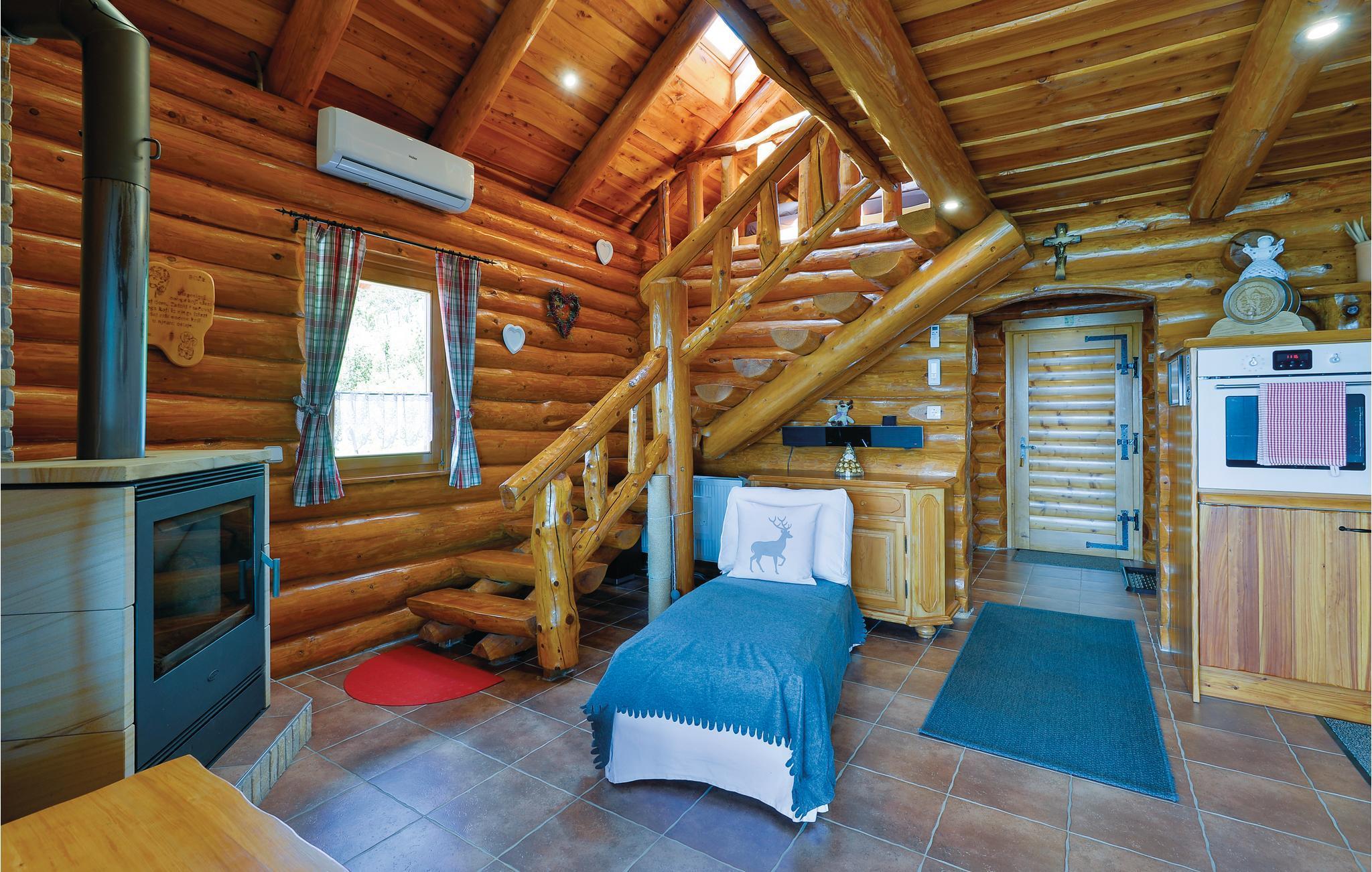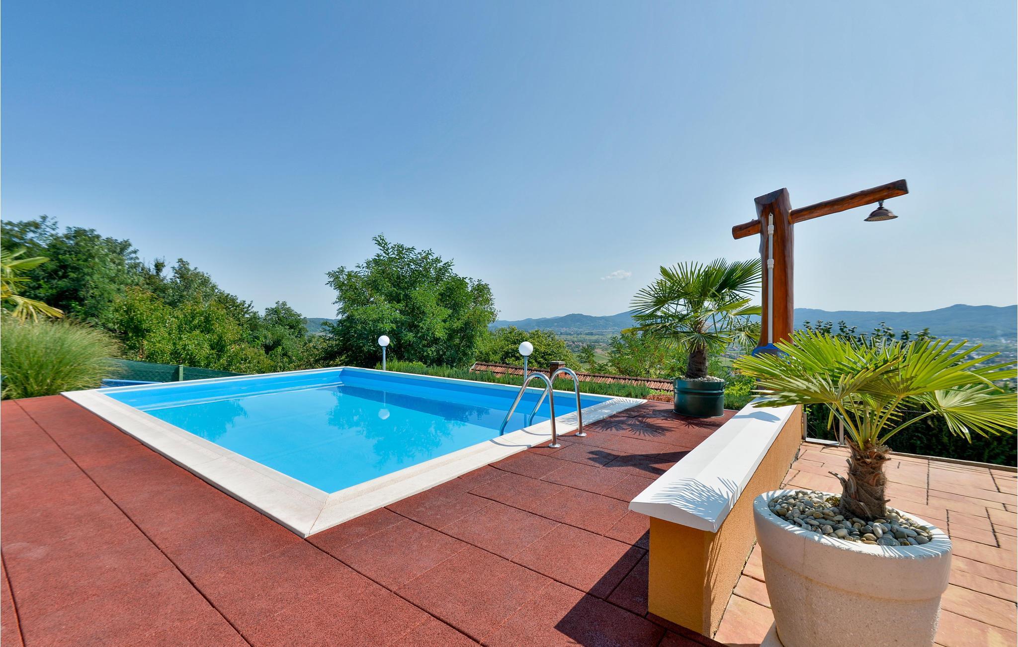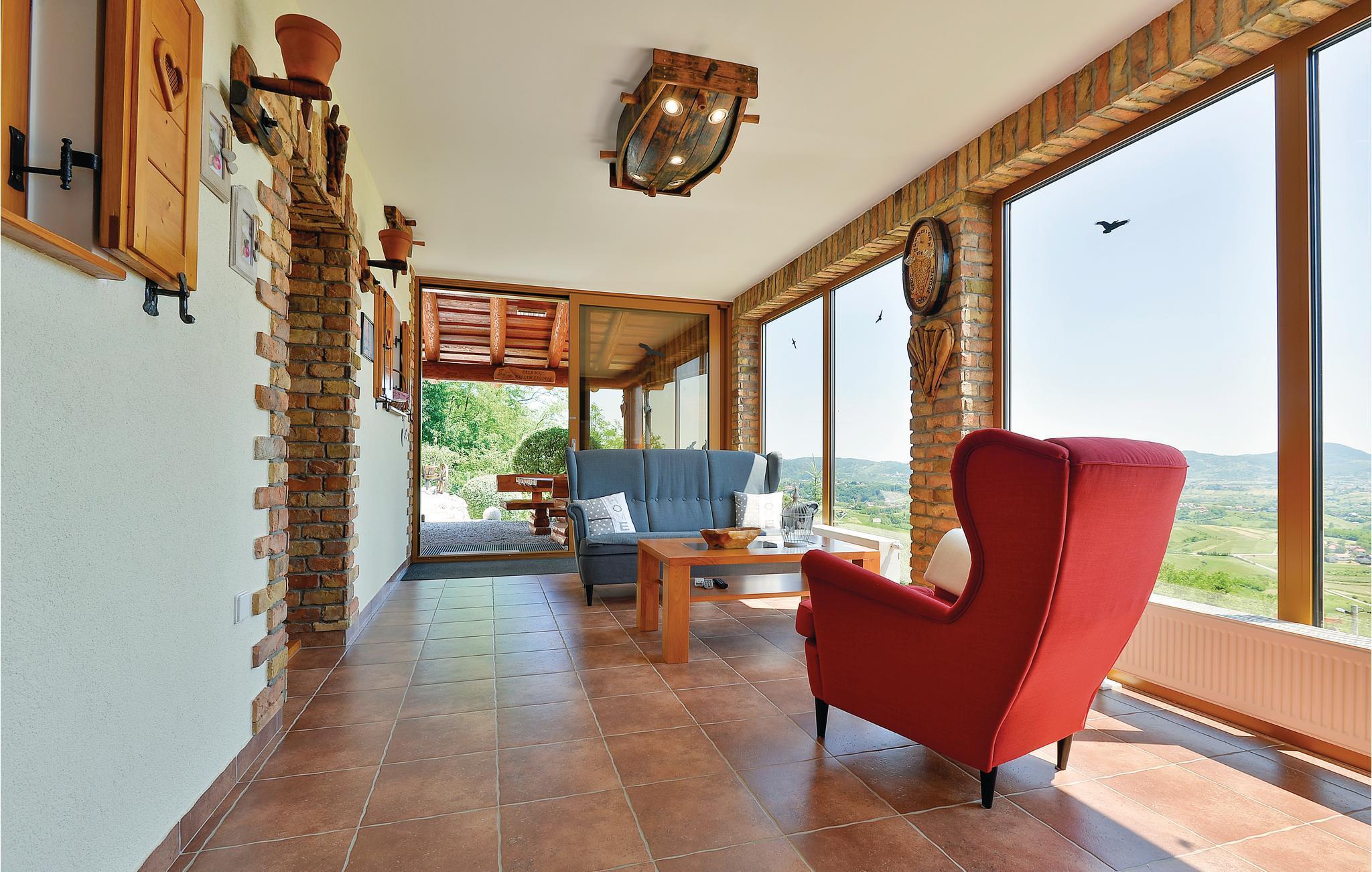 Dette feriehus er bygget af træ, ligger på et bjerg, med en fantastisk udsigt over dalen og de omliggende bjerge. Slap af på jeres altan og lad jer fortrylle af det fantastiske panorama. Foran huset er der en skøn pool med solterrasse og whirlpool og desuden er der et lille anneks med sauna og brusebad. Bag huset er der en overdækket terrasse med grill og sommerkøkken. Lær Varaždins rige historie at kende, med barokpaladser og romantiske små stræder. I nærheden ligger Varaždinske Toplice med sine kurbade, samt mange former for sports- og fritidsaktiviteter. Mod bestilling og betaling kan ejer sørge for catering. Laveste loftshøjde pga skrå vægge er 50 cm i siden.