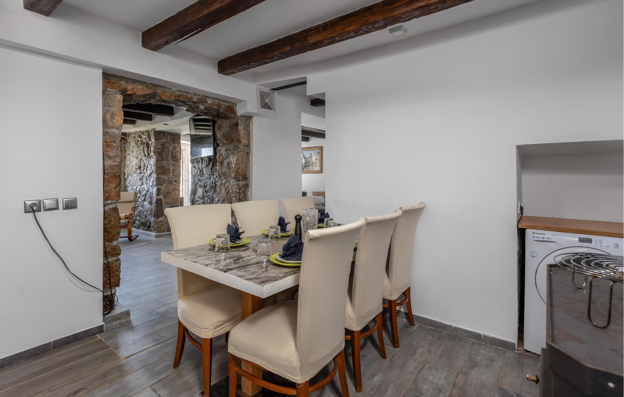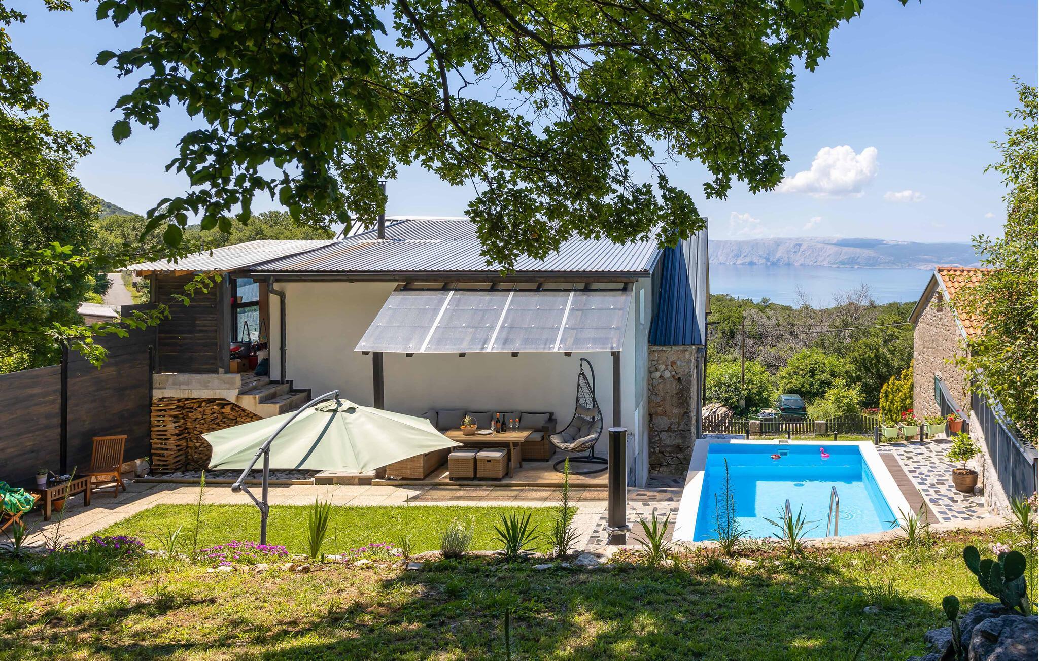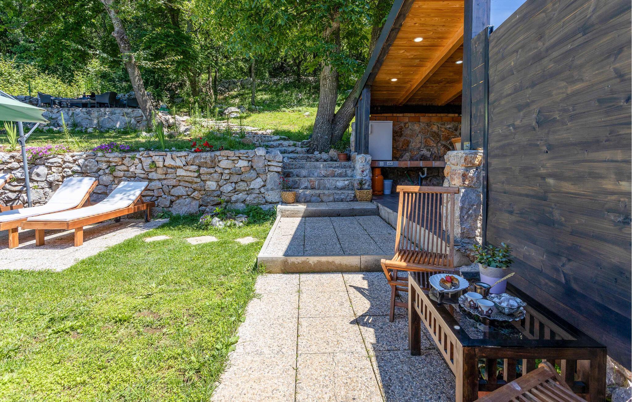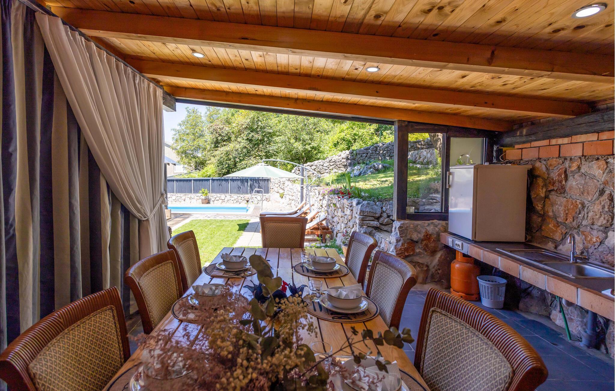 Nyd den private pool, som er omgivet af en stor terrasse og frodige grønne områder. Slå jer ned på de komfortable liggestole og mærk den varme kroatiske sol. Tag en forfriskende dukkert i poolen eller slap af i det hyggelige udendørs opholdsområde, mens I nyder den friske luft, naturens stilhed og udsigten over det omkringliggende bjerglandskab.