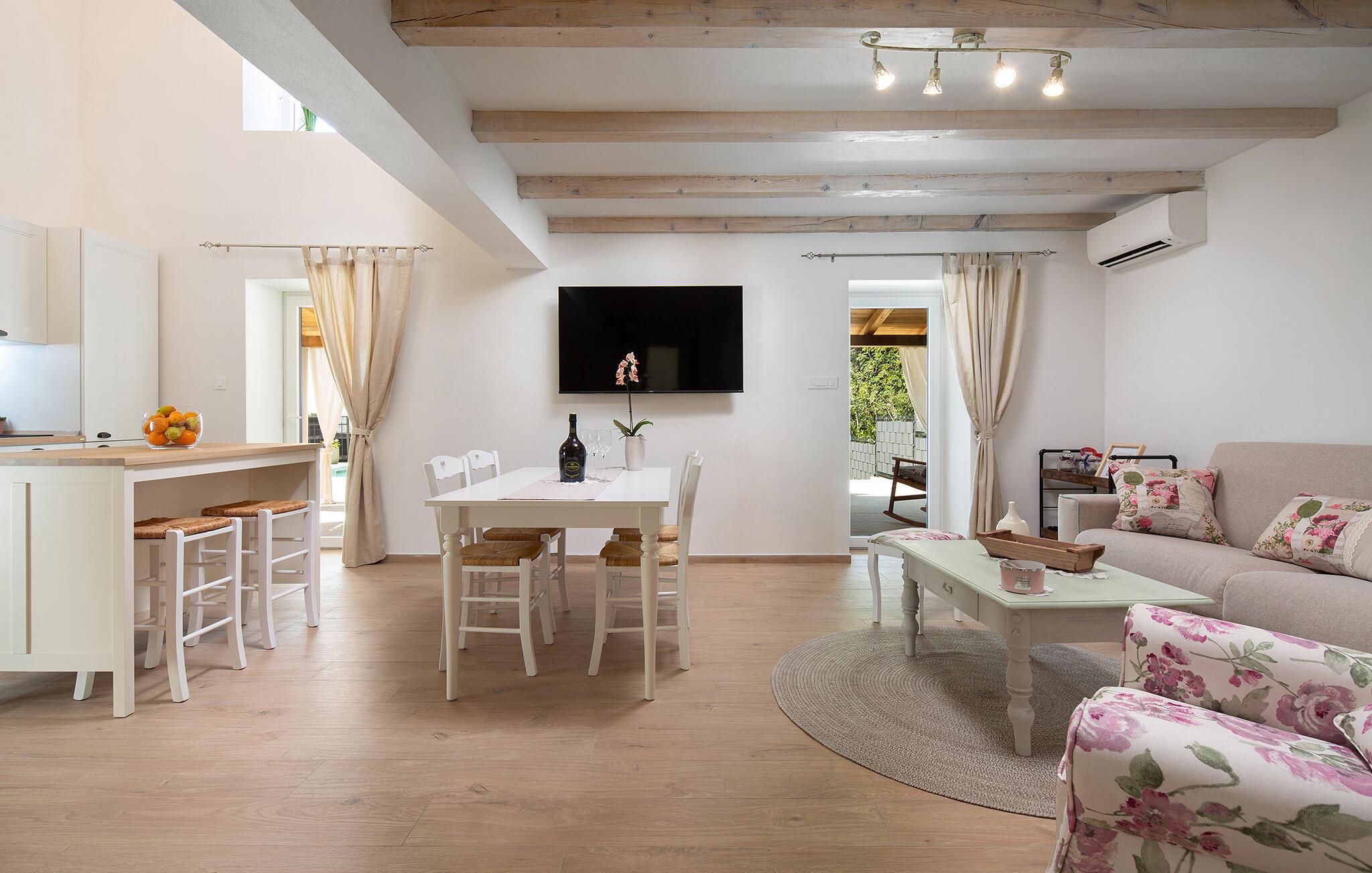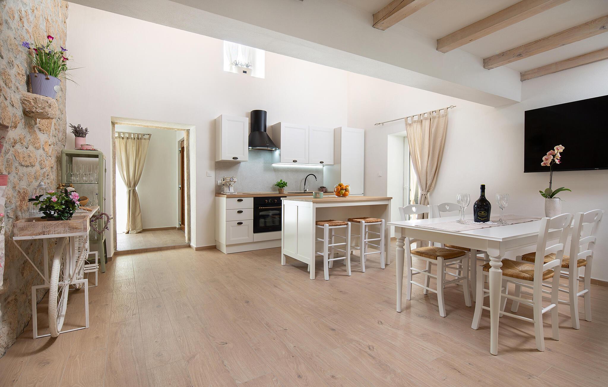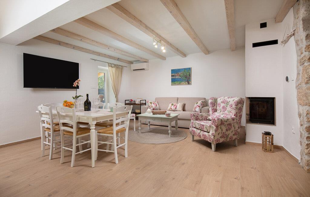 Dette smukke naturstenshus forkæler jer med hyggelige og komfortabelt indrettede værelser. Glæd jer til at lave mad sammen i det moderne køkken og servere dagens måltider ved det stilfulde spisebord. Stream en god serie og sæt jer godt til rette i den hyggelige sofa efter en lang dag.