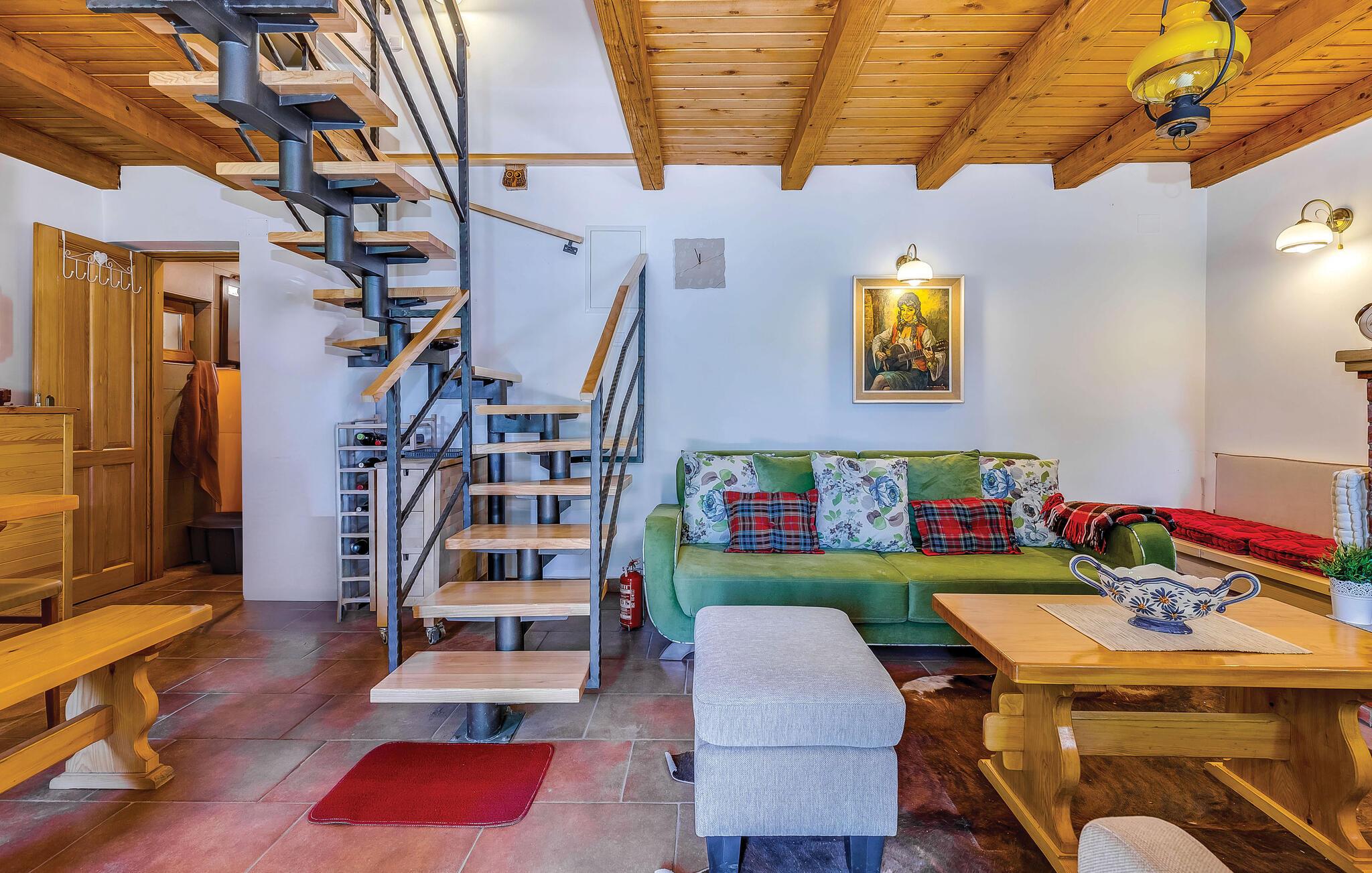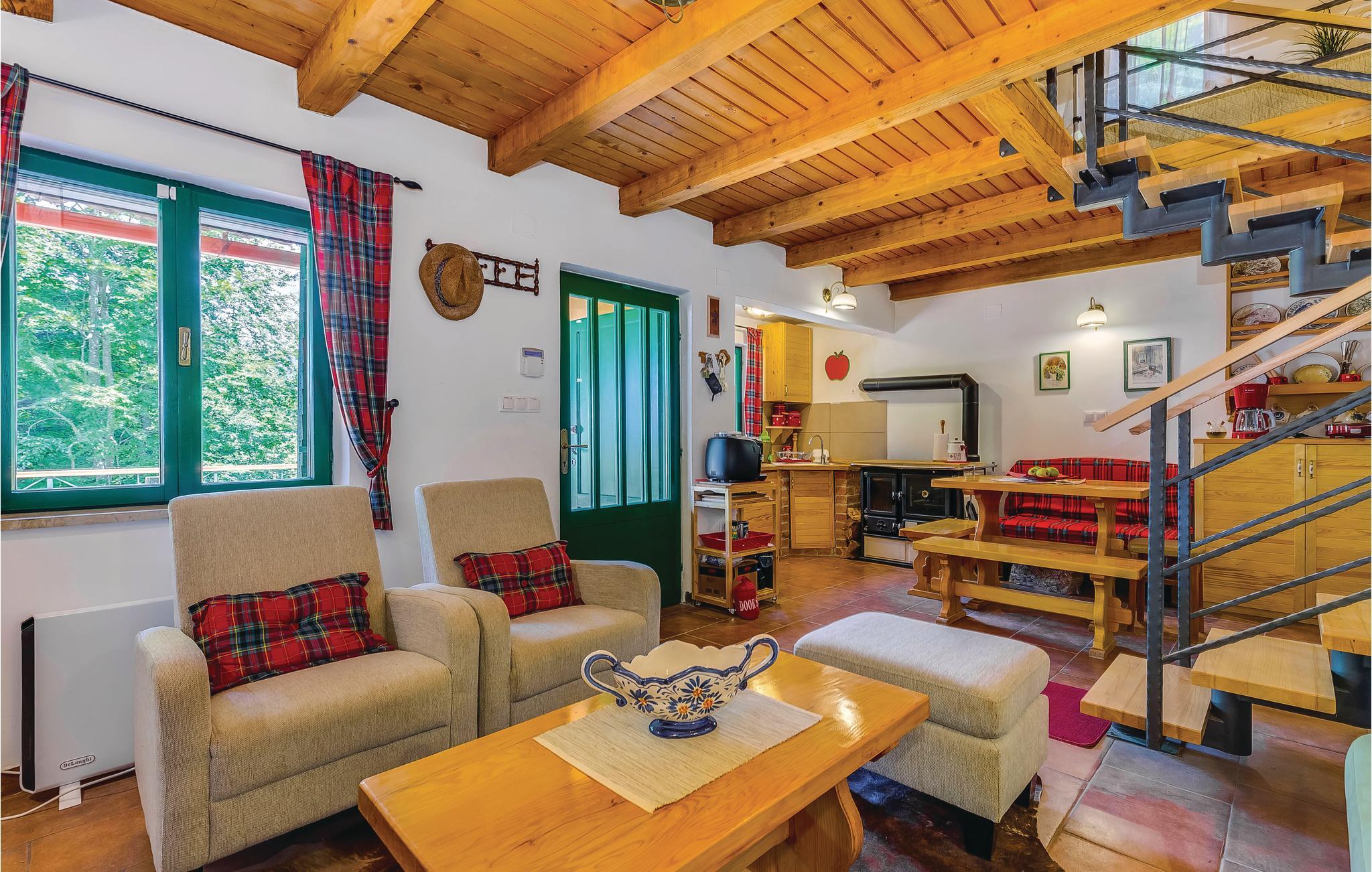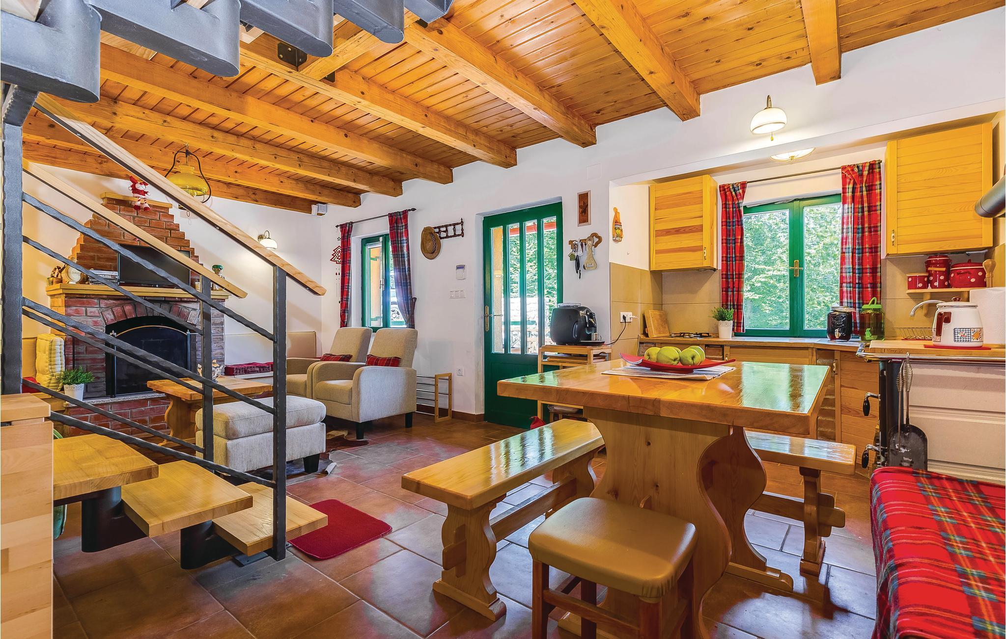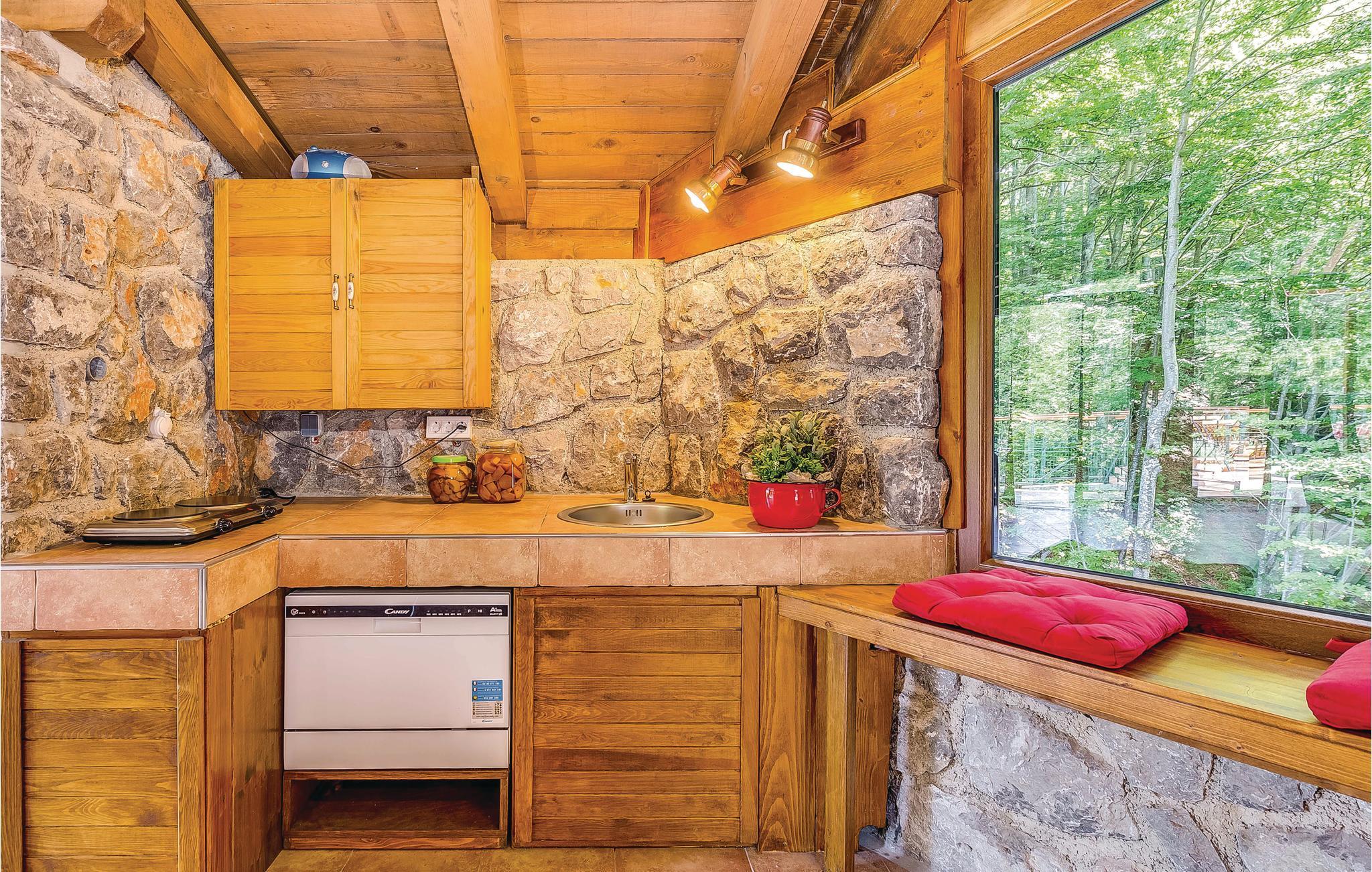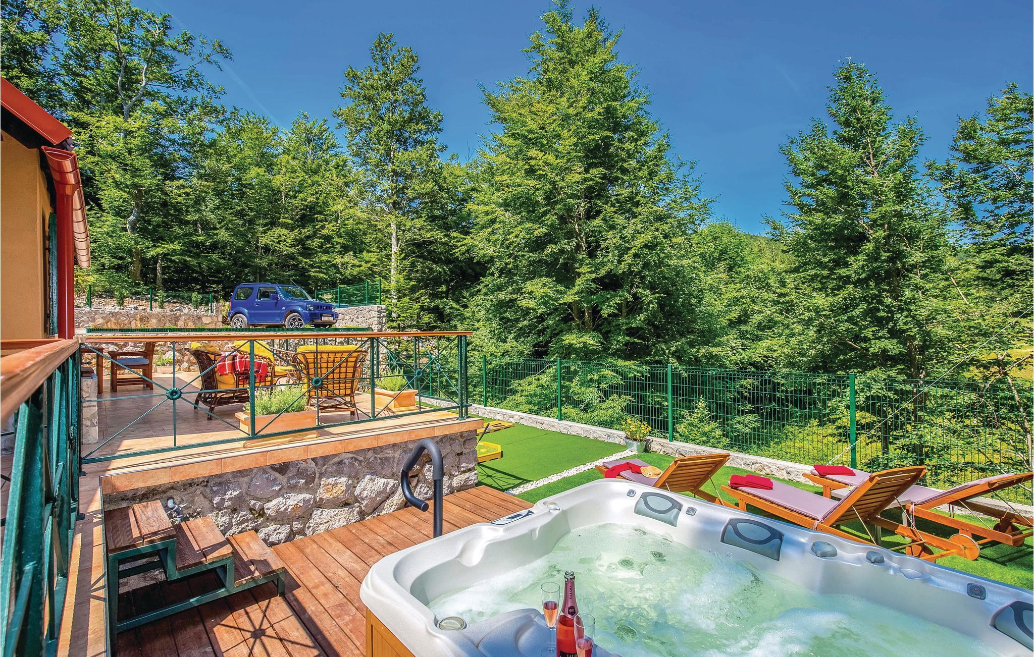 Dette feriehus ligger i det ringe beboede og rolige bagland ved Bribir som er meget populært blandt alle der holder af natur. I stueplan ligger køkkenet i åben forbindelse med stuen, hvor en indre trappe fører op til den rummelige hems med sovemulighed (laveste loftshøjde i siden 100 cm). Over en separat indgang kommer I til sommerkøkkene, hvor der også er grill og samt badeværelse. Dette feriehus er meget charmerende indrettet, med kærlighed helt ned i de små detaljer. Nyd naturen, som vil gøre både krop og sjæl godt eller hop en tur i whirlpoolen og lad de ømme muskler massere af tusinder af bobler. I Novi Vinodolski (22 km) er der skønne kyster og romantiske strande, som sikkert vil fortrylle jer.