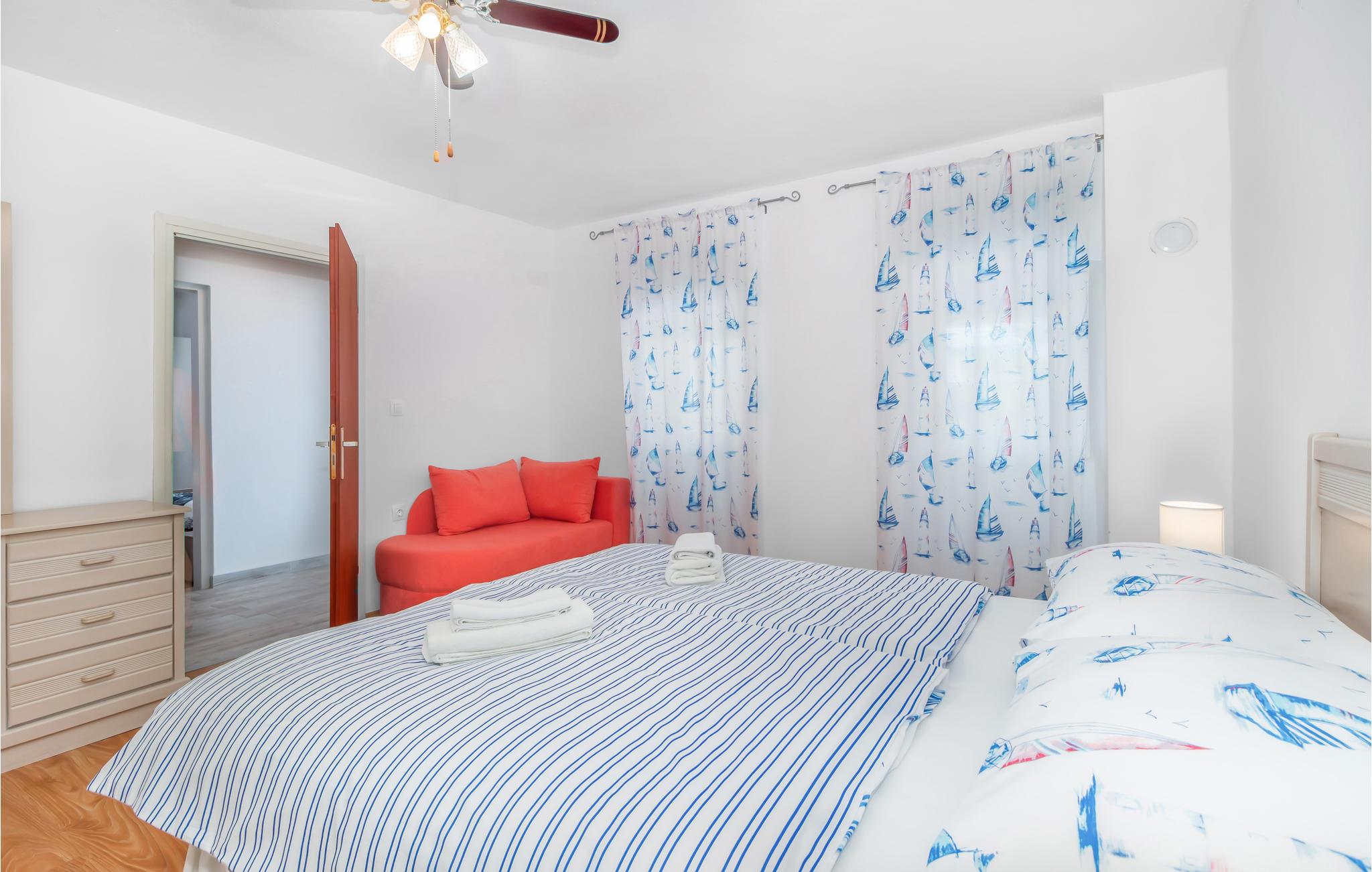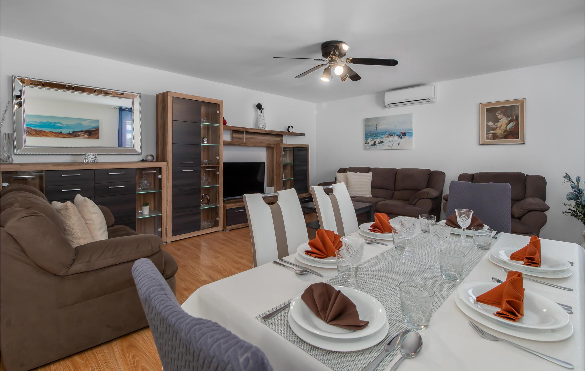 Dette feriehus ligger i oplandet til Novi Vinodolski. Det består af tre soveværelser, køkken og stue og to badeværelser. Alle etager har egen indgangsdør, og soveområdet ligger også for sig selv.