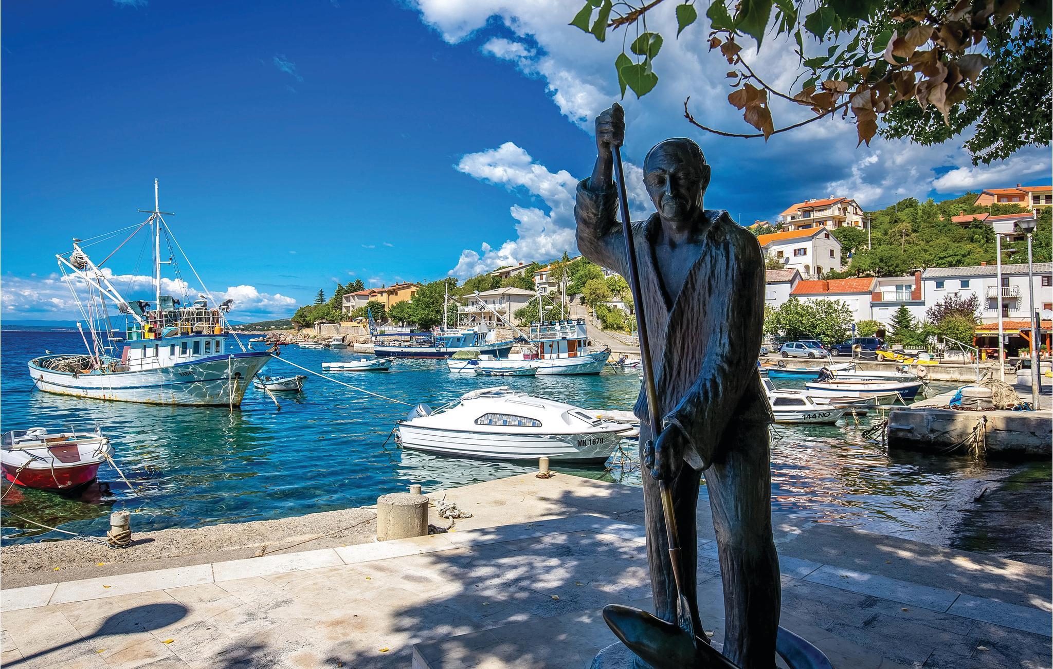 Lejlighed ligger i den lille fiskerby Klenovica, hvor såkaldte Vrulje, specielle ferskvandskilder rejser sig fra havbunden, så I kan opleve en række forskellige fisk her. På cirka 10 km når I byen Novi Vinodolski, som er præget af typisk kystarkitektur. Oplev de kulturelle og historiske seværdigheder i Novi Vinodolski, og lad jer forkæle med kulinariske lækkerier i en af de mange restauranter og caféer. Til dagsture kan I booke Kremenik-båden og tage til nærliggende byer eller til den modsatte ø Krk. Oplev den unikke natur der, men også forskellige fritidsaktiviteter fra zip-lining til dykning til vandreture gennem drypstenshuler.