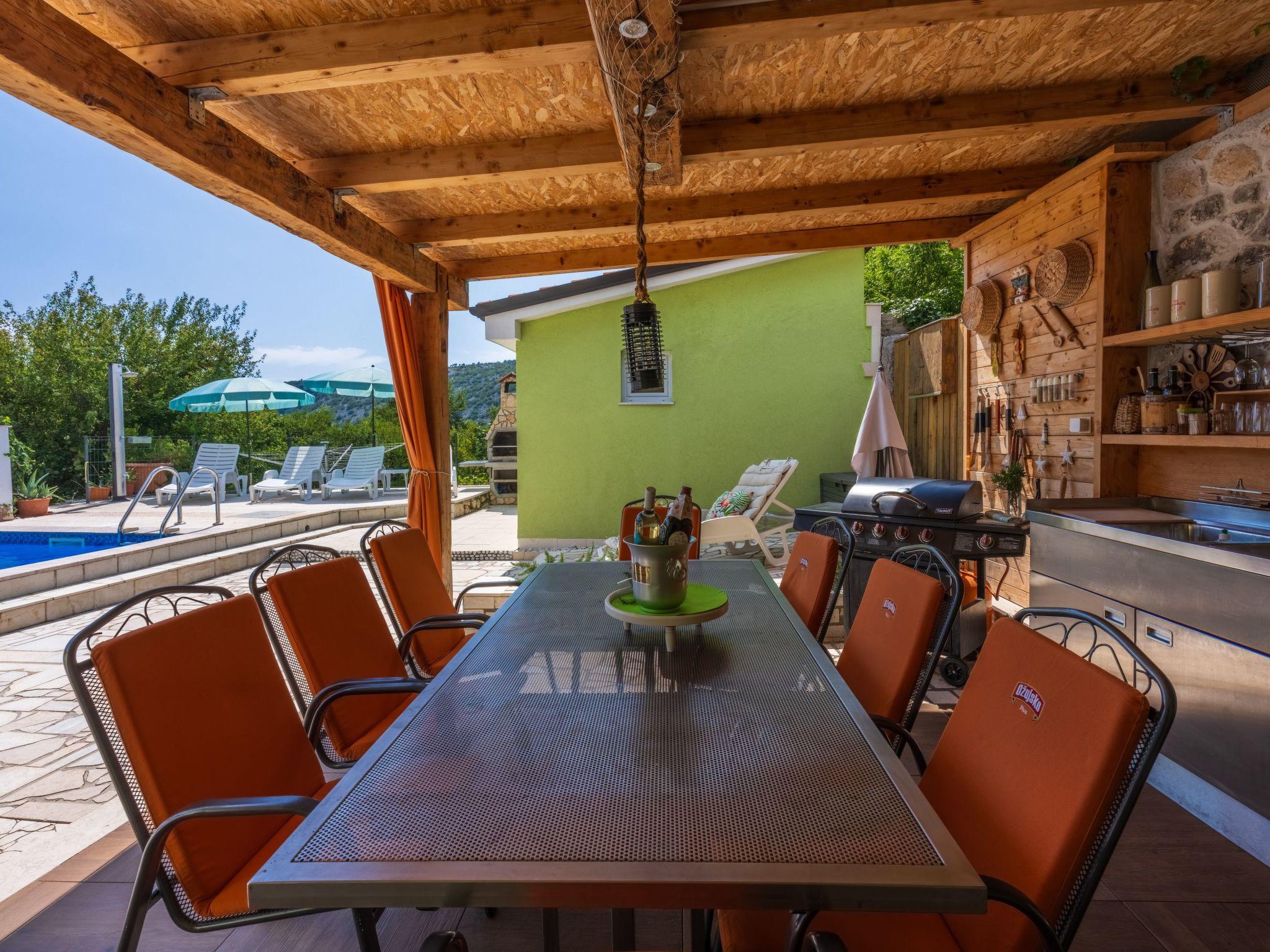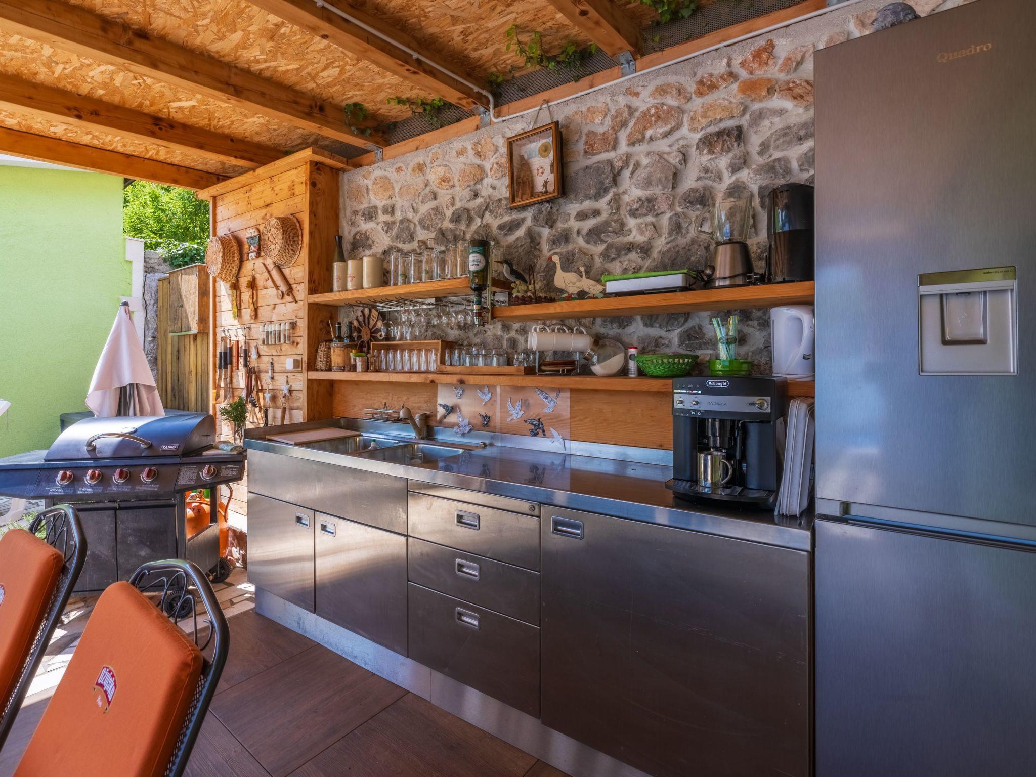 This detached house is near the beach, just a 10-minute drive from Crikvenica and the beaches, in a quiet location on a road in Bribir with little traffic. It is in beautiful surroundings with plenty of greenery and a lovely mountain and sea view.