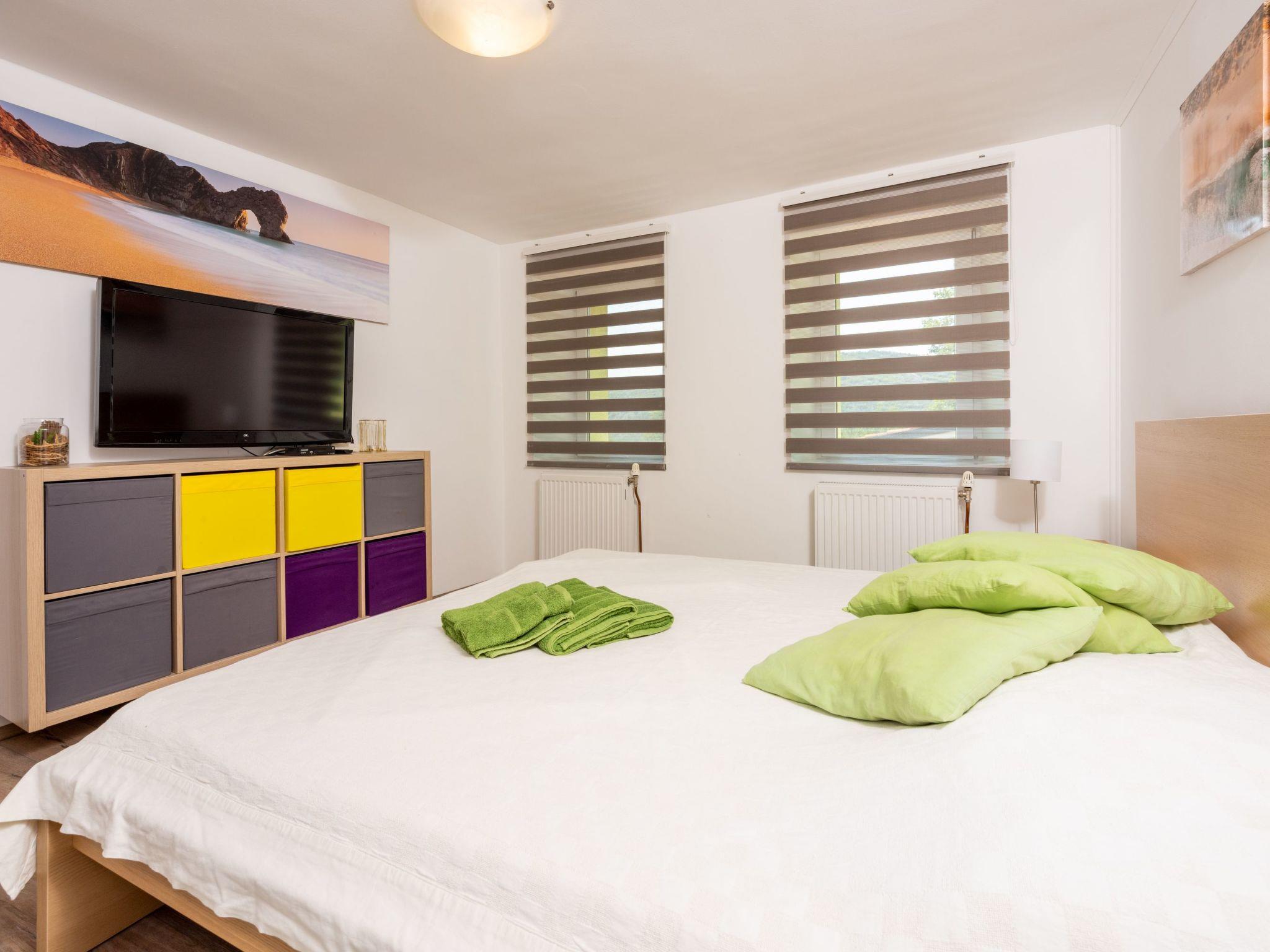 The house provides 180m² of living space on two floors, where you can relax completely and can find everything you need. The special feature of this house is that it has two kitchens, one upstairs and one downstairs, so you can decide yourself where to cook. The house has a total of four bedrooms with double beds. Three of the bedrooms are on the upper floor. The beds measure as follows: in the first bedroom 195 x 200cm, in the second bedroom 203 x 203cm, in the third bedroom 200 x 185cm. The fourth bedroom is on the ground floor and the bed measures 140 x 198cm. All the bedrooms have wardrobes for your clothing and luggage. There are also two fold-out single beds that can be used upstairs in the living room or in one of the other rooms. Therefore the house can accommodate a total of ten people. The kitchens are equipped with a stove, oven and dishwasher and on the ground floor there is also a microwave. You can also use a filter coffee machine. In total there are two bathrooms with a shower and WC. There is a laundry room with a washing machine, an iron and clothes horse.
