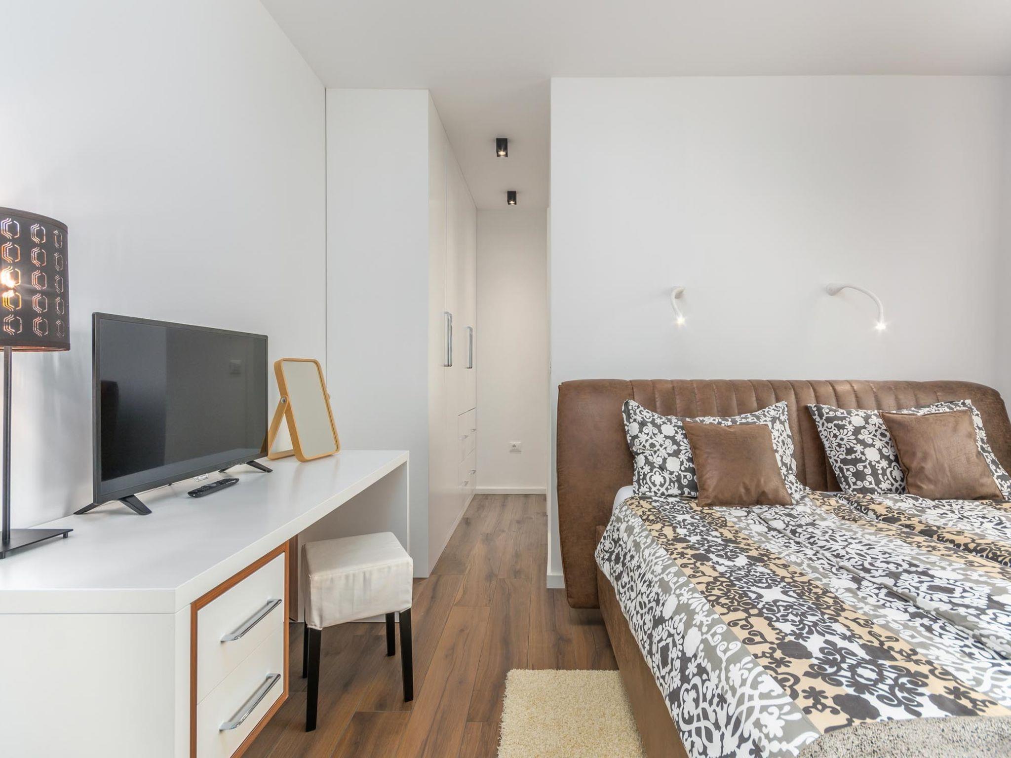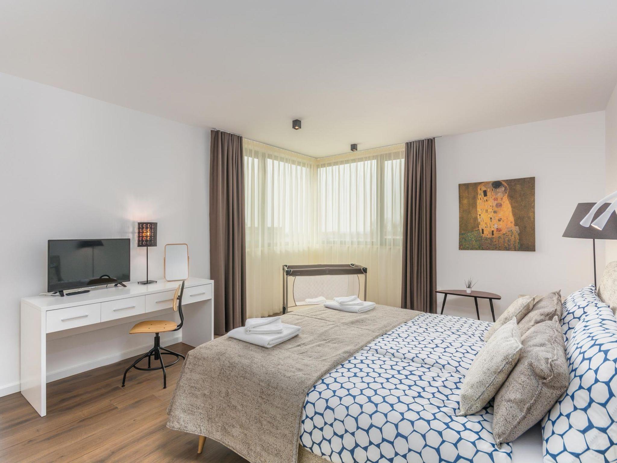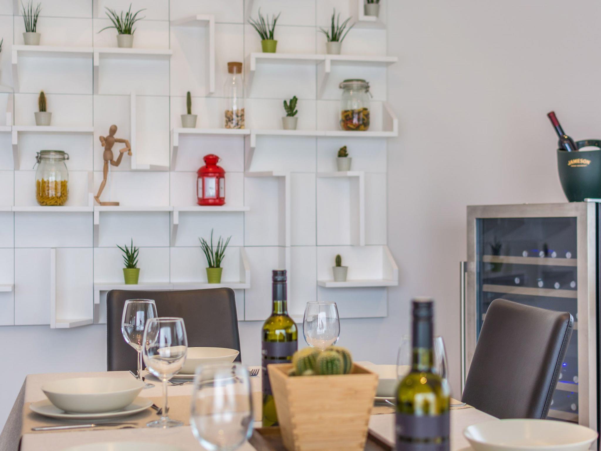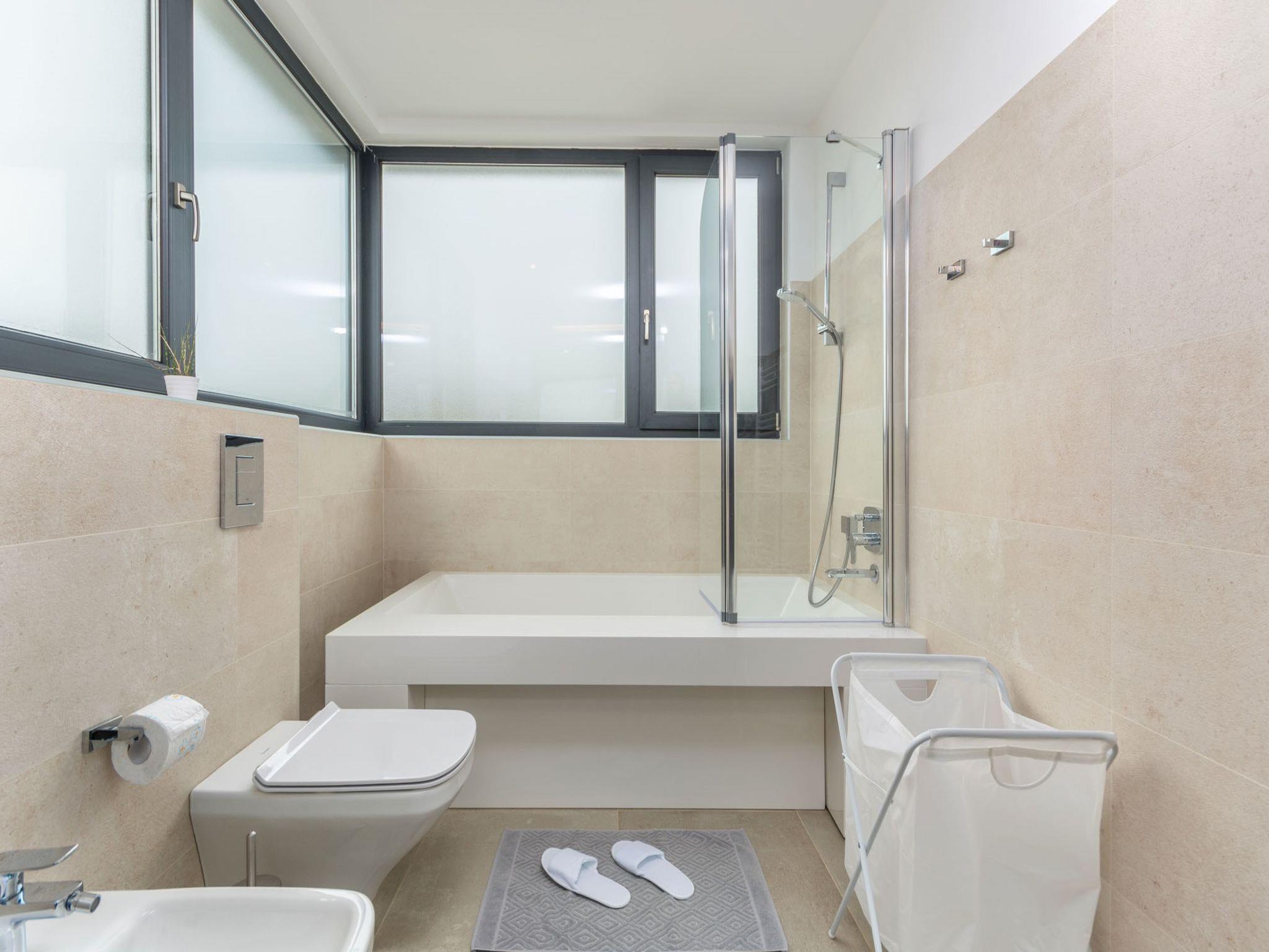 Modern villa "Paolo", 2 storeys. In the hamlet Stancija Vinjeri 2 km from the centre of Novigrad, in a sunny position, 3 km from the sea, 3 km from the beach. Private: property 1'100 m2 (fenced), garden with lawn, swimming pool angular, heated (9 x 5 m, depth 140 cm, seasonal availability: 01.Jan. - 31.Dec.) with internal staircase. Outdoor shower, hot tub, arbour (20 m2), terrace, garden furniture. In the house: internet access, sauna, table football, trampoline, washing machine, tumble dryer. Parking (for 3 cars) at the house on the premises. Shop 1.5 km, supermarket 1.5 km, restaurant 500 m, bus stop 2 km, pebble beach 3 km, rocky beach 3 km. Tennis 2 km, walking paths from the house 500 m, cycle lane 550 m. Nearby attractions: Aquapark 5 km. Please note: airfield 20 km from the property. Swimming pool heated (extra). It is necessary to announce 7 days in advance if the pool heating is required. Available: garden with organic, seasonal fruit and vegetables (included in the price).