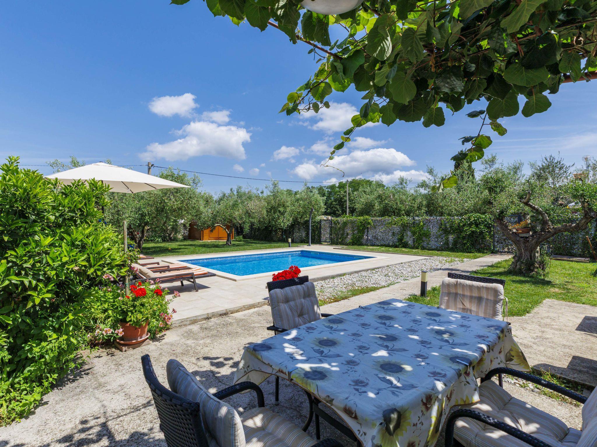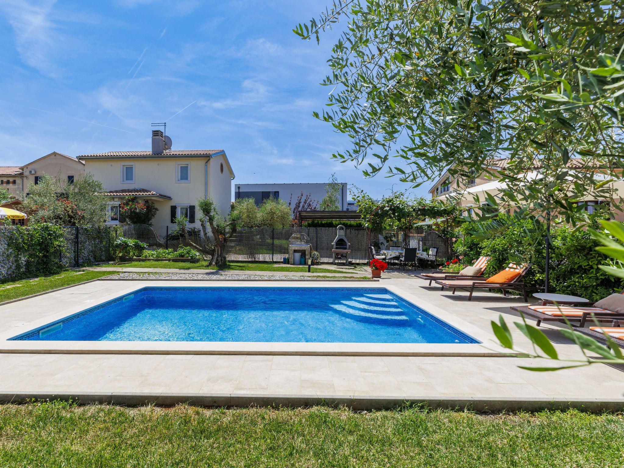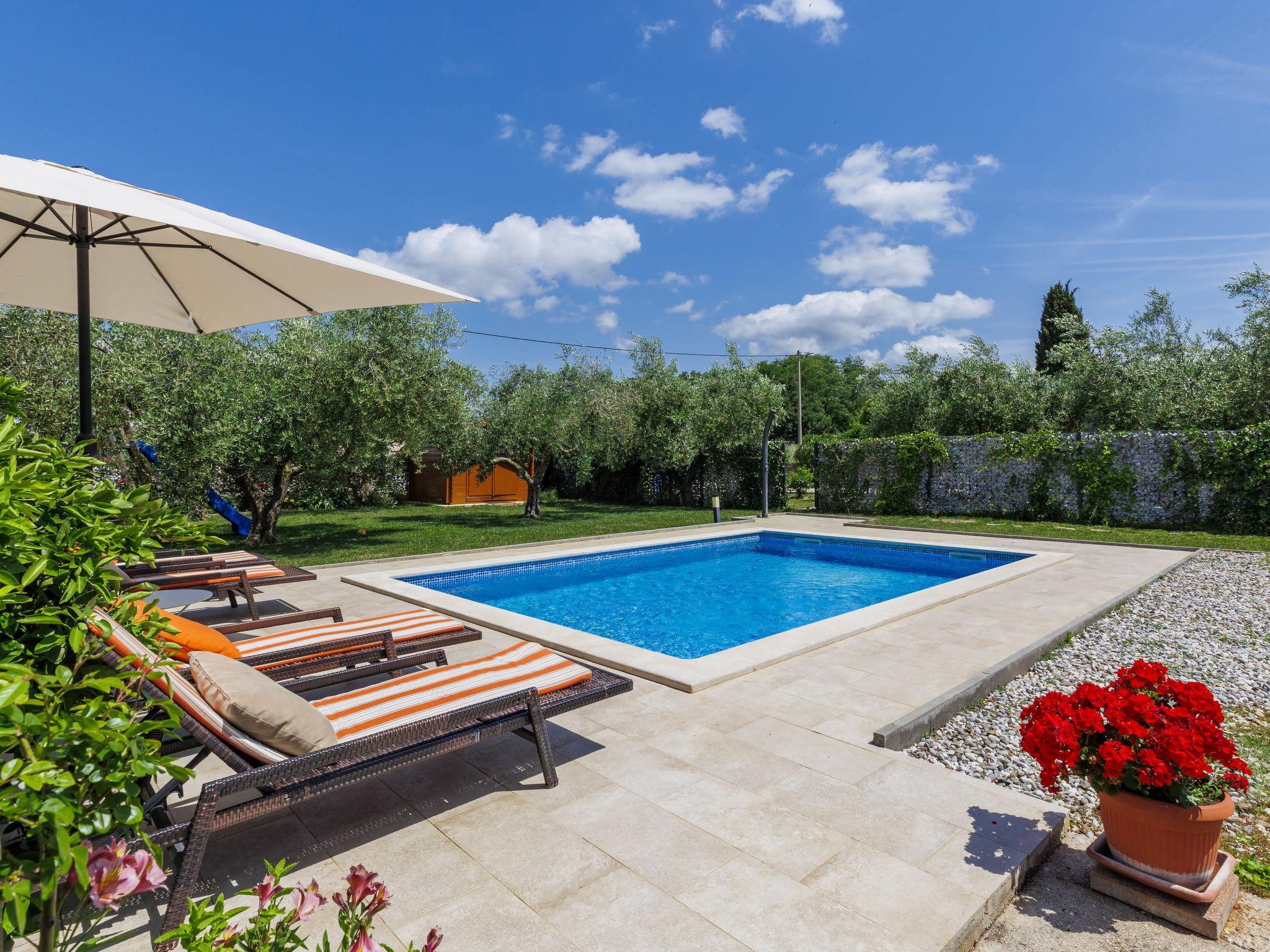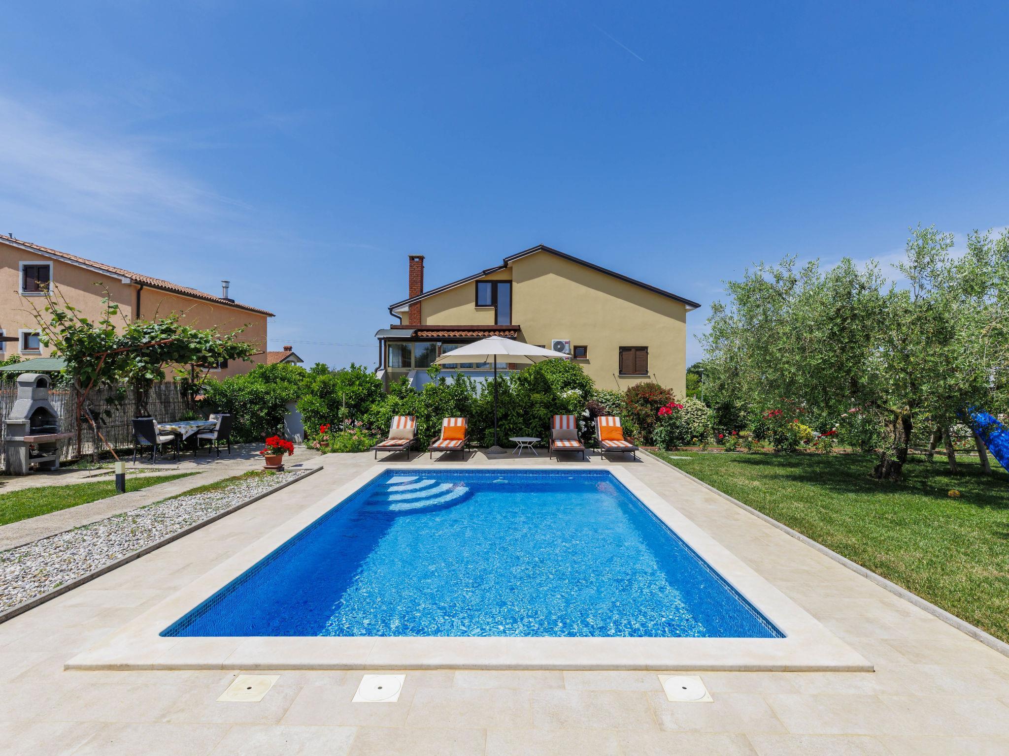 2-family house "Chiara". In the hamlet Sveti Servul 2 km from the centre of Novigrad, in a quiet, sunny position, 3 km from the sea, 3 km from the beach. Private: property 400 m2, garden with wildlife garden and trees, swimming pool angular (6 x 4 m, depth 150 cm, seasonal availability: 01.May. - 30.Sep.) with internal staircase. Outdoor shower, barbecue (swing). In the house: internet access. Parking at the house on the premises. Shop 1.5 km, supermarket 1.5 km, restaurant 500 m, bus stop 2.2 km, pebble beach 3 km, rocky beach 3 km. Golf course (18 hole) 25 km, tennis 2 km, walking paths from the house 500 m, cycle lane 550 m. Nearby attractions: Aquapark 5 km. Organizing a party is not allowed.