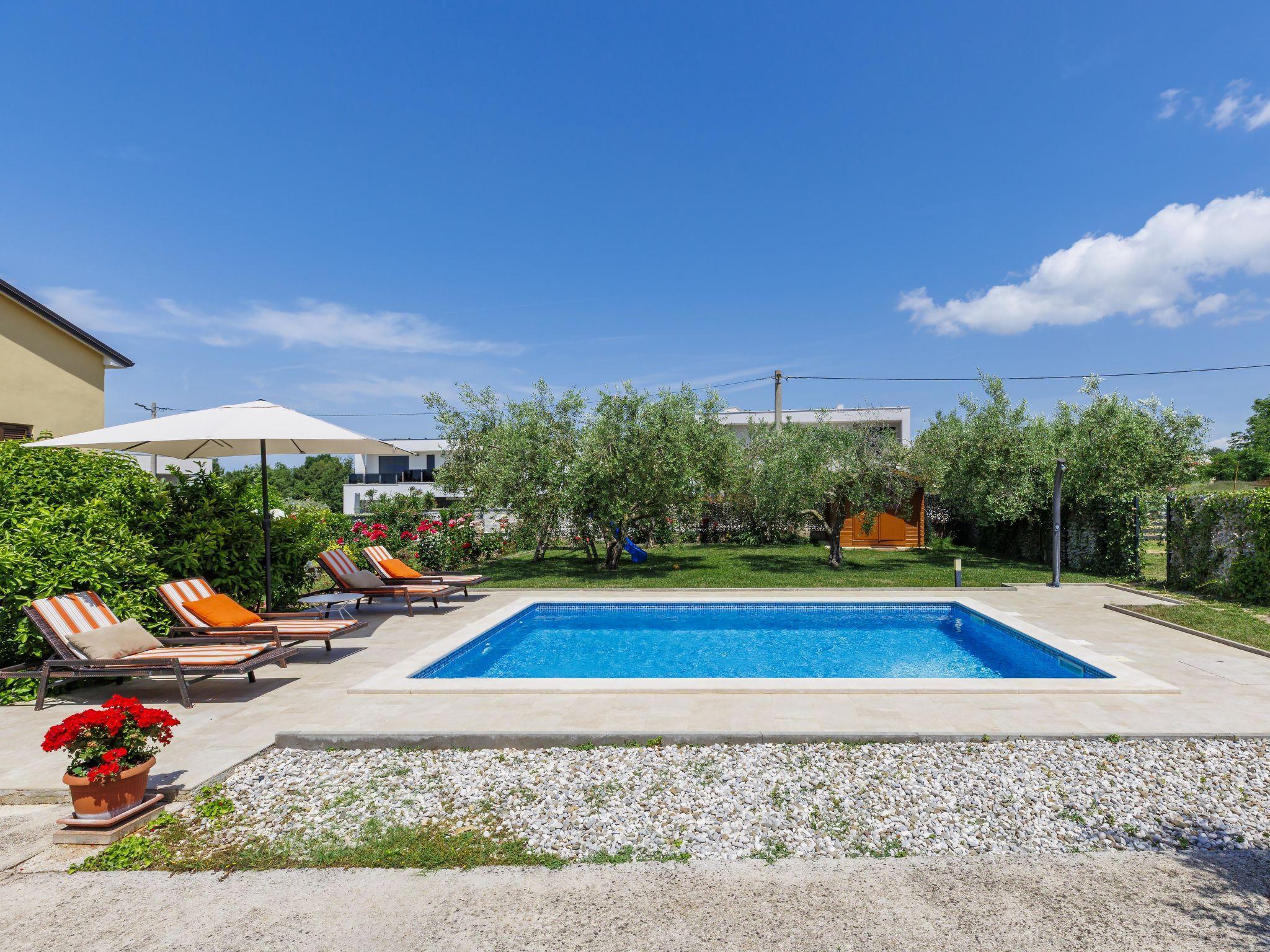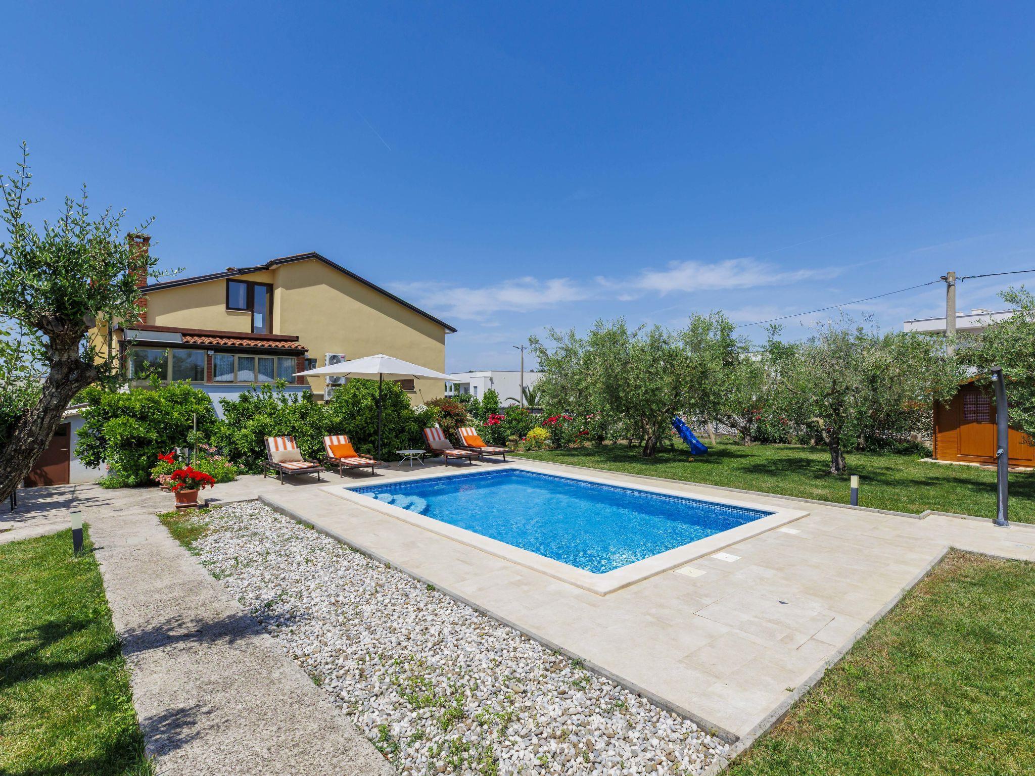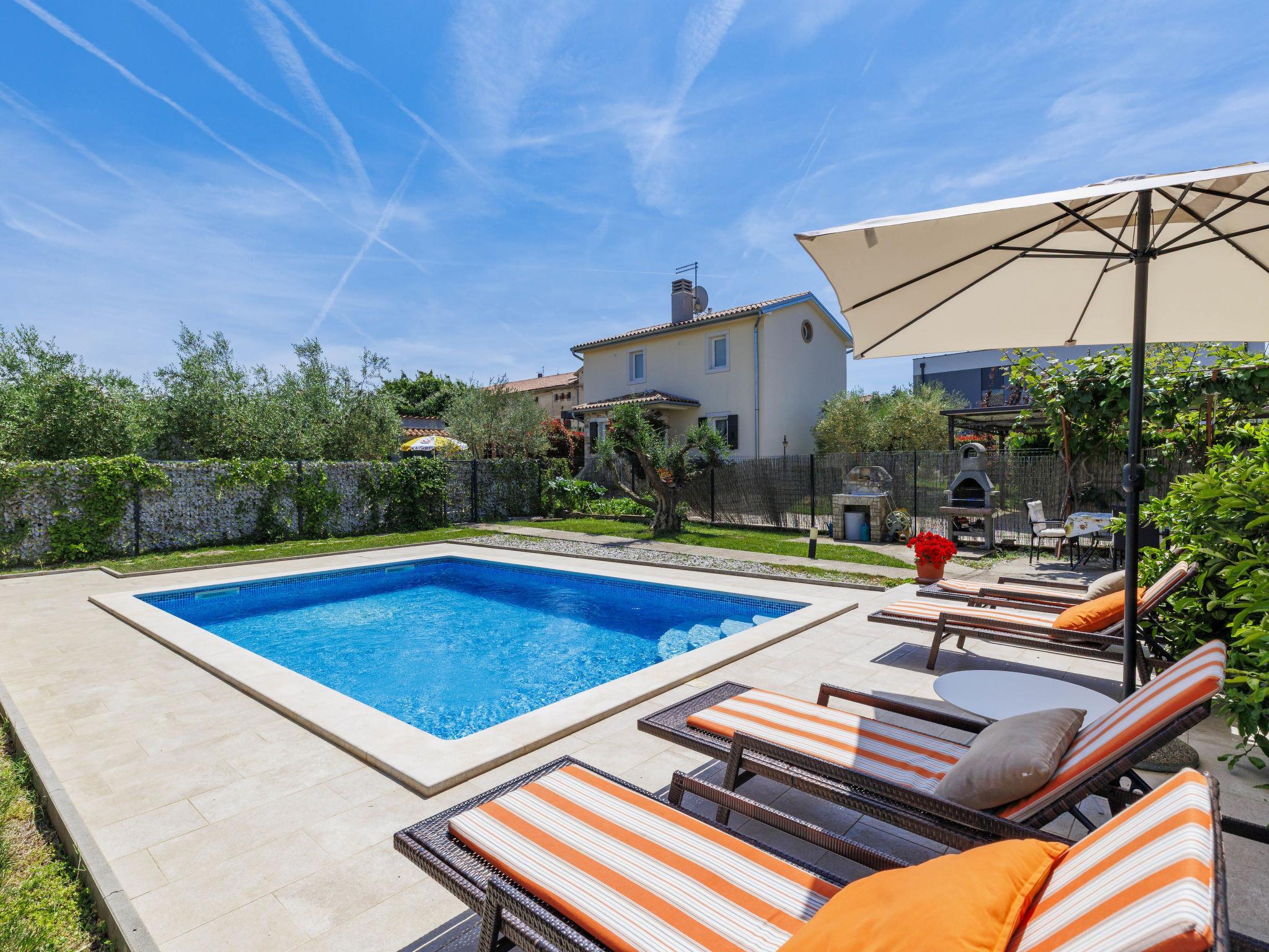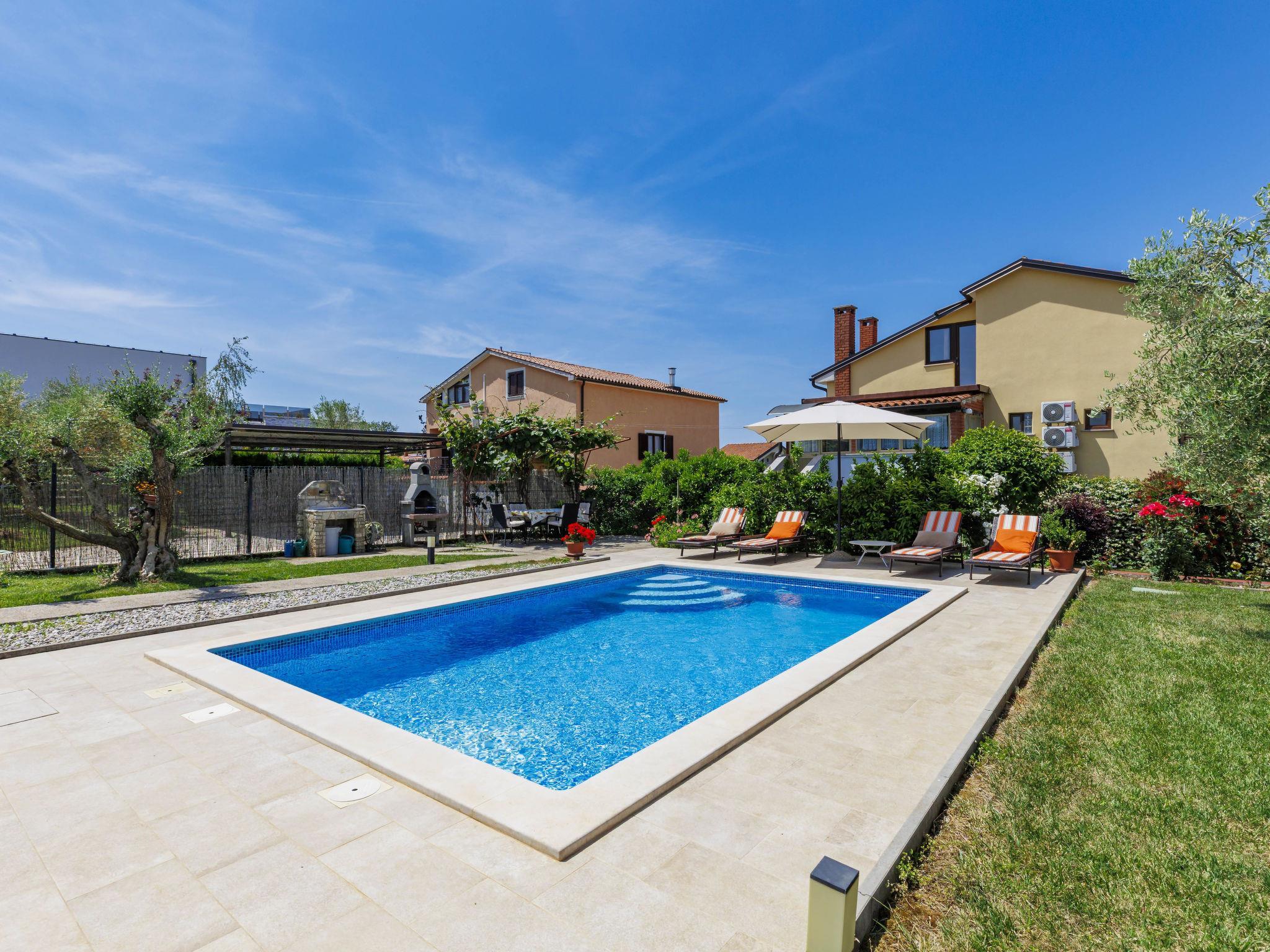 2-family house "Chiara". In the hamlet Sveti Servul 2 km from the centre of Novigrad, in a quiet, sunny position, 3 km from the sea, 3 km from the beach. Private: property 400 m2, garden with wildlife garden and trees, swimming pool angular (6 x 4 m, depth 150 cm, seasonal availability: 01.May. - 30.Sep.) with internal staircase. Outdoor shower, barbecue (swing). In the house: internet access. Parking at the house on the premises. Shop 1.5 km, supermarket 1.5 km, restaurant 500 m, bus stop 2.2 km, pebble beach 3 km, rocky beach 3 km. Golf course (18 hole) 25 km, tennis 2 km, walking paths from the house 500 m, cycle lane 550 m. Nearby attractions: Aquapark 5 km. Organizing a party is not allowed.