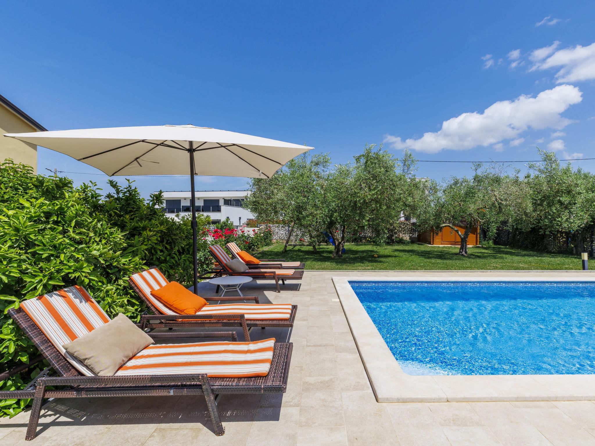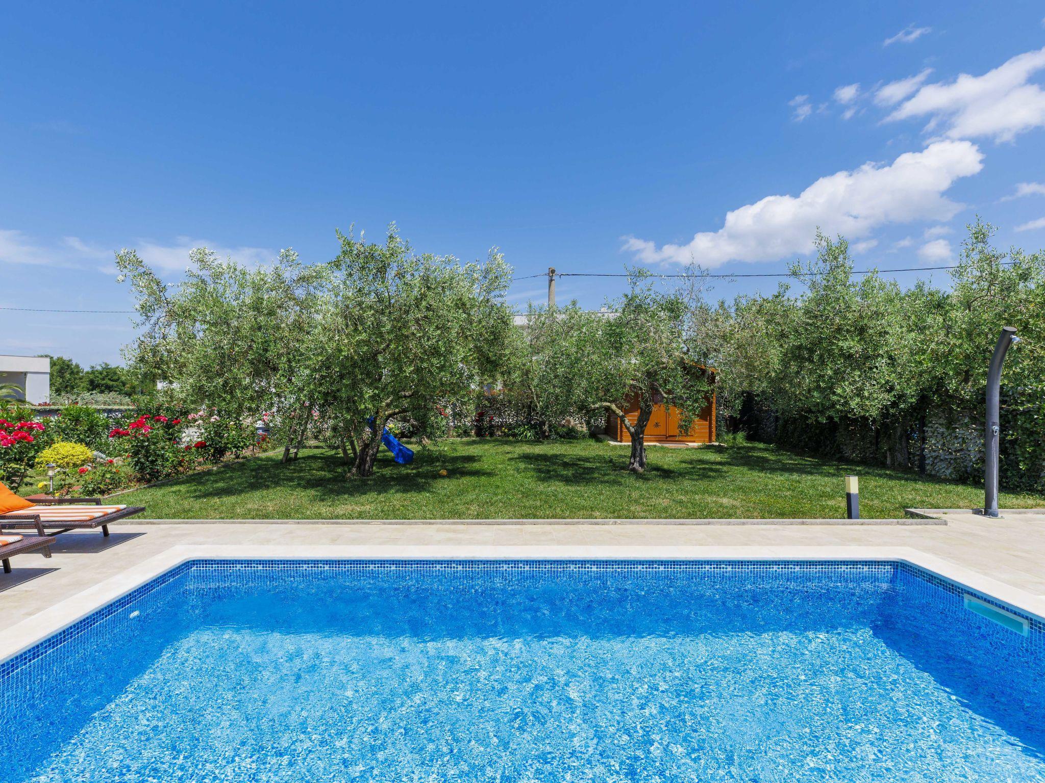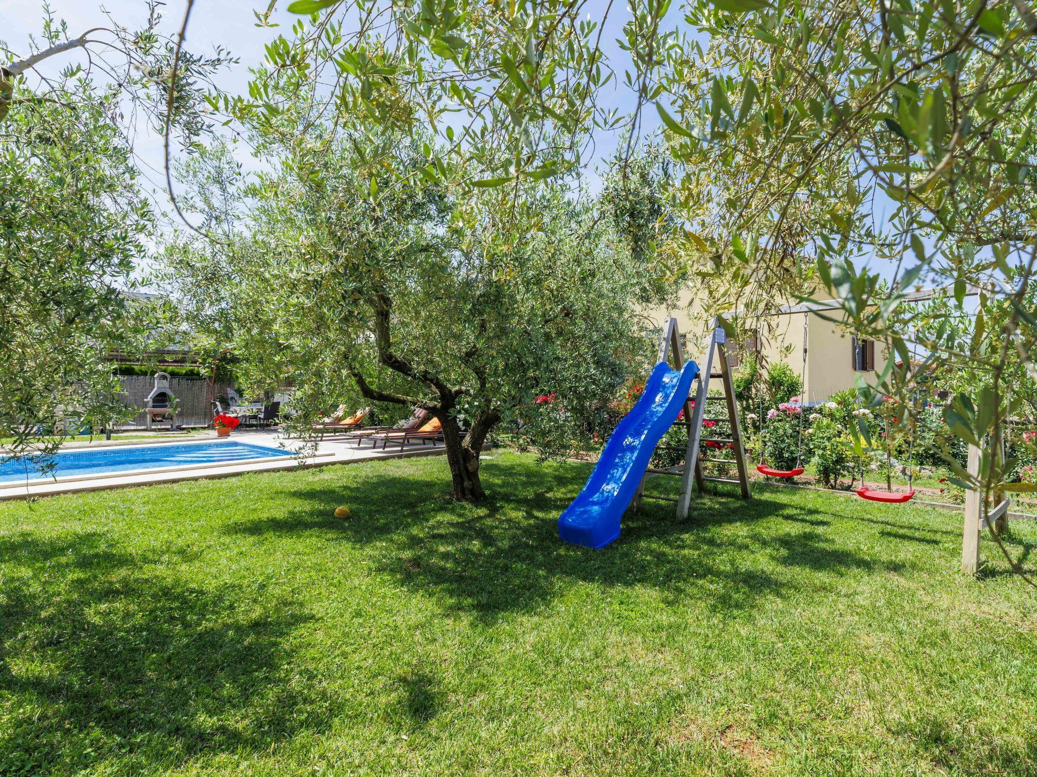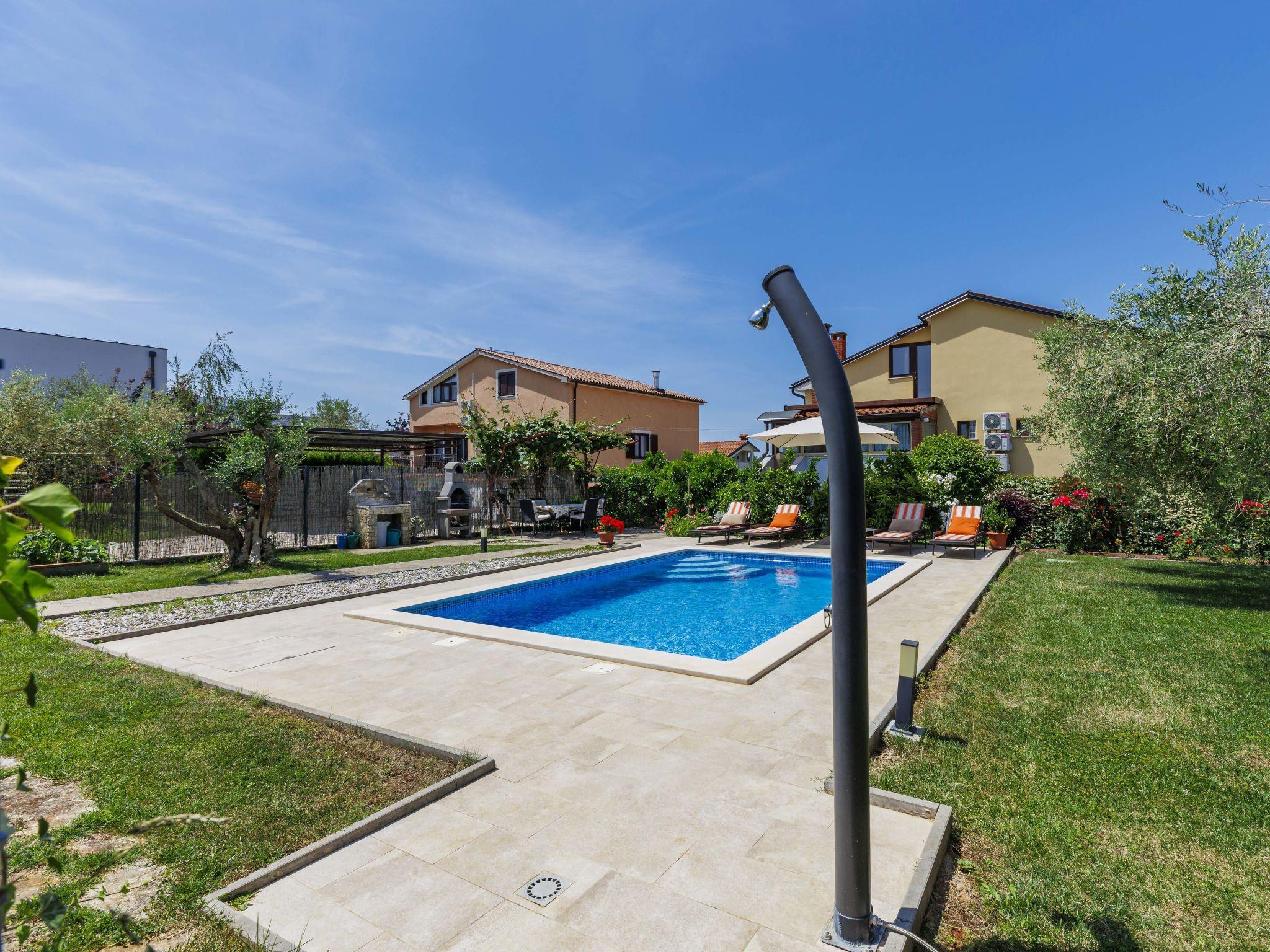 2-family house "Chiara". In the hamlet Sveti Servul 2 km from the centre of Novigrad, in a quiet, sunny position, 3 km from the sea, 3 km from the beach. Private: property 400 m2, garden with wildlife garden and trees, swimming pool angular (6 x 4 m, depth 150 cm, seasonal availability: 01.May. - 30.Sep.) with internal staircase. Outdoor shower, barbecue (swing). In the house: internet access. Parking at the house on the premises. Shop 1.5 km, supermarket 1.5 km, restaurant 500 m, bus stop 2.2 km, pebble beach 3 km, rocky beach 3 km. Golf course (18 hole) 25 km, tennis 2 km, walking paths from the house 500 m, cycle lane 550 m. Nearby attractions: Aquapark 5 km. Organizing a party is not allowed.