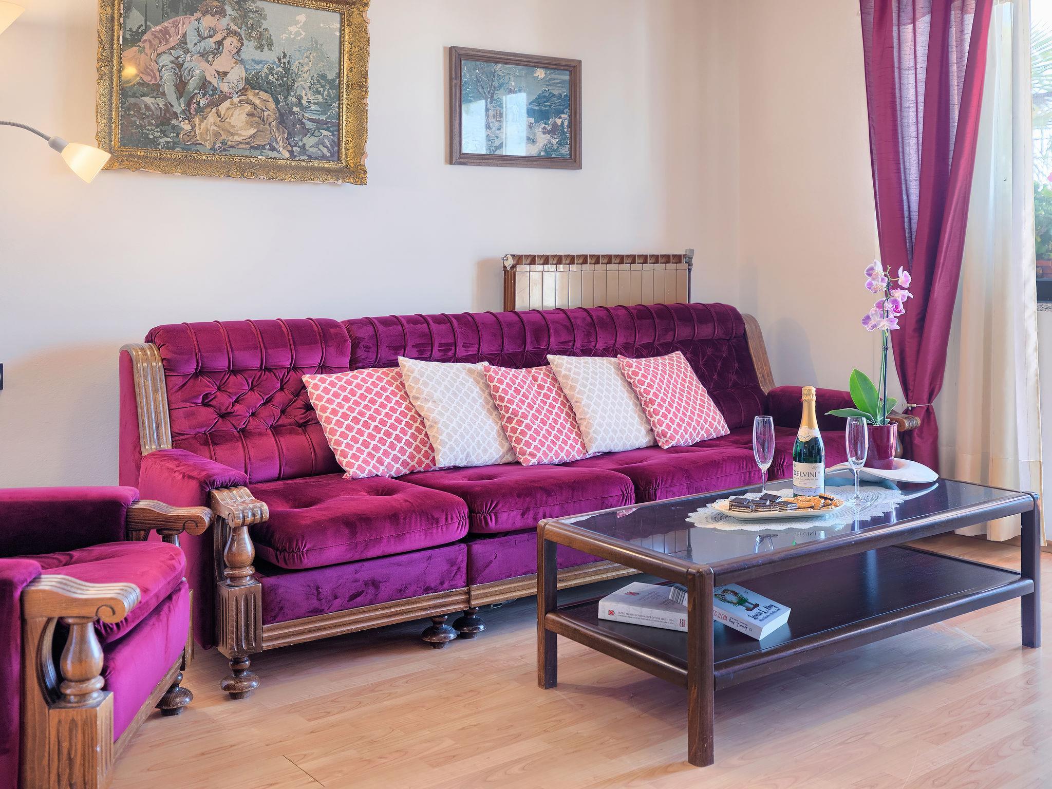 3-room apartment 108 m2 on 1st floor. Living/dining room 33 m2 with 1 double sofabed (160 cm, length 190 cm), satellite TV (flat screen), air conditioning. Exit to the terrace. 1 room with 1 double bed (2 x 90 cm, length 200 cm), satellite TV and air conditioning. 1 room with 2 beds (90 cm, length 200 cm), satellite TV and air conditioning. Open kitchen (oven, dishwasher, 4 gas rings, kettle, freezer, electric coffee machine). Shower/bidet/WC, sep. WC. Heating (extra). Terrace 8 m2, roofed, terrace 15 m2. Terrace furniture, deck chairs. View of the swimming pool and the garden. Facilities: washing machine, iron, baby cot, hair dryer. Internet (WiFi, free). Please note: non-smokers only. Private entrance.