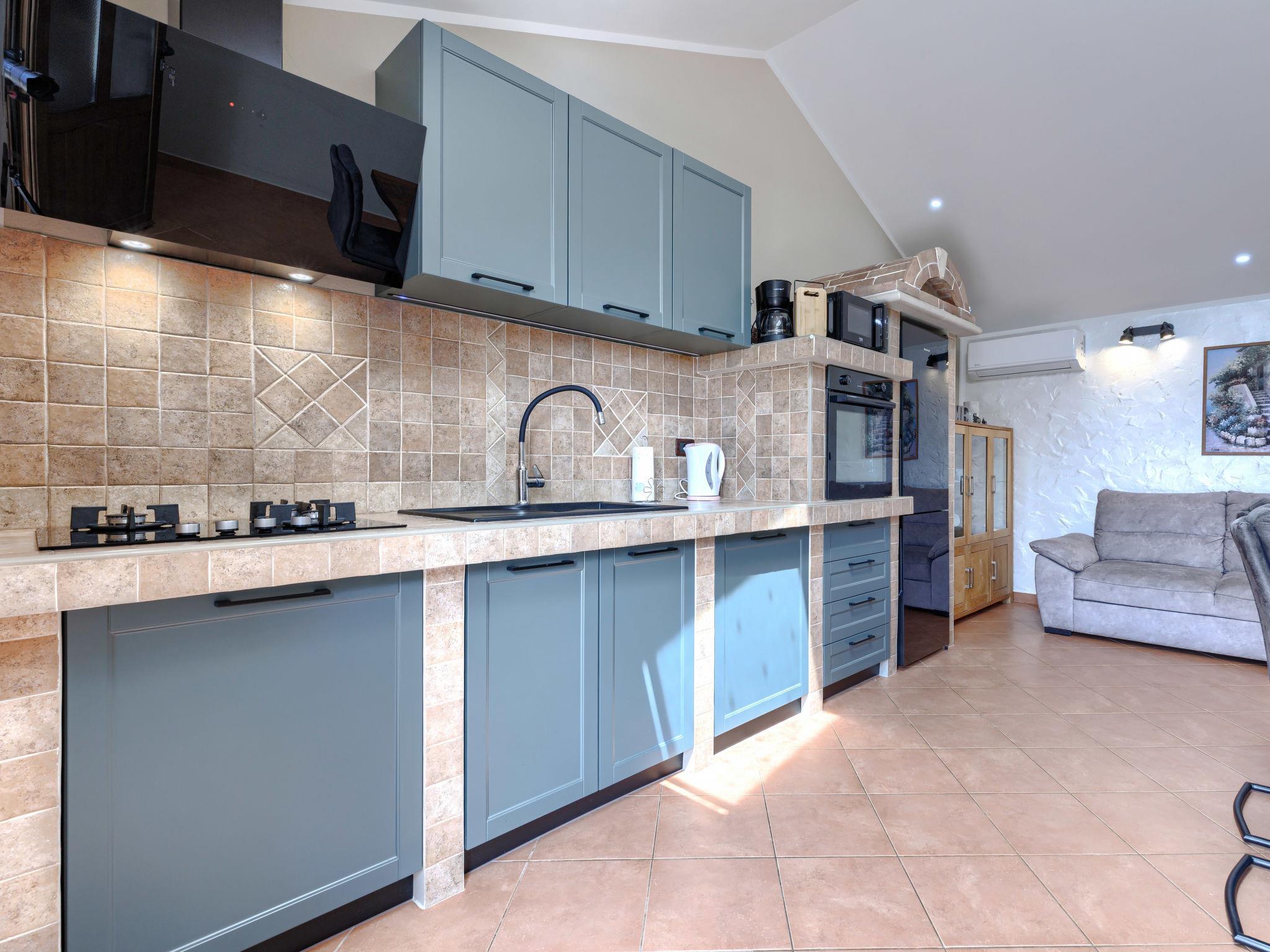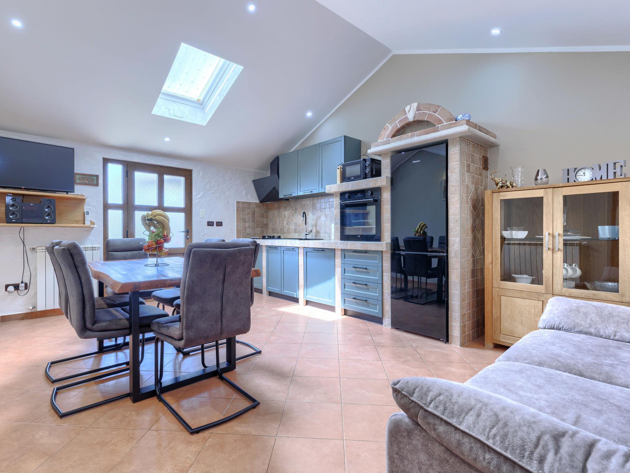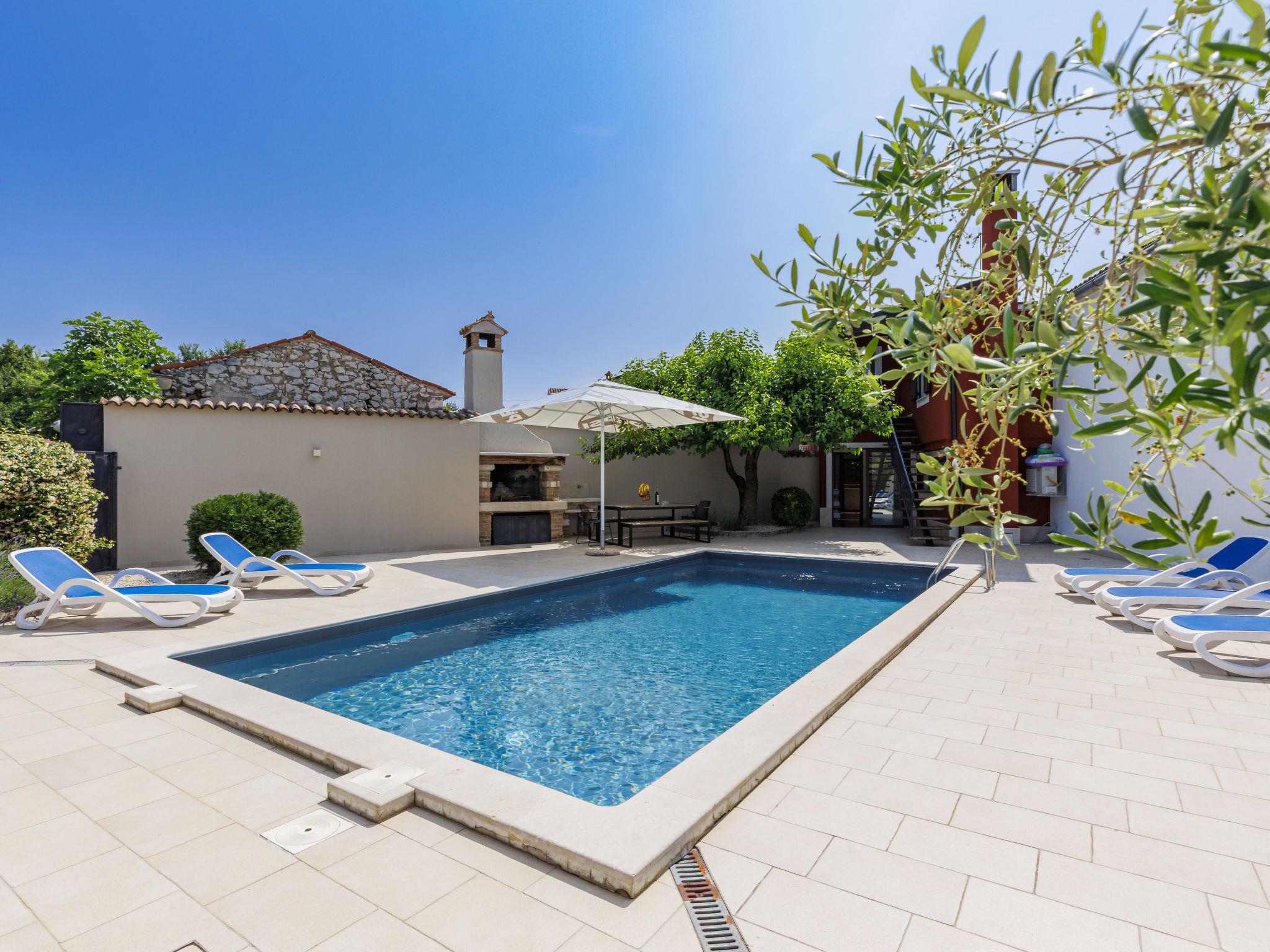 Beautiful semi-detached house "Darija", 2 storeys. In the hamlet Pavici 1 km from the centre of Nova Vas, 3 km from the centre of Brtonigla, 7 km from the centre of Novigrad, in a quiet, sunny position, 8 km from the sea. Private: property 500 m2 (fenced), garden with wildlife garden, swimming pool angular (8 x 4 m, depth 140 cm, seasonal availability: 01.Jun. - 15.Sep.). Outdoor shower, garden furniture, barbecue. In the house: internet access, trampoline, washing machine. Parking on the premises. Shop 1 km, supermarket 8 km, restaurant 1 km, bus stop 3.6 km, pebble beach 8 km, rocky beach 8 km. Walking paths from the house 500 m, cycle lane 550 m. Nearby attractions: Aquapark 2 km. Semi-detached house consists of 2 apartments rented as one unit.
