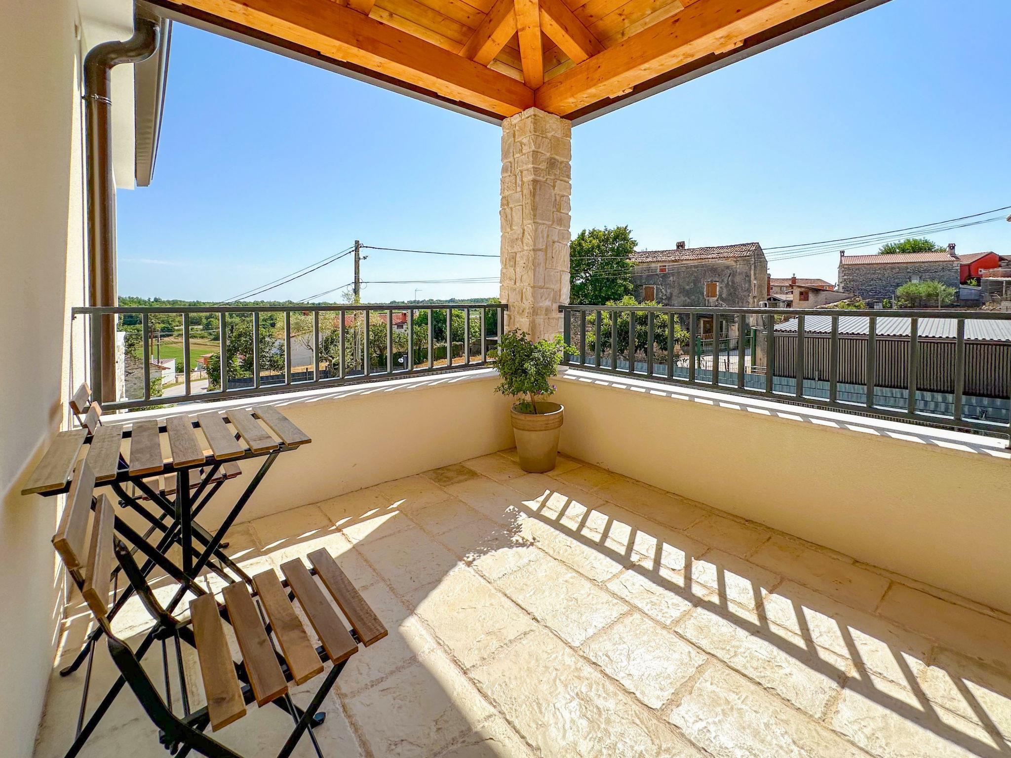 Beautiful terraced house "Villa Gaudeo", 2 storeys, renovated in 2024. In the hamlet Nova Vas 2.5 km from the centre of Brtonigla, 8 km from the centre of Novigrad, in a quiet, sunny position, 8 km from the sea. Private: property 500 m2 (fenced), swimming pool (8 x 4 m, depth 150 cm, seasonal availability: 01.May. - 30.Sep.) with internal staircase. Outdoor shower, garden furniture, barbecue (swing), pool maintenance by the owner/gardener. In the house: internet access, table football, trampoline. Parking (for 2 cars) at the house on the premises. Shop 200 m, supermarket 8 km, restaurant 200 m, bus stop 8 km, railway station 35 km, pebble beach 8 km, rocky beach 8 km. Golf course (18 hole) 24 km, walking paths from the house 50 m, cycle lane 100 m. Nearby attractions: aquapark 3 km. The owner does not accept any groups. The owner does not accept any youth groups. Neighbourhood highly sensitive to noise. Quietness and good behaviour expected.