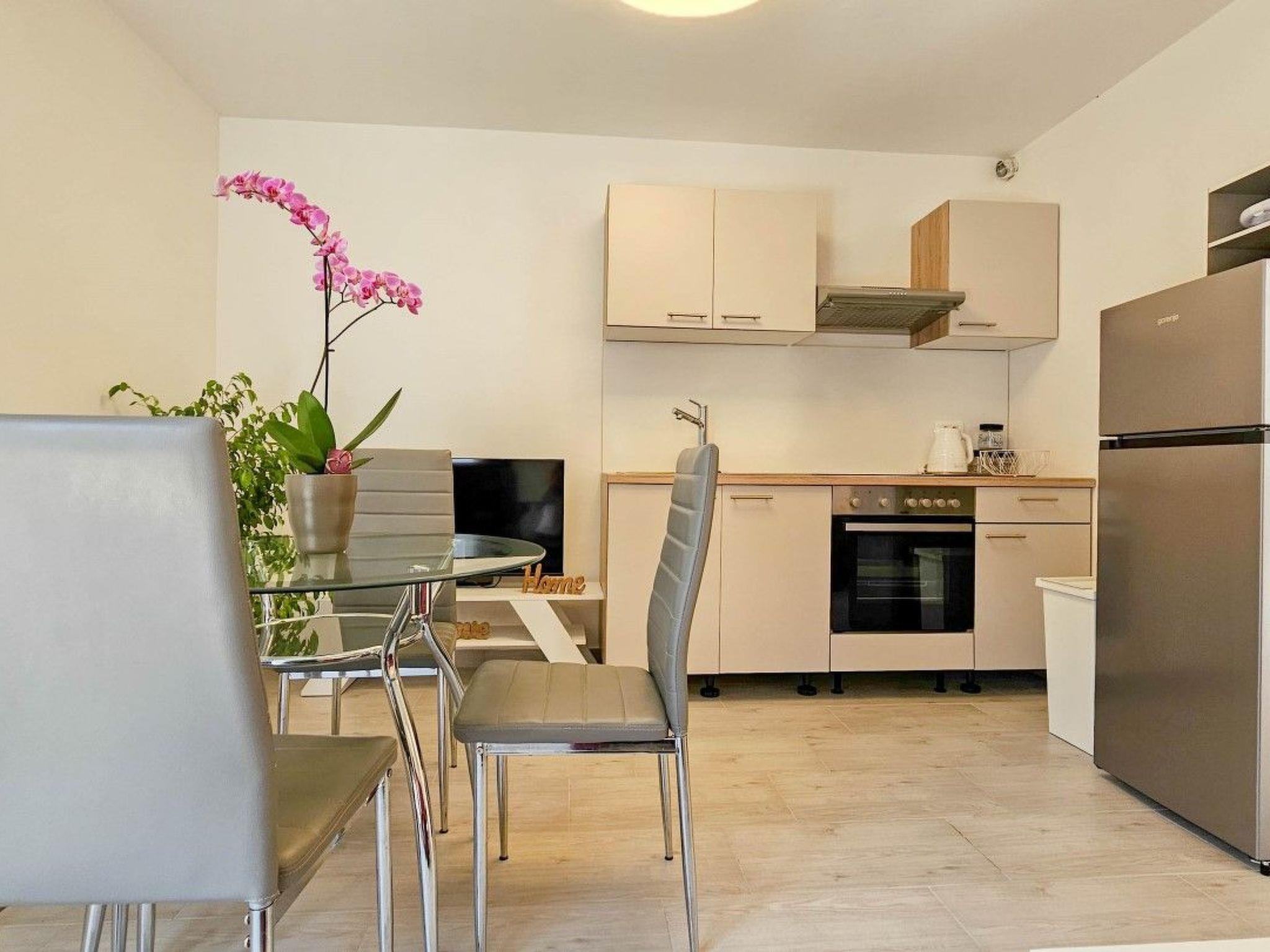 The apartment consists of a bedroom with a double bed, a bathroom, and a living room with a fully equipped kitchen. In front of the house, there is a small terrace with a table and chairs for two – perfect for enjoying your morning coffee or relaxing in the evening. Guests also have access to a barbecue.