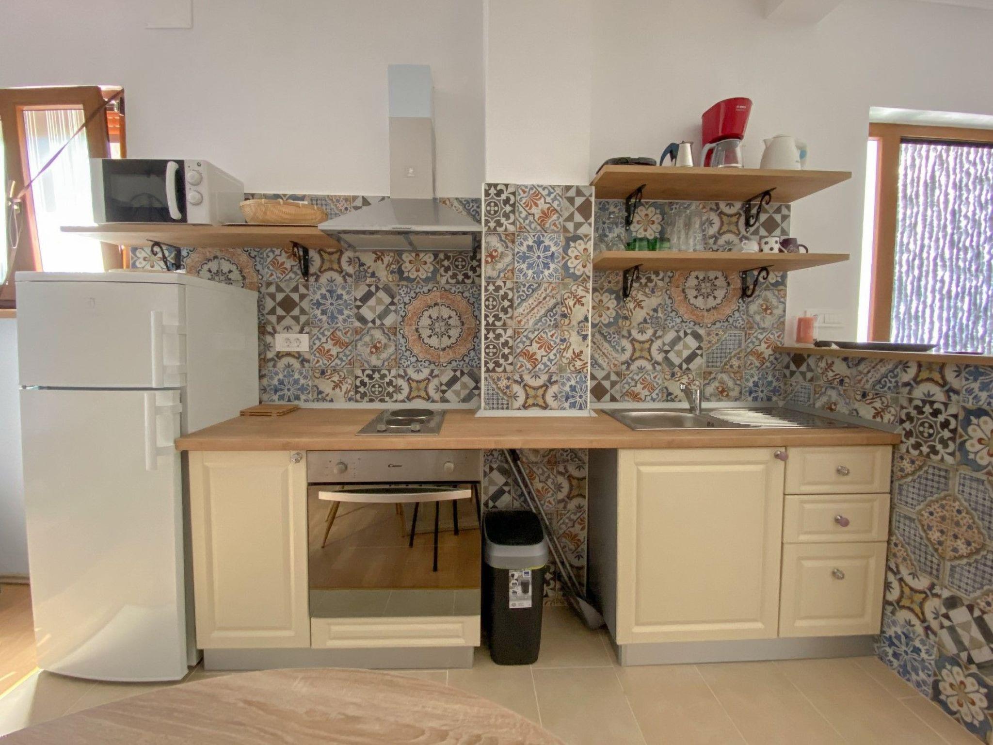 Inside, the apartment presents a cozy and well-equipped space designed to cater to your every need. The welcoming bedroom features a comfortable double bed, promising restful nights. The adjoining kitchen is fully fitted with essential appliances, including an electric stove, oven, refrigerator, microwave, and a coffee maker, ensuring that preparing meals is both easy and enjoyable. Alongside, a well-maintained bathroom equipped with a shower offers all the conveniences of home.