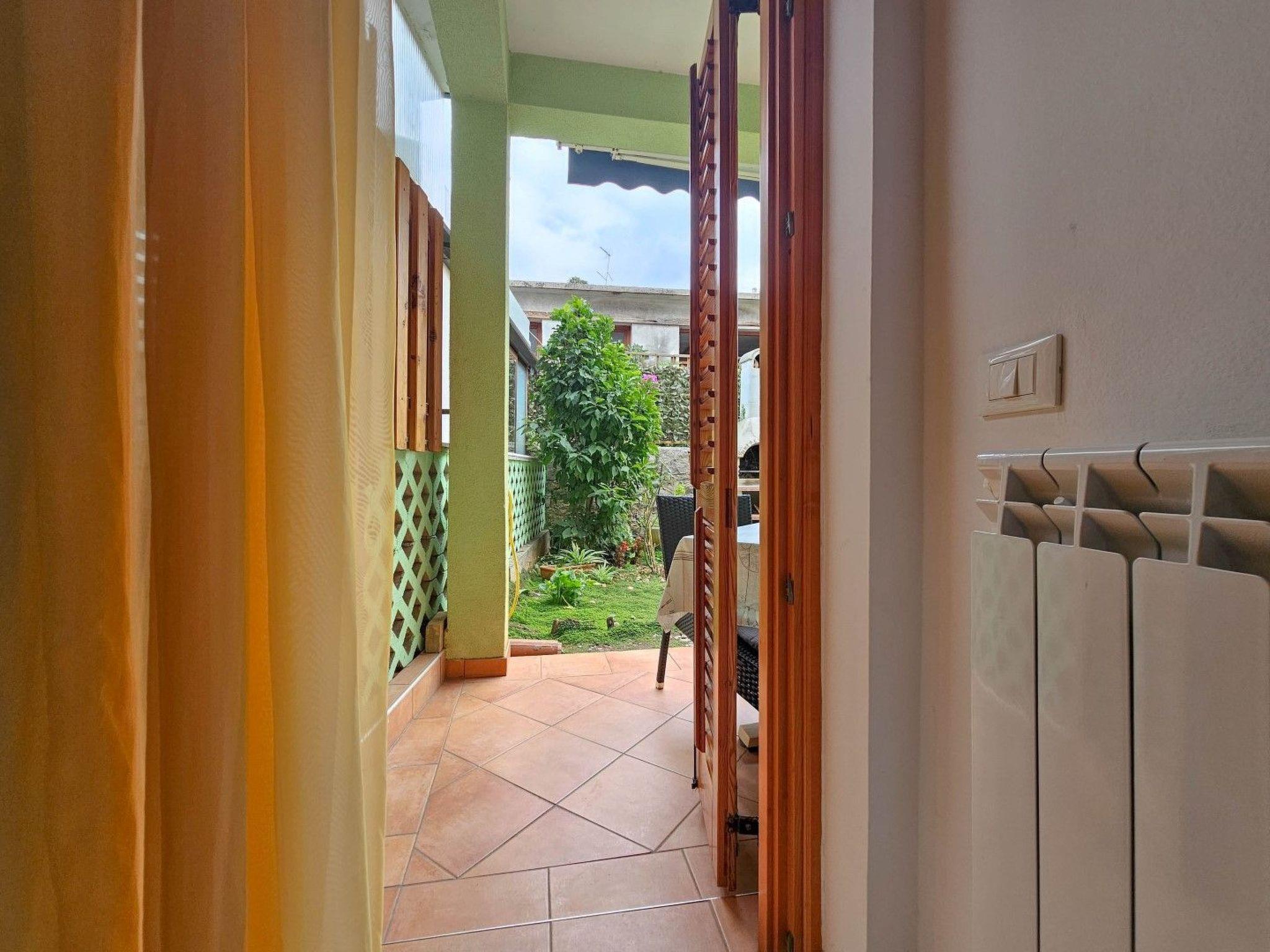 Stepping outside, the apartment opens up to a delightful terrace furnished with outdoor seating, where you can relax and soak up the serene atmosphere. This space, coupled with a garden for your exclusive use, offers an idyllic setting to unwind and savor the gentle sea breeze. The presence of the owner on the property ensures that any assistance you might need is readily available, adding a personal touch to your stay.