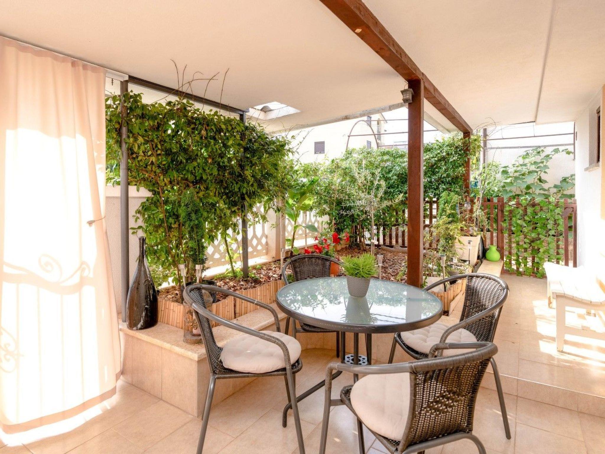 Upon entering, you will notice a terrace that is perfect for relaxing and enjoying the outdoors.