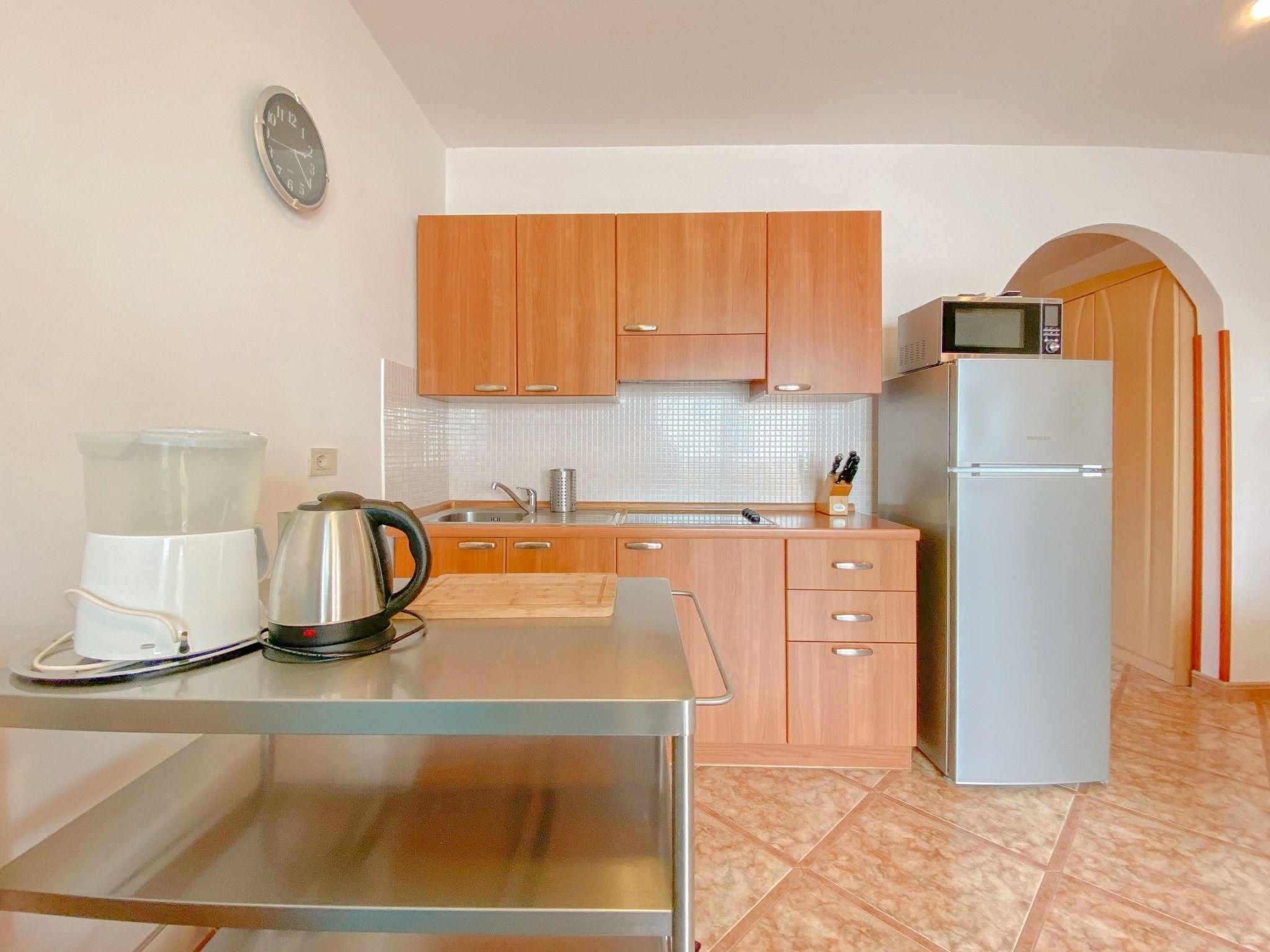 Inside, the apartment extends over a comfortable living space of 40m2 on the first floor, boasting a cozy bedroom with a double bed to ensure a restful night's sleep. The living area features a welcoming sofa bed, suitable for 1-2 persons, creating a versatile space for relaxation and entertainment. The integrated kitchen is fully equipped with an electric stove, refrigerator, microwave, and a coffee maker, catering to all your culinary needs during your stay. Additionally, the apartment includes a bathroom outfitted with a shower and WC, ensuring your comfort and convenience.