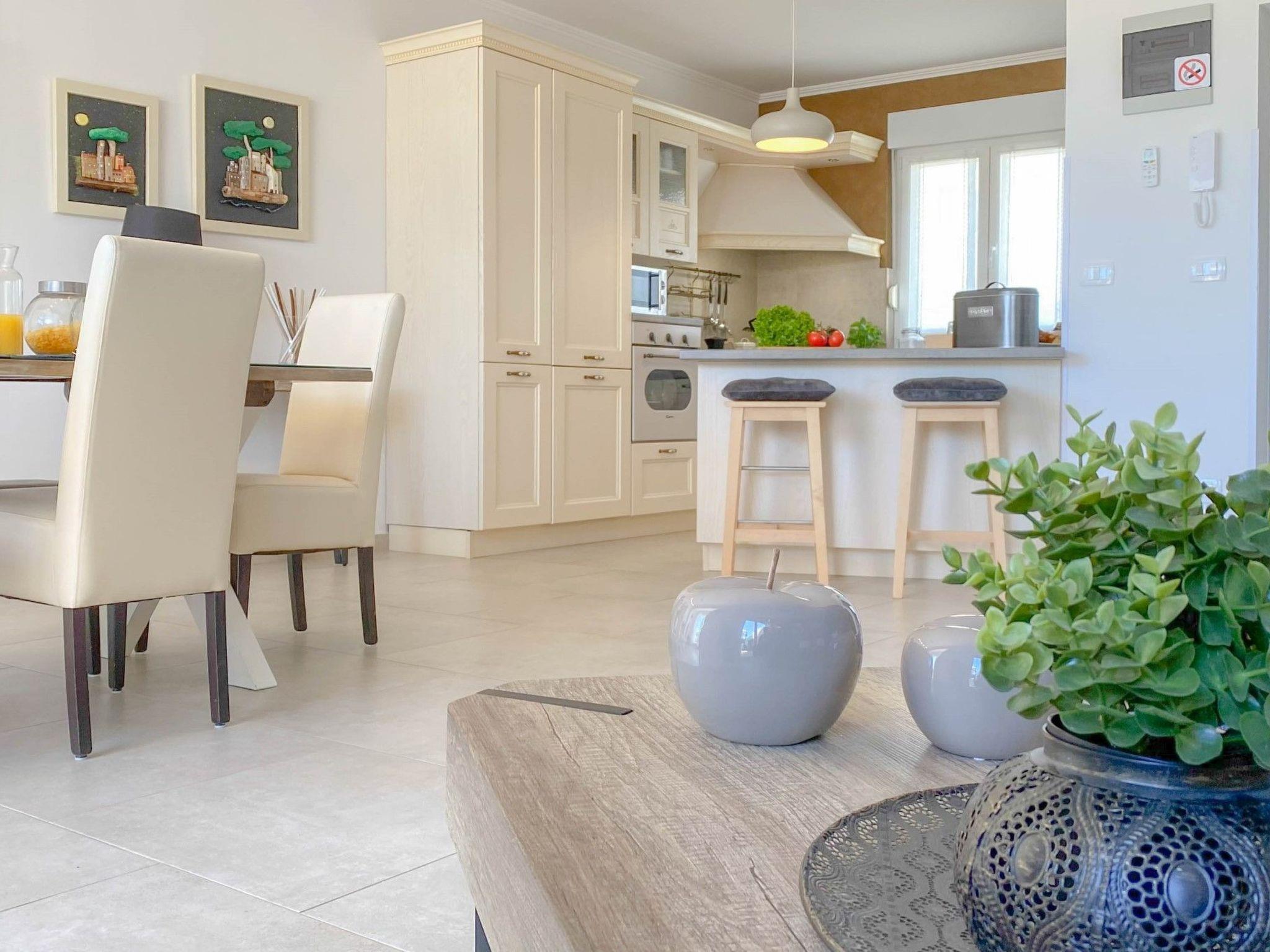 Inside, the house spans across two floors, featuring three cozy bedrooms, each fitted with a comfortable double bed, ensuring a restful night's sleep for all guests. The living spaces are well-appointed, catering to your every need. The residence boasts a well-equipped kitchen, allowing guests to prepare their favorite meals with ease, complete with an electric stove, oven, dishwasher, microwave, refrigerator, and a coffee machine. The convenience of having two bathrooms equipped with showers ensures a smooth and hassle-free stay. Additionally, the inclusion of air conditioning in parts of the house, along with a washing machine, adds further comfort to your holiday experience.